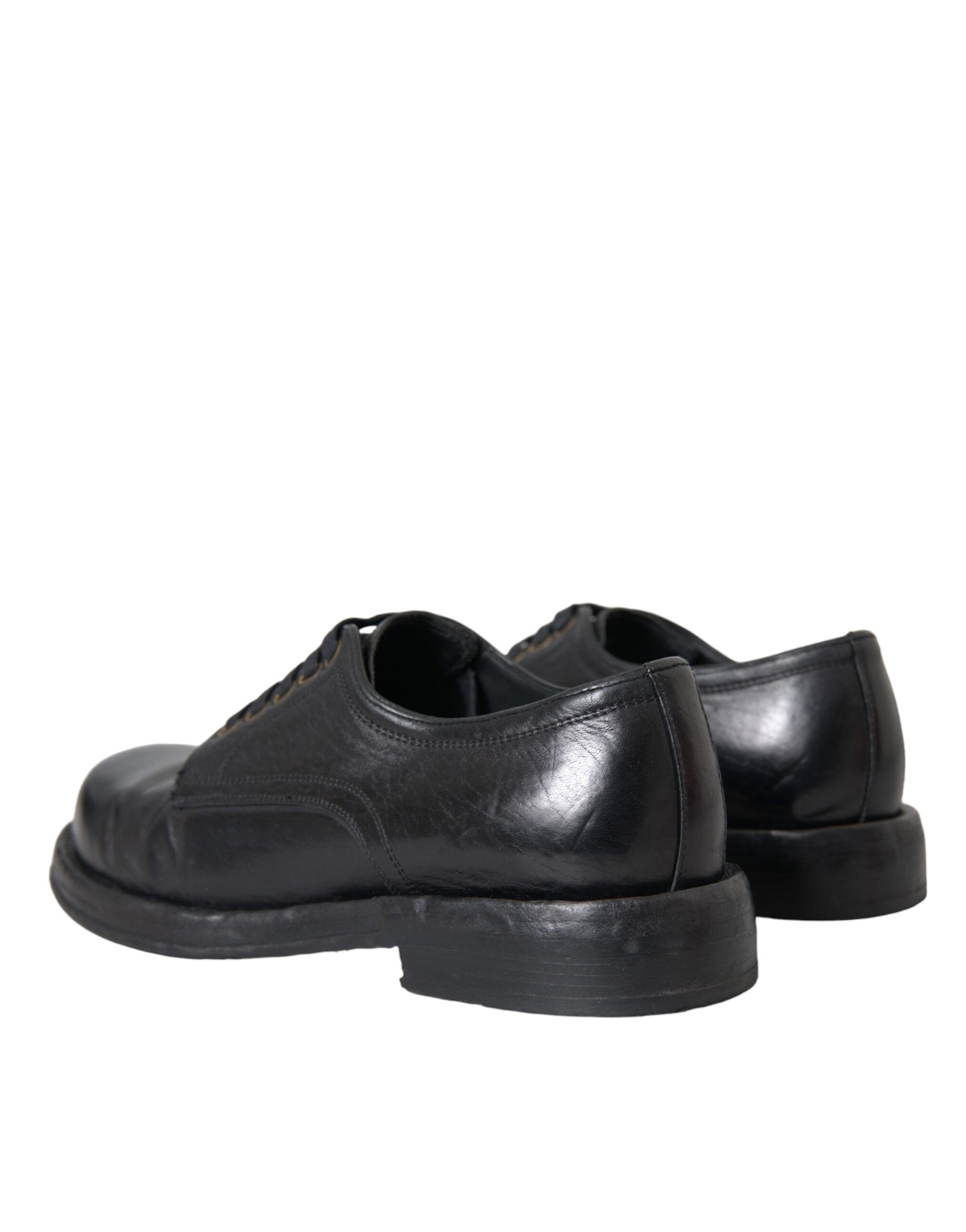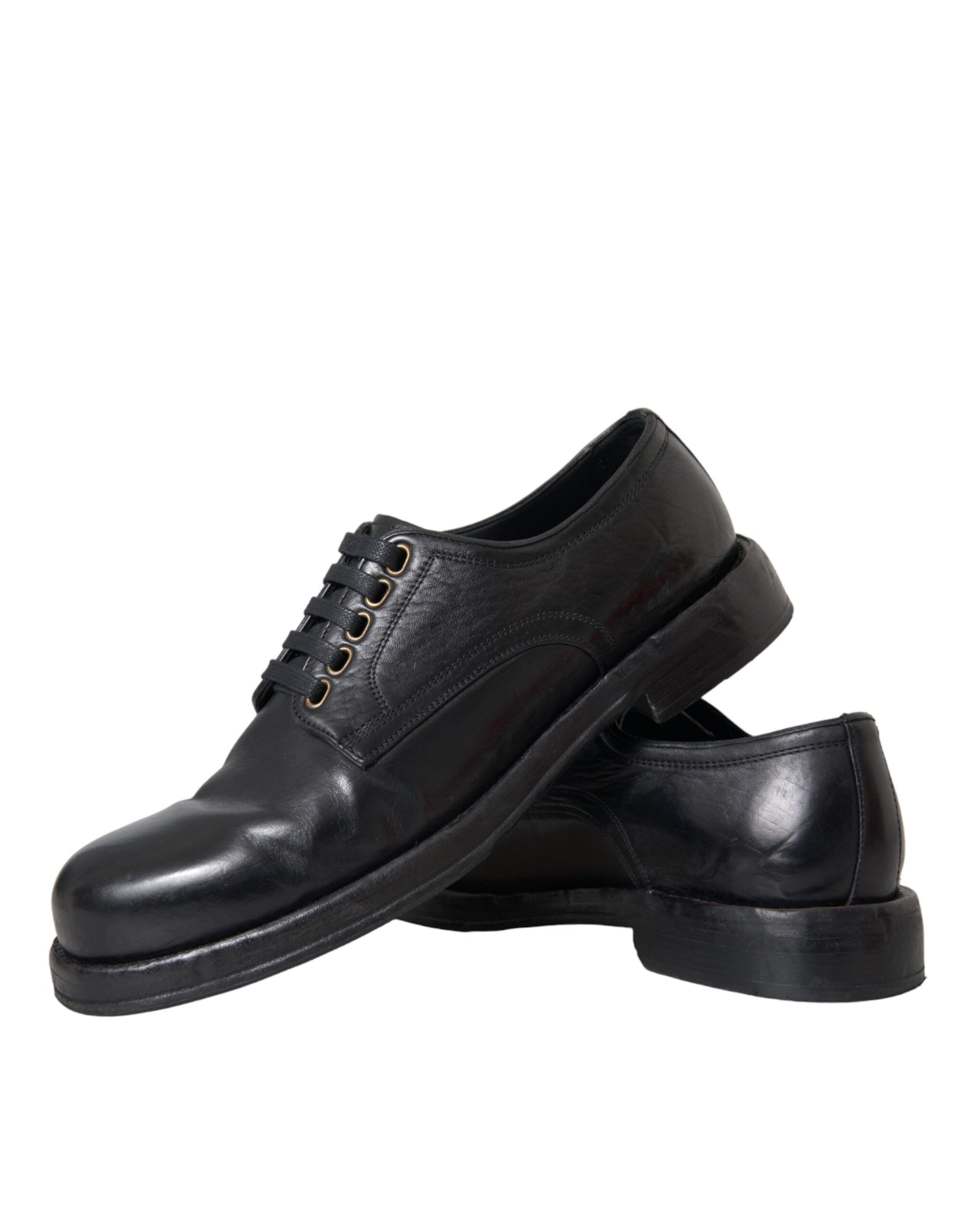 Dolce & Gabbana Black Horse Leather Derby Men Dress Shoes
