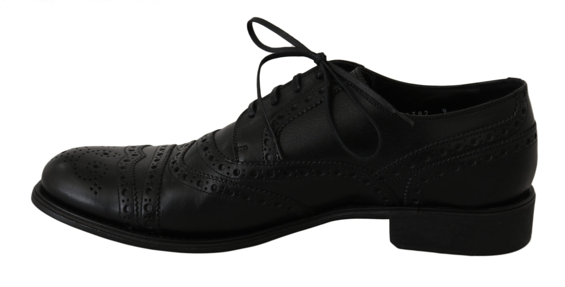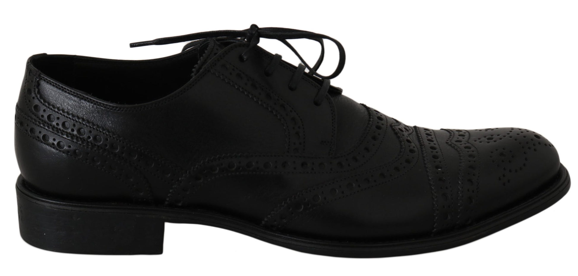 Dolce & Gabbana Elegant Black Leather Derby Wingtip Dress Shoes