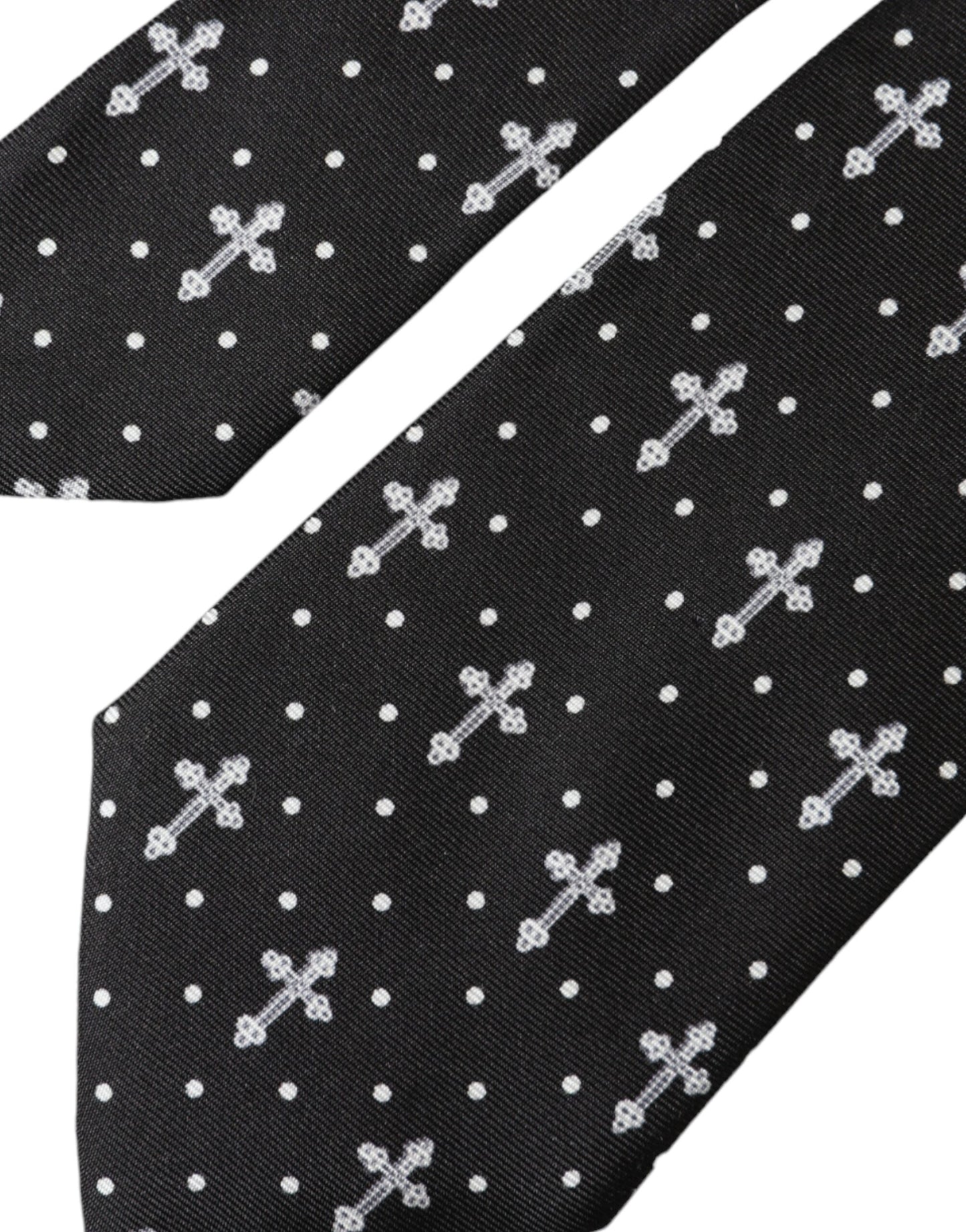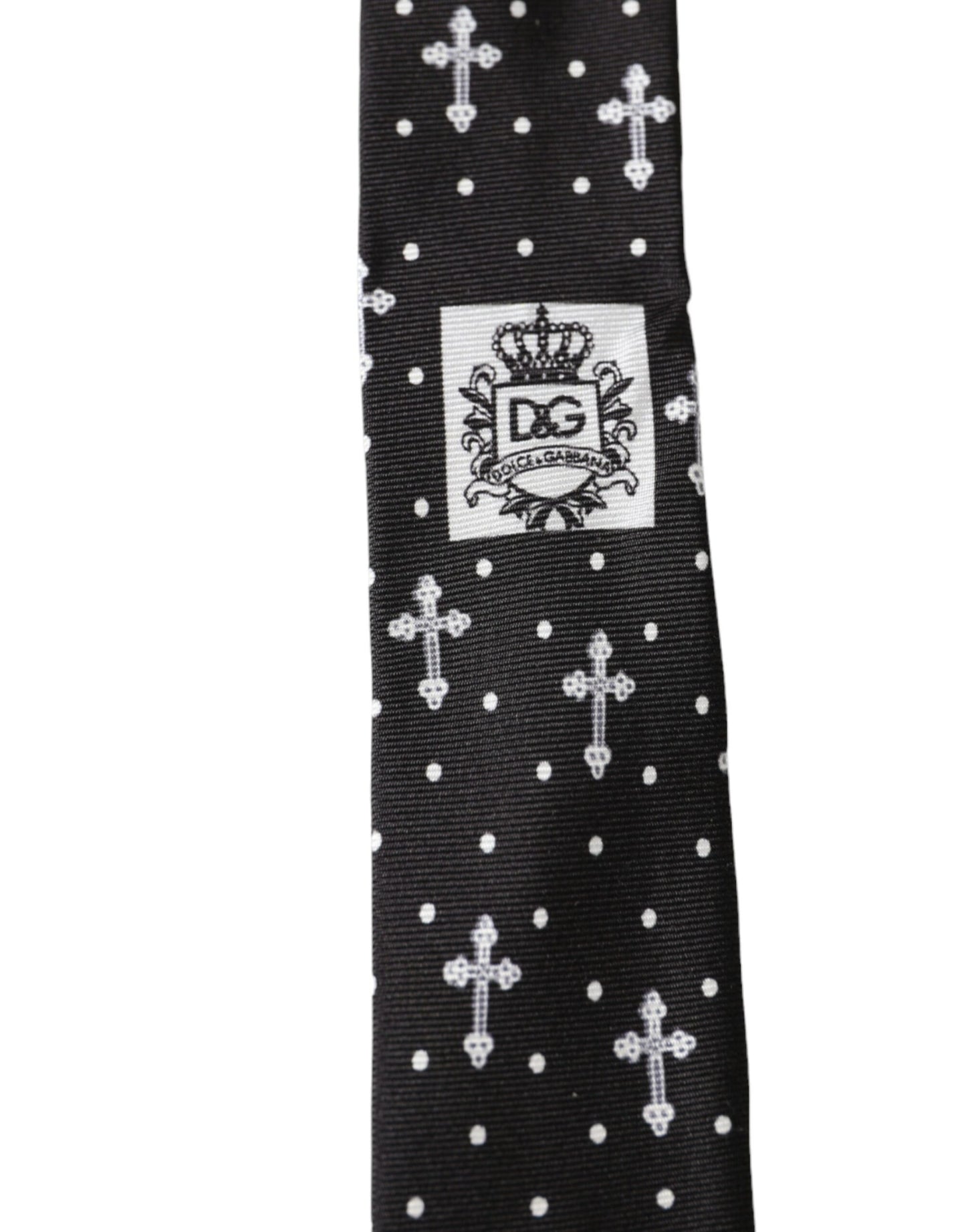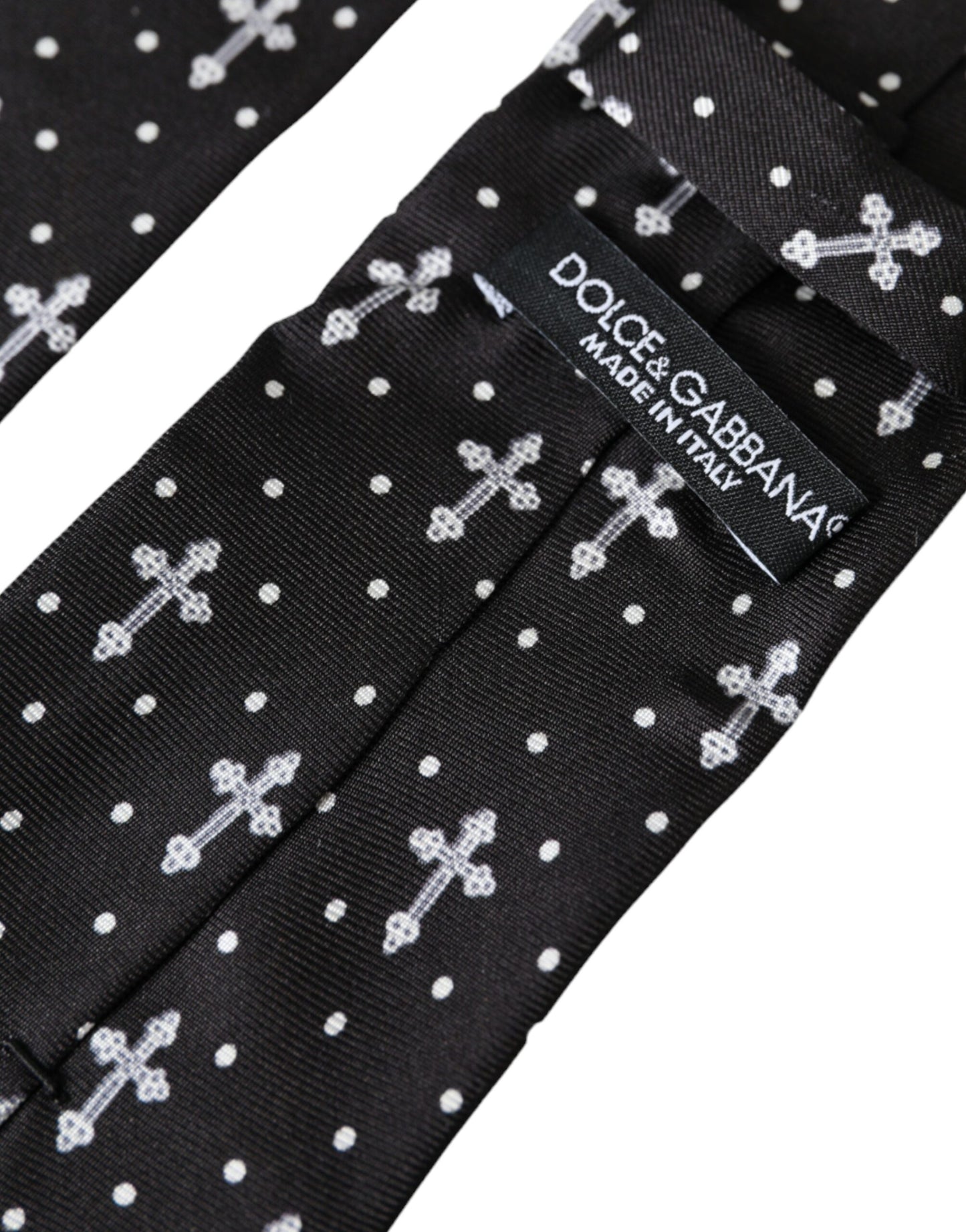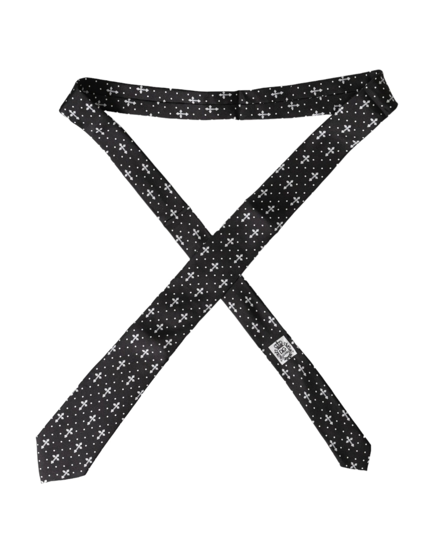 Dolce & Gabbana Black White Cross Silk Adjustable Tie