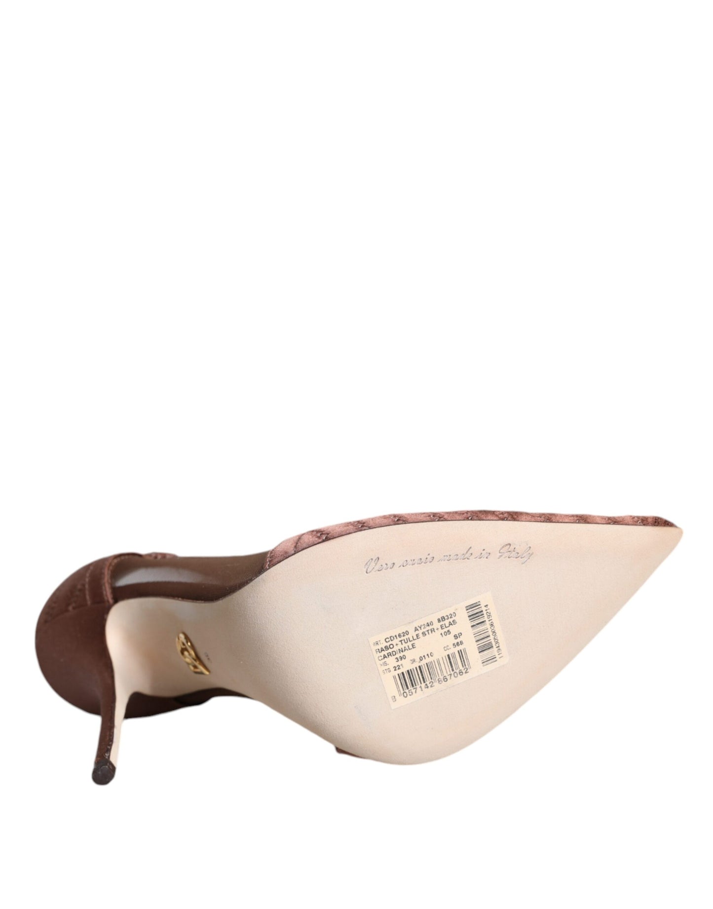 Dolce & Gabbana Brown Mesh Viscose Ankle Strap Pumps Shoes
