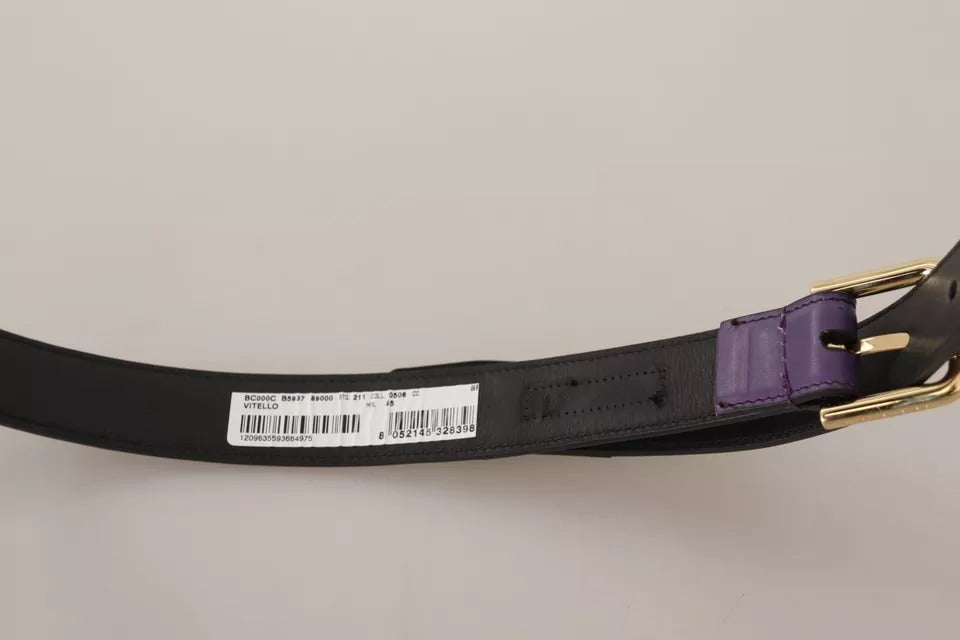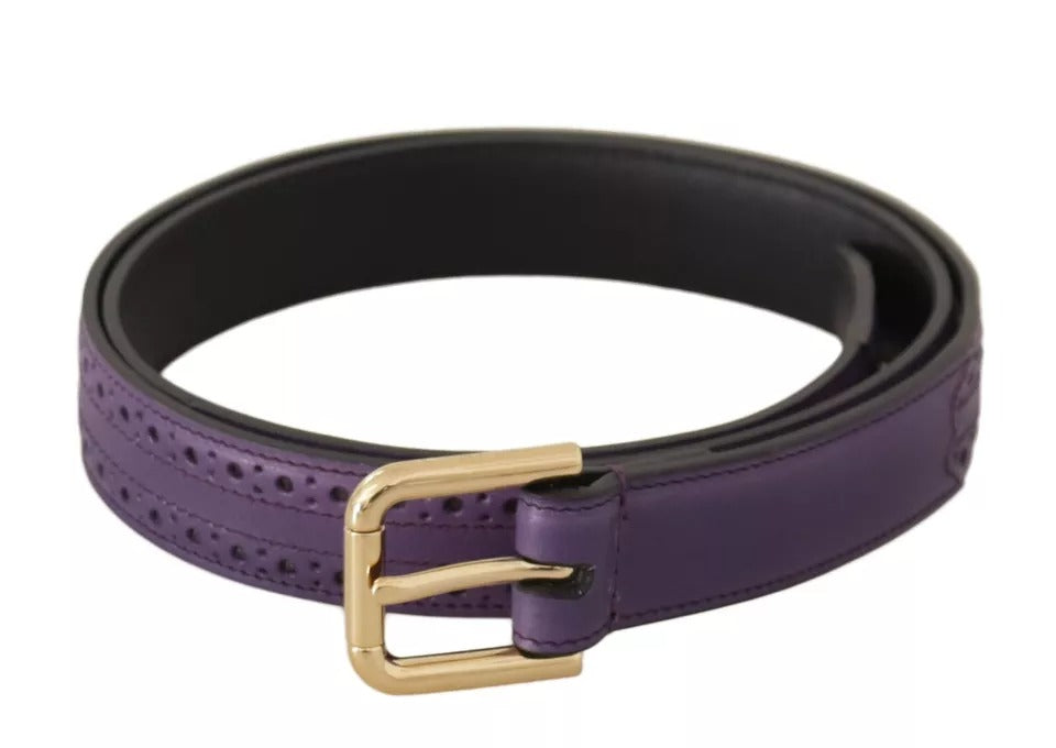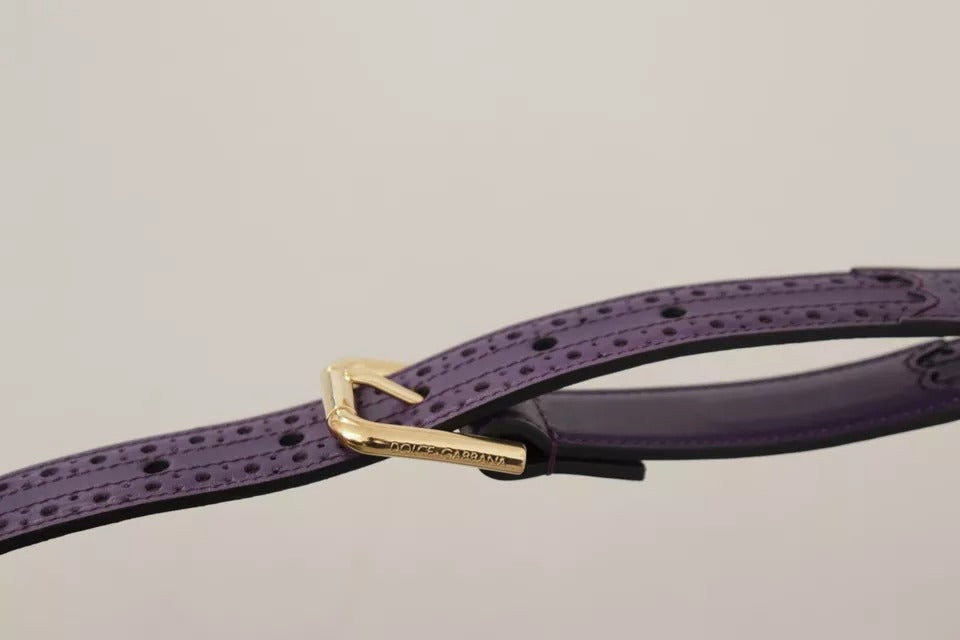 Dolce & Gabbana Purple Leather Gold Logo Engraved Metal Buckle Belt