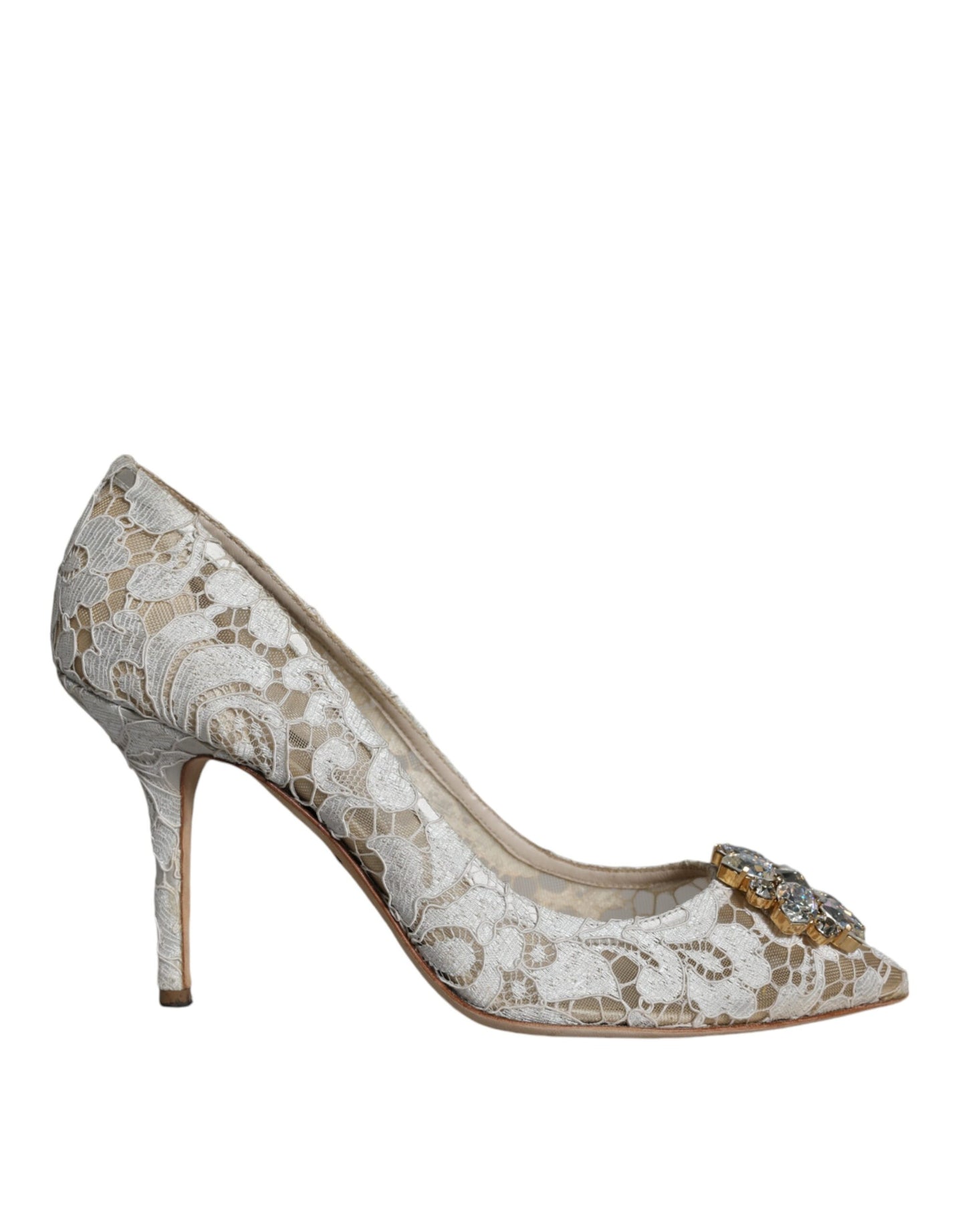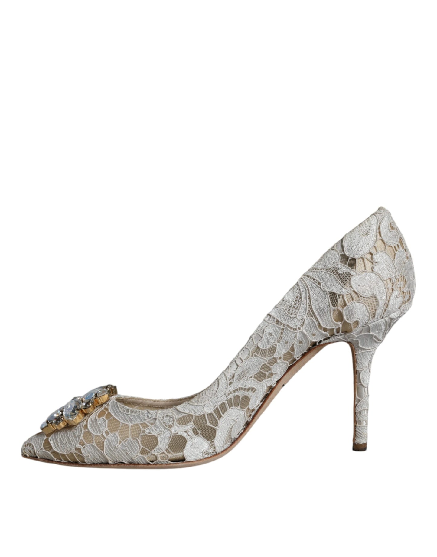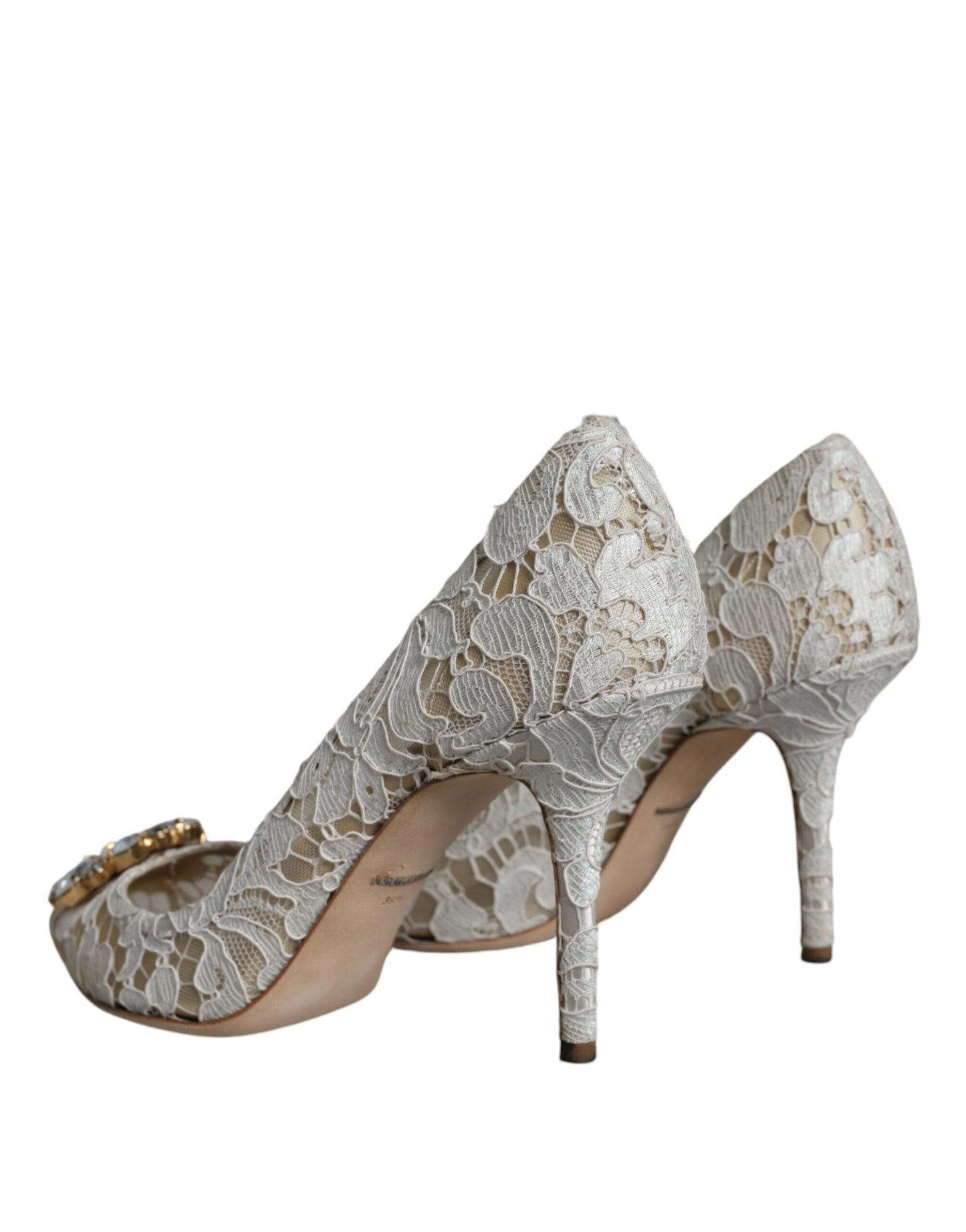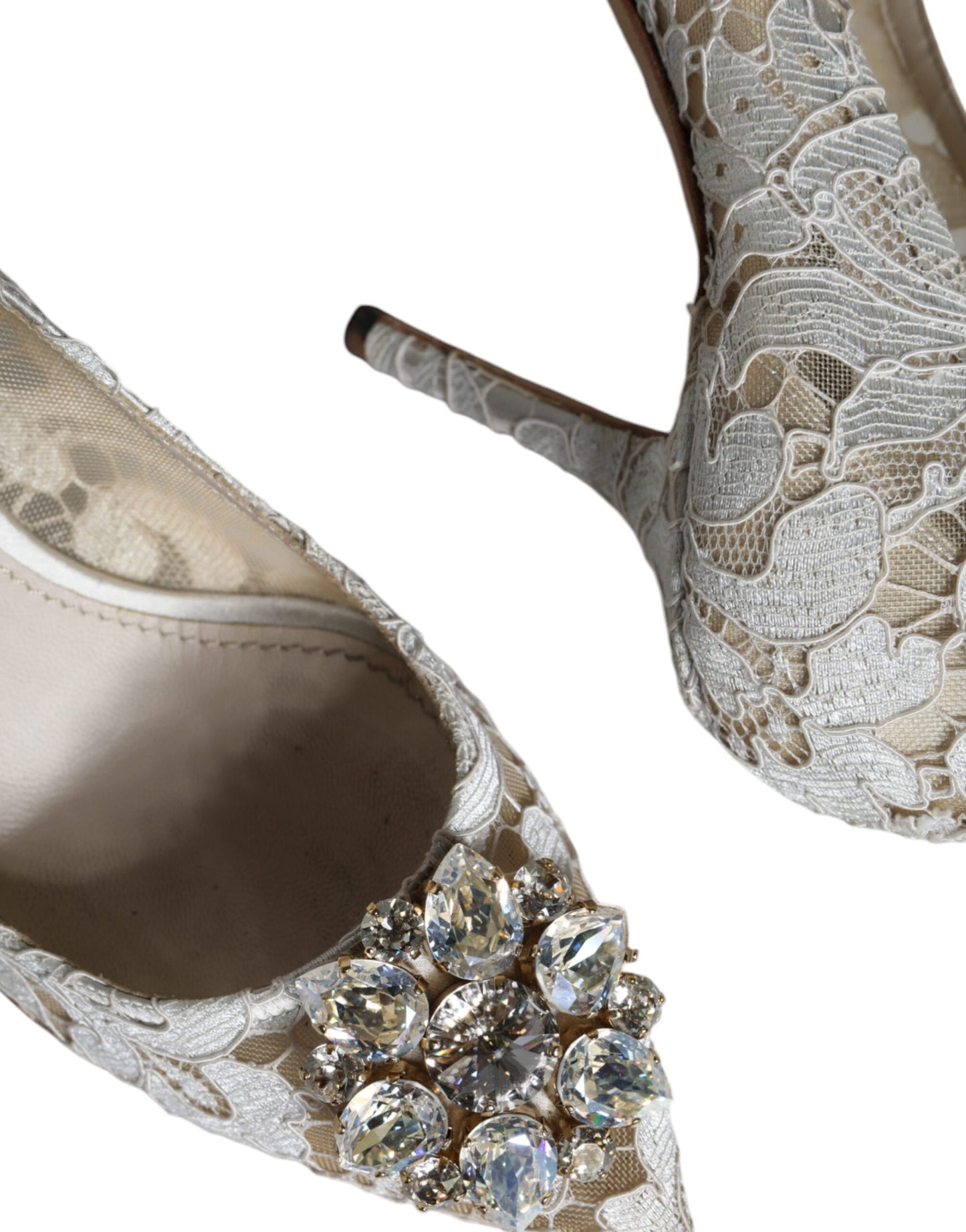 Dolce & Gabbana White Taormina Lace Crystal Heel Pumps Shoes