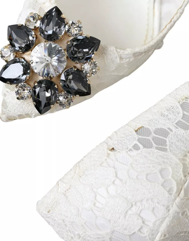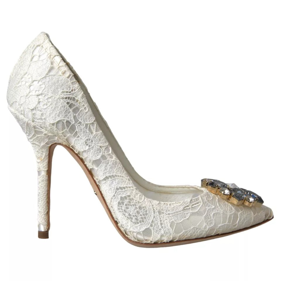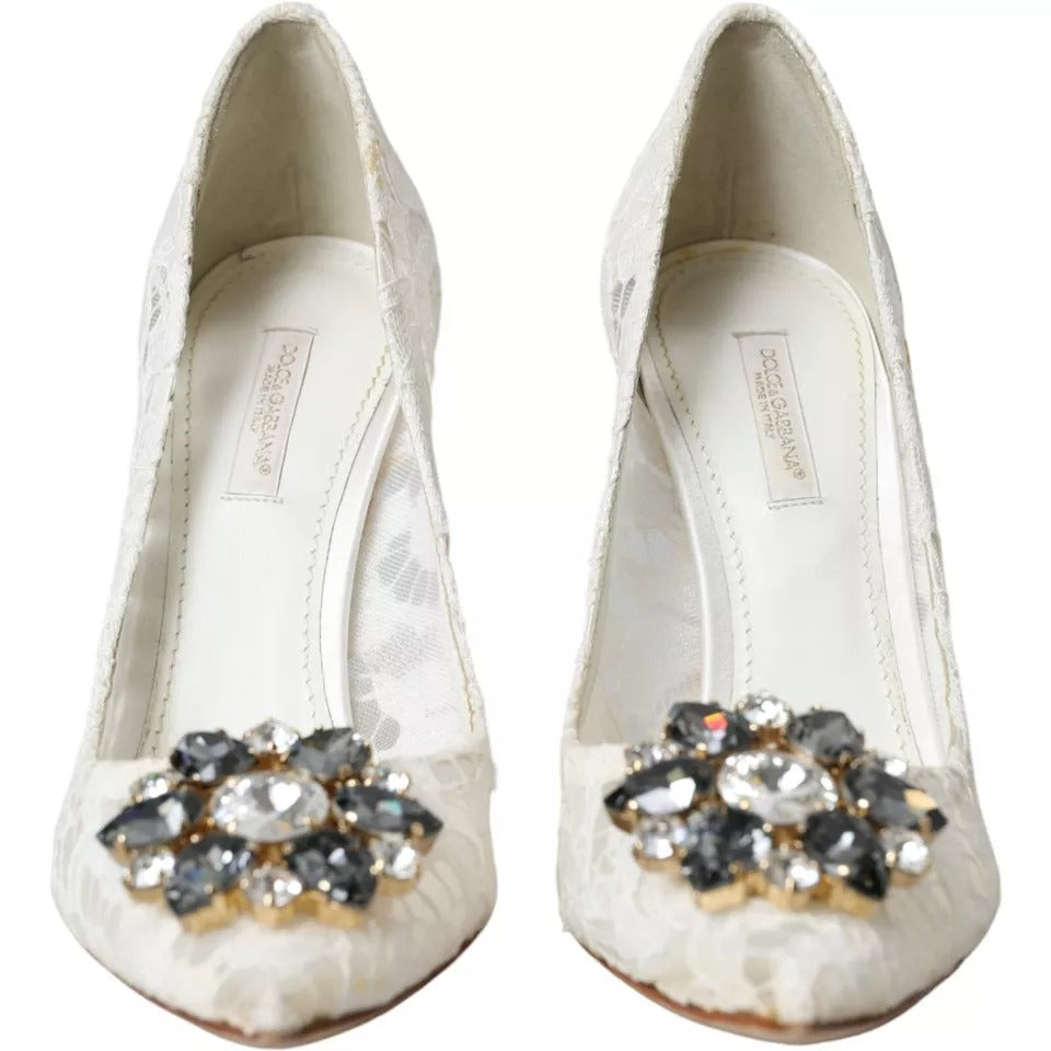 Dolce & Gabbana White Taormina Lace Crystal Heel Pumps Shoes