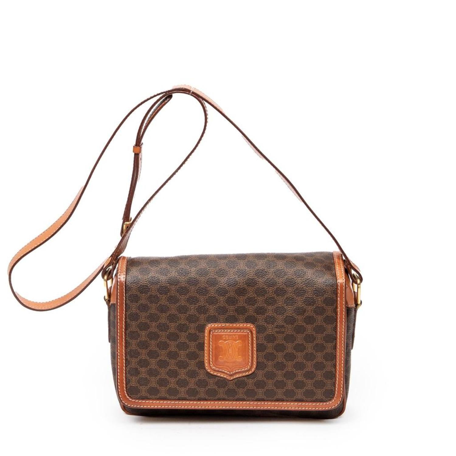 Celine Shoulder Bag in Brown Macadam Coated Canvas and Gold hardware. Dimensions - "23,5*17*6,5cm". Serial number - M12. Inclusions - None.