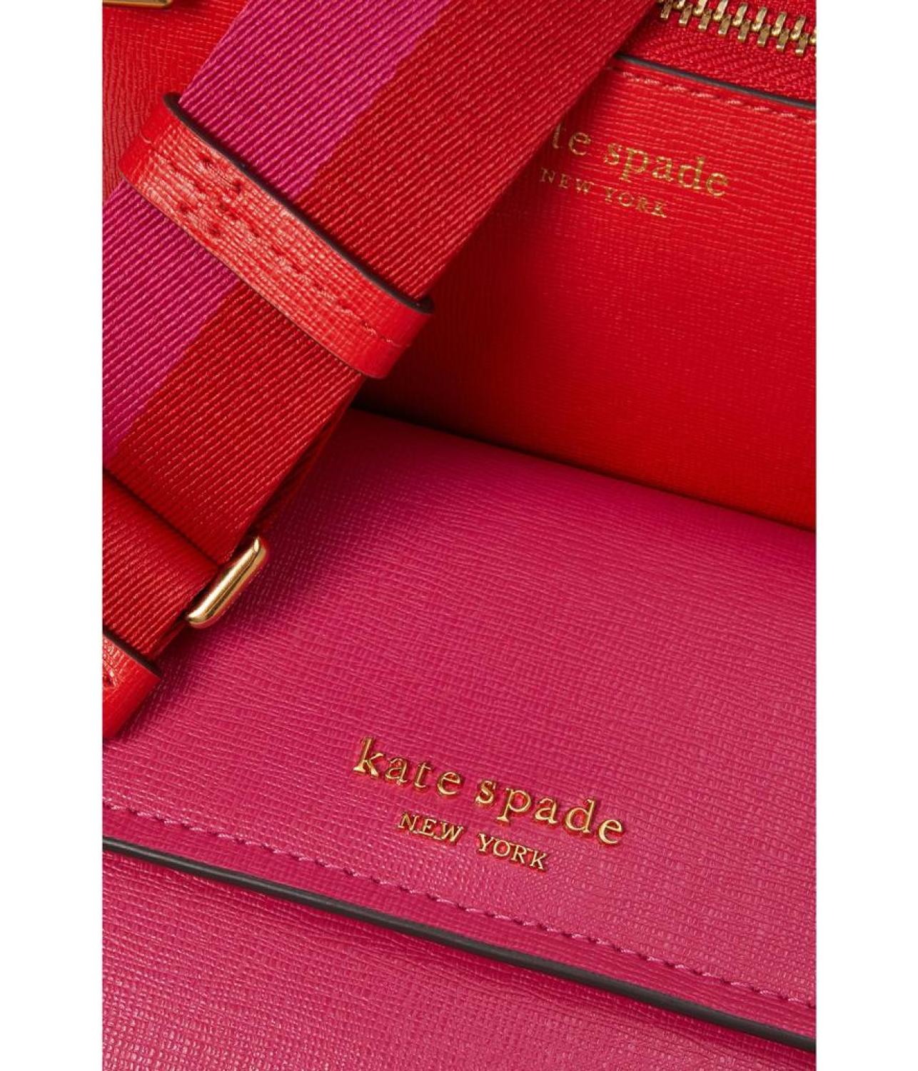 Walk in style with an update on your accessory fashion by getting Kate Spade New York® Double Up Color-Blocked Saffiano Leather Double Up Crossbody bag. The bag is made of textured leather with top zip closure in the main compartment. A removable, adjustable crossbody strap allows you to customize length. Foil embossed logo adds to the glamor of the brand.