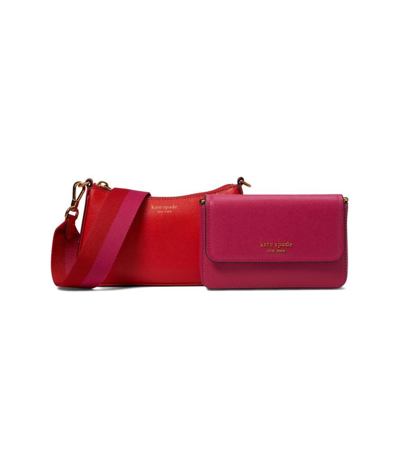 • Walk in style with an update on your accessory fashion by getting Kate Spade New York® Double Up Color-Blocked Saffiano Leather Double Up Crossbody bag. The bag is made of textured leather with top zip closure in the main compartment. A removable, adjustable crossbody strap allows you to customize length. Foil embossed logo adds to the glamor of the brand.