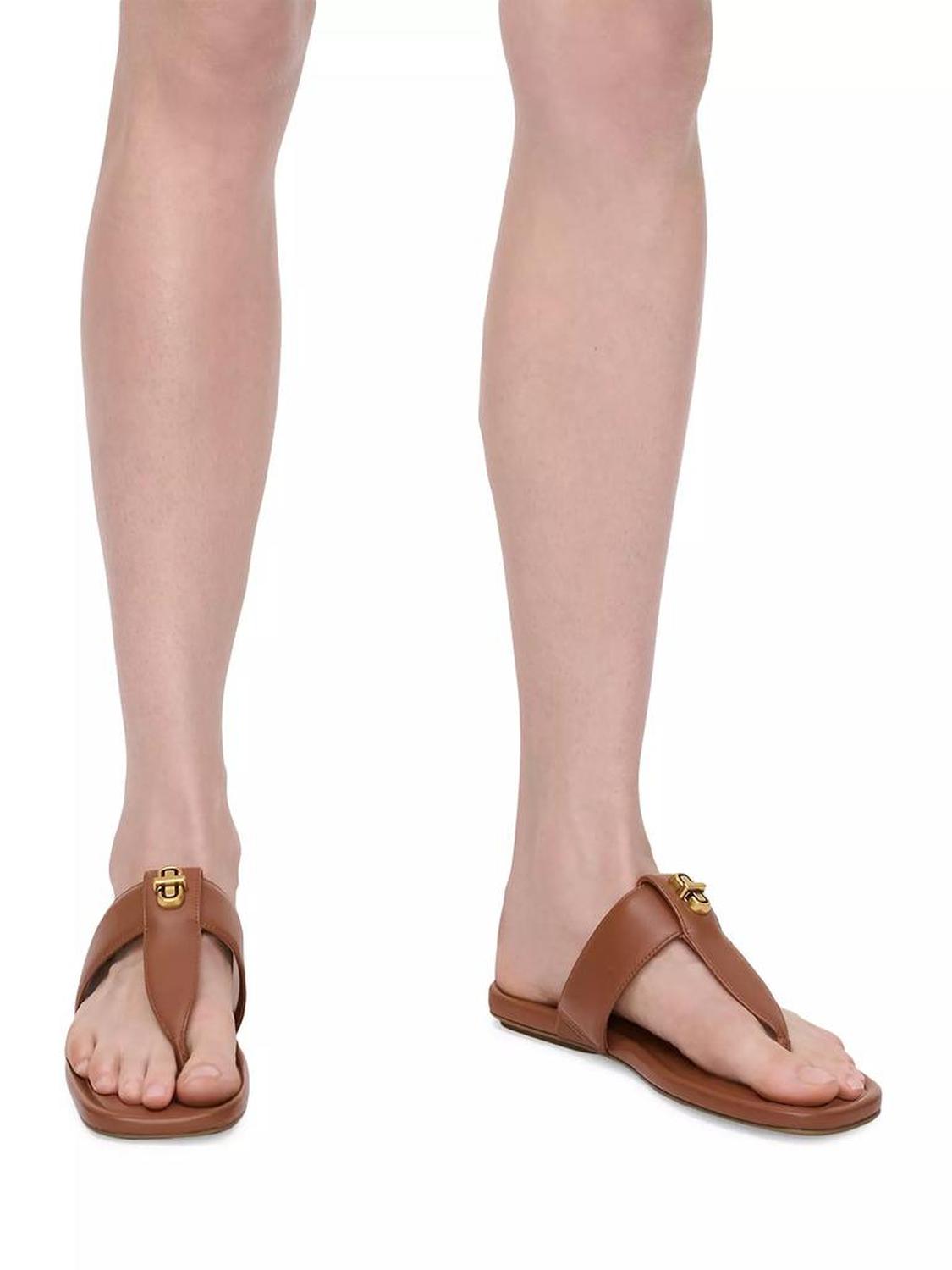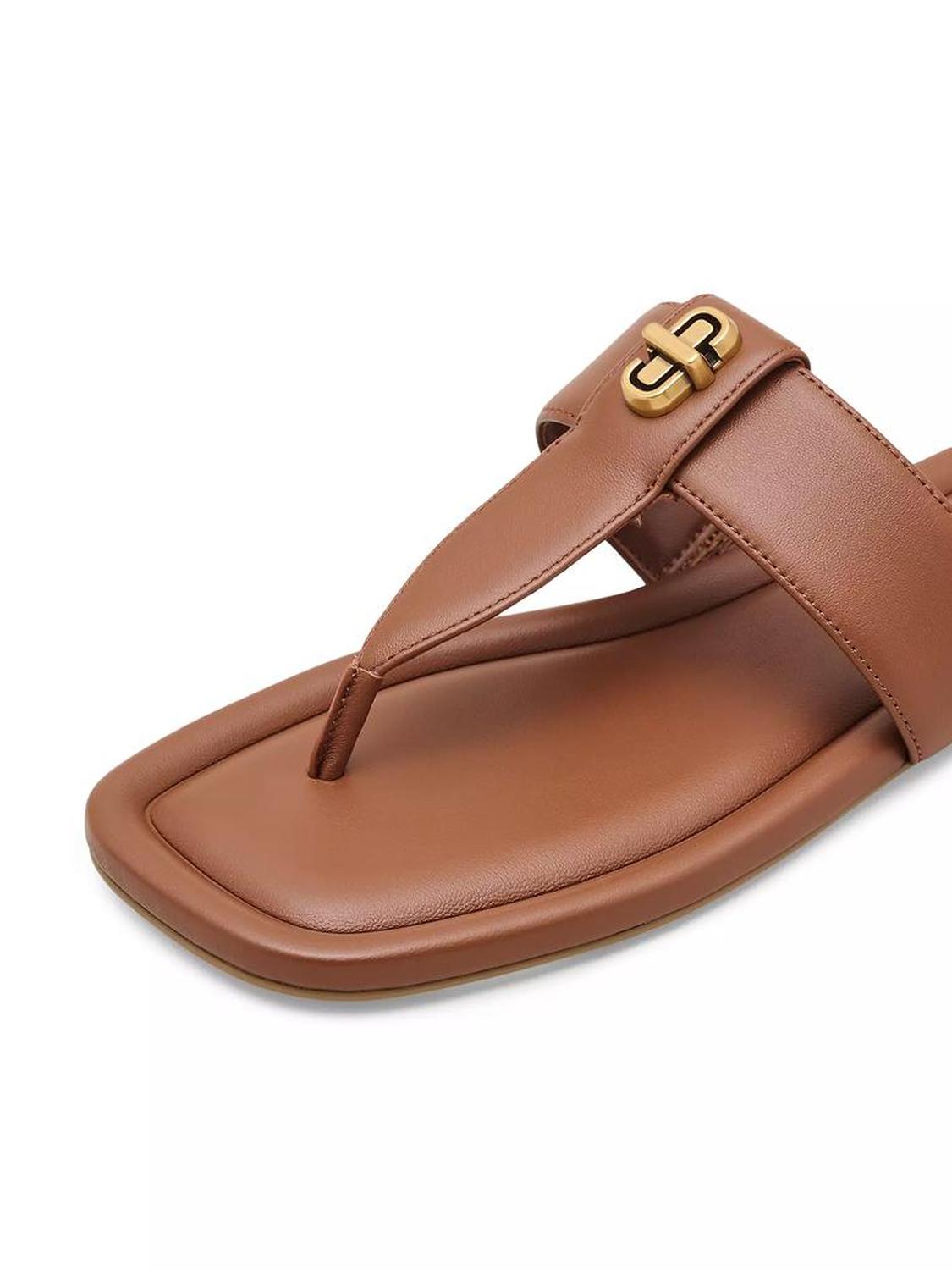 • Crafted of leather, Marc Jacobs' Dual T sandals showcase a T-shaped toe strap and slight heel at the sole.