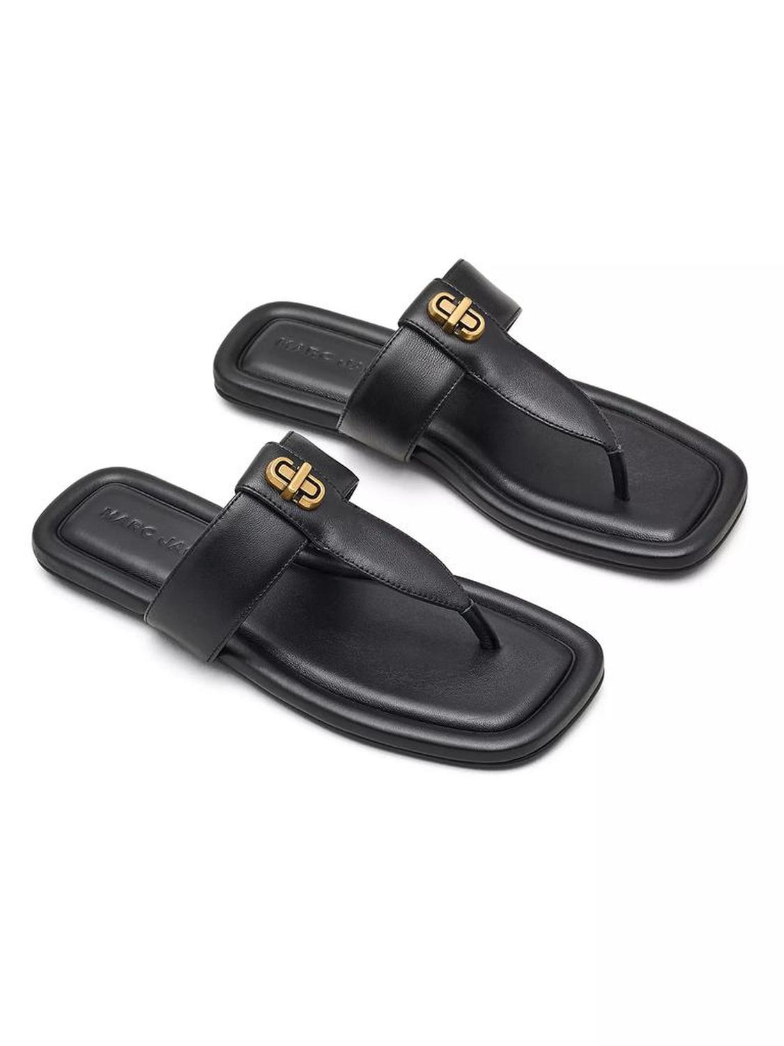Crafted of leather, Marc Jacobs' Dual T sandals showcase a T-shaped toe strap and slight heel at the sole.Open toeSlips onLeather upperLeather liningLeather soleImported