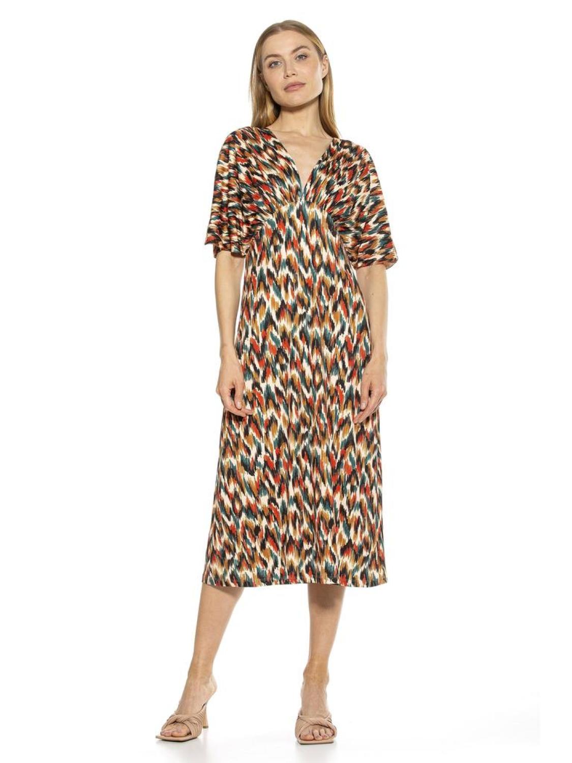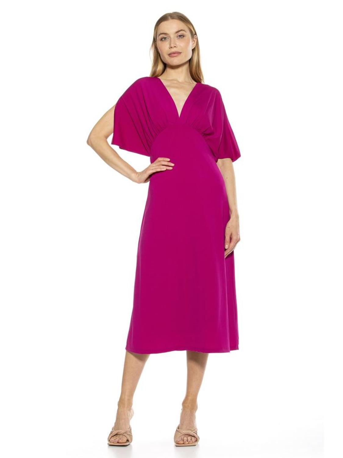 PRODUCT FEATURES V-neck Open slit flutter sleeves Open keyhole back 95% Polyester, 5% Spandex Lined - ?�100% Polyester Machine wash cold, line dry Imported Style D3840