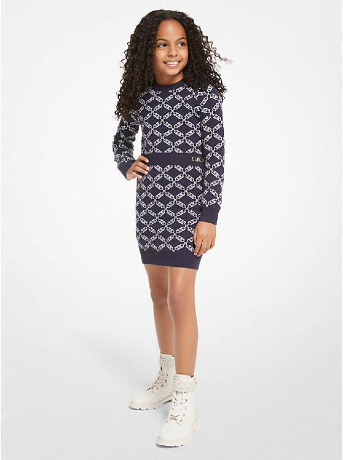 • The perfect sweater dress for your little one, with our signature twist. Rendered in a breathable knit for ease of movement, it’s covered in our Empire Logo print and features a dainty embellished plaque for a hint of shine.