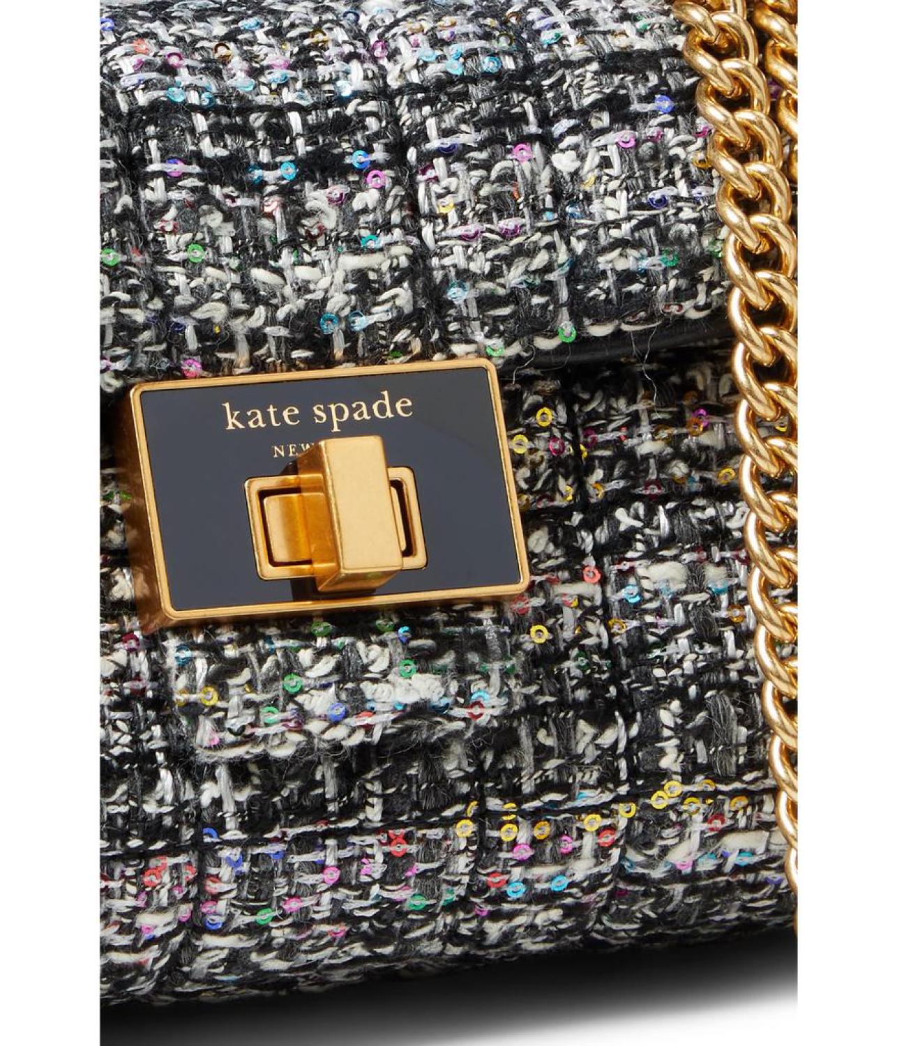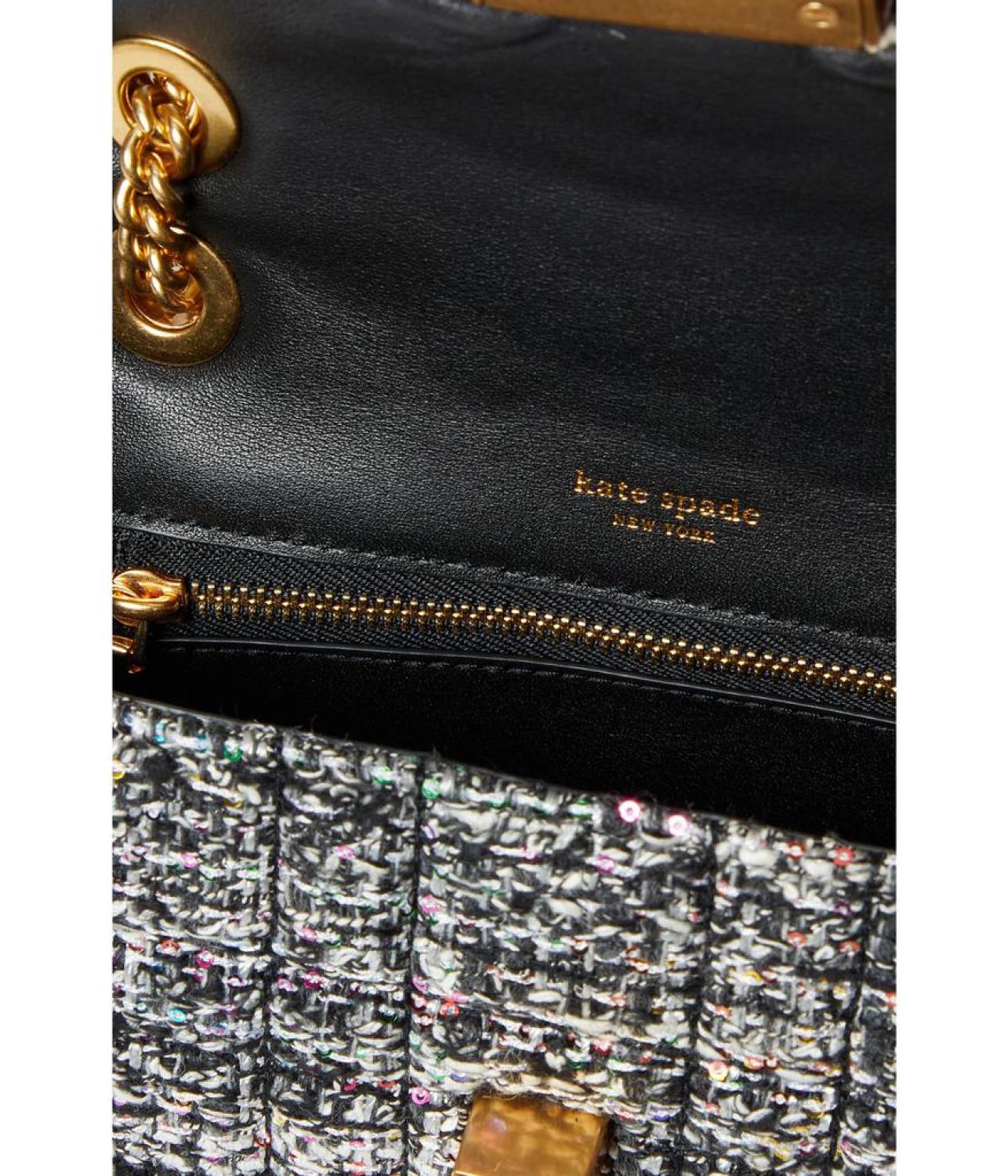 Make your fun day out look more timeless and chic by carrying the  Kate Spade New York® Evelyn Sequin Tweed Small Shoulder Crossbody.
