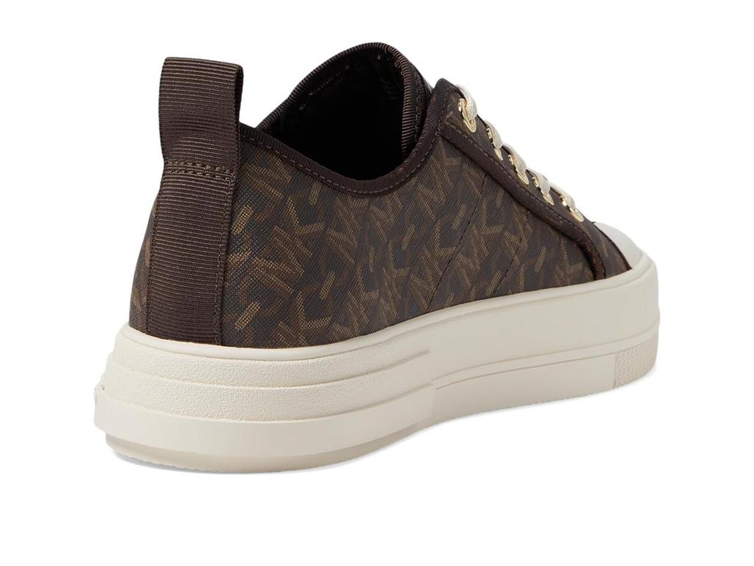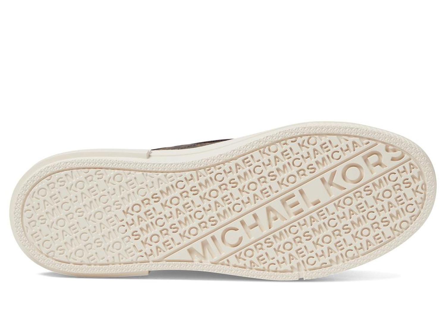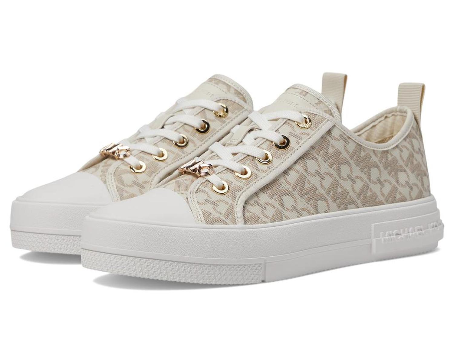 Let your steps talk to the air by wearing MICHAEL Michael Kors® Evy Lace-Up 9925733 footwear. The sneakers have leather upper, textile lining, and removable textile insole. A round toe with protective toe-cap and lace closure offer perfect traction. The shoes have heel pull-tabs. A flat platform gives consistency to the speed.