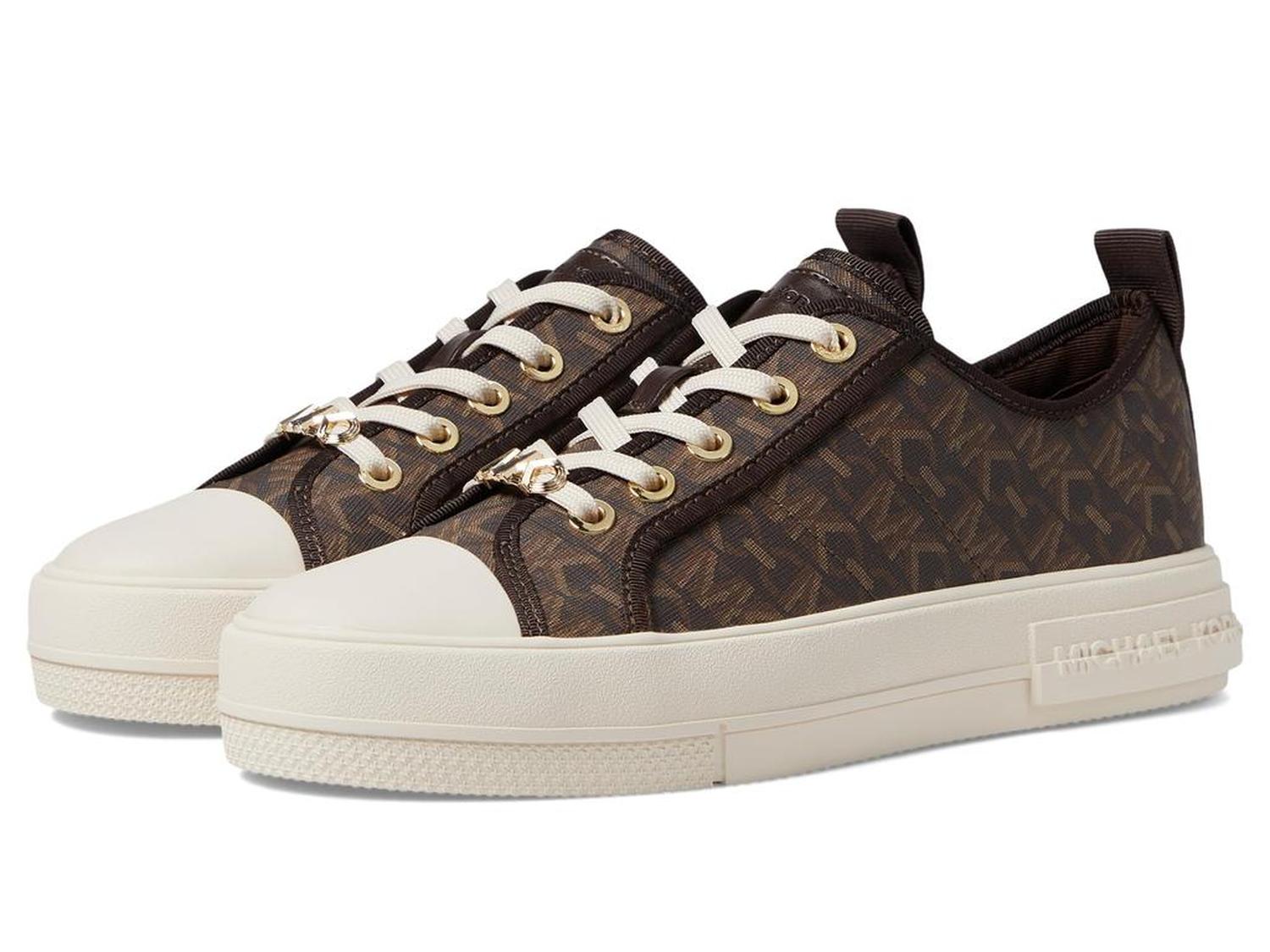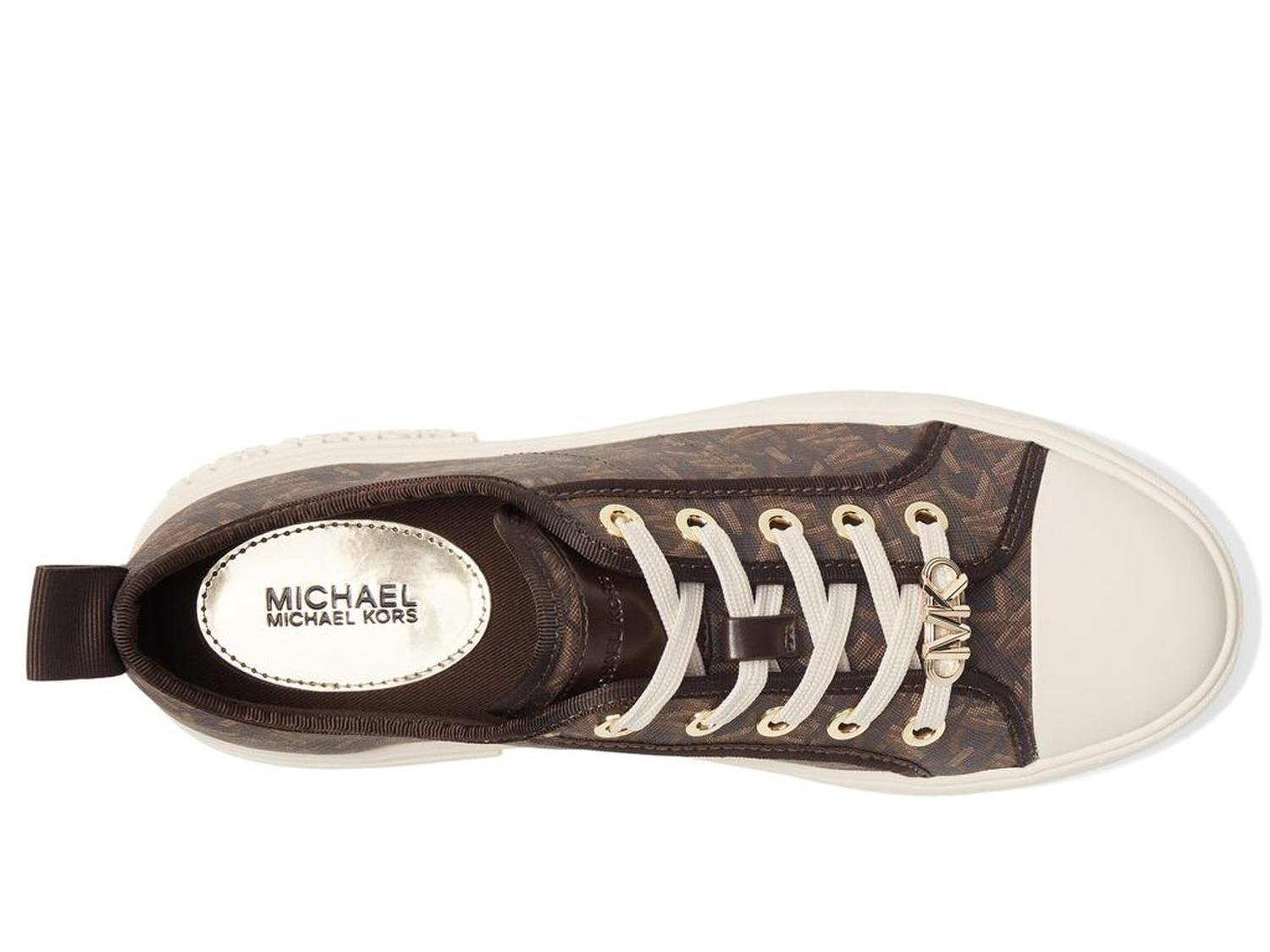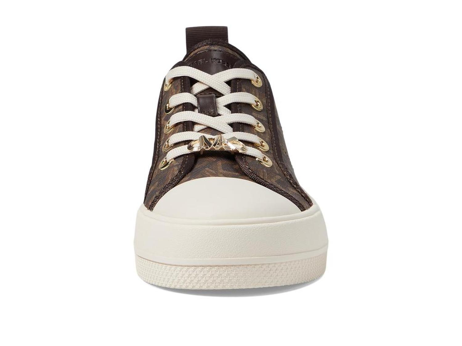 • Let your steps talk to the air by wearing MICHAEL Michael Kors® Evy Lace-Up 9925733 footwear. The sneakers have leather upper, textile lining, and removable textile insole. A round toe with protective toe-cap and lace closure offer perfect traction. The shoes have heel pull-tabs. A flat platform gives consistency to the speed.