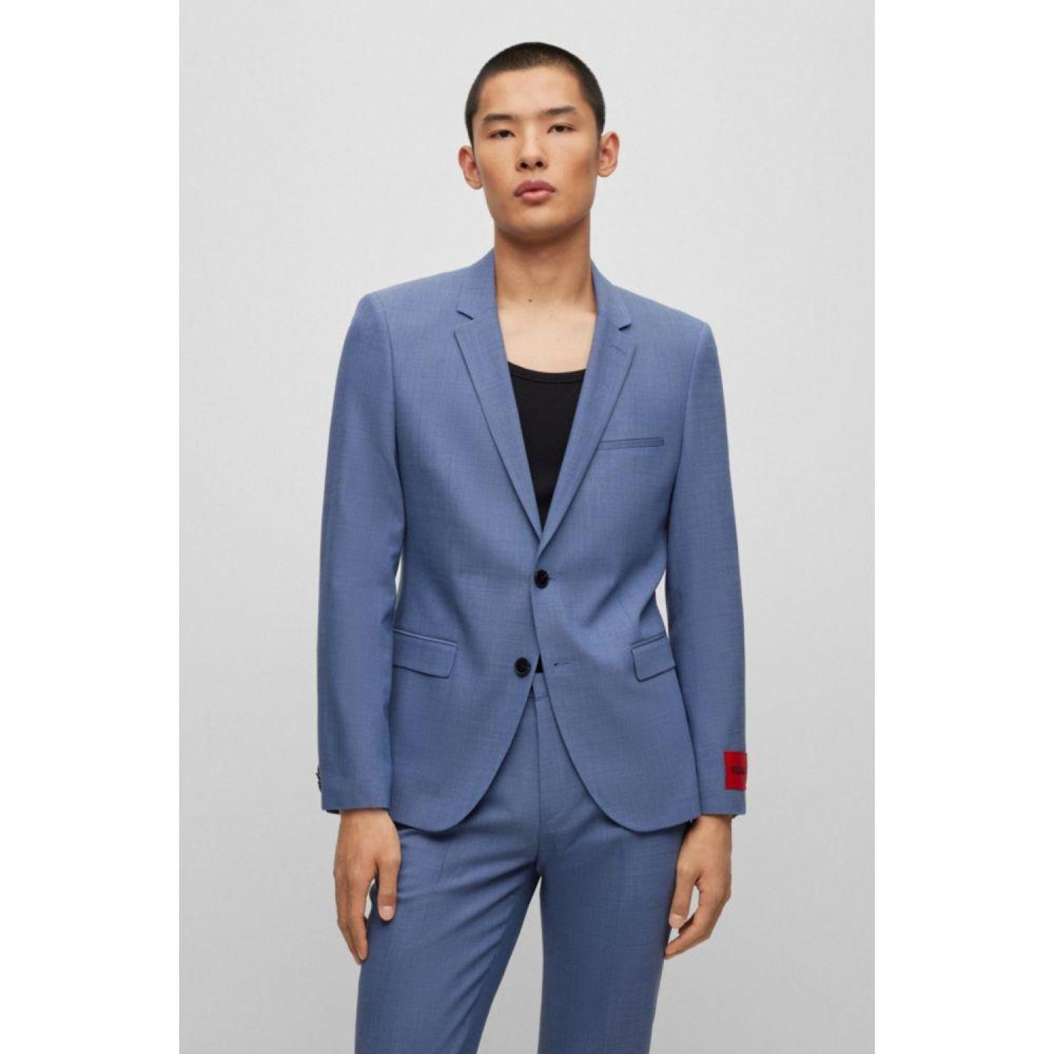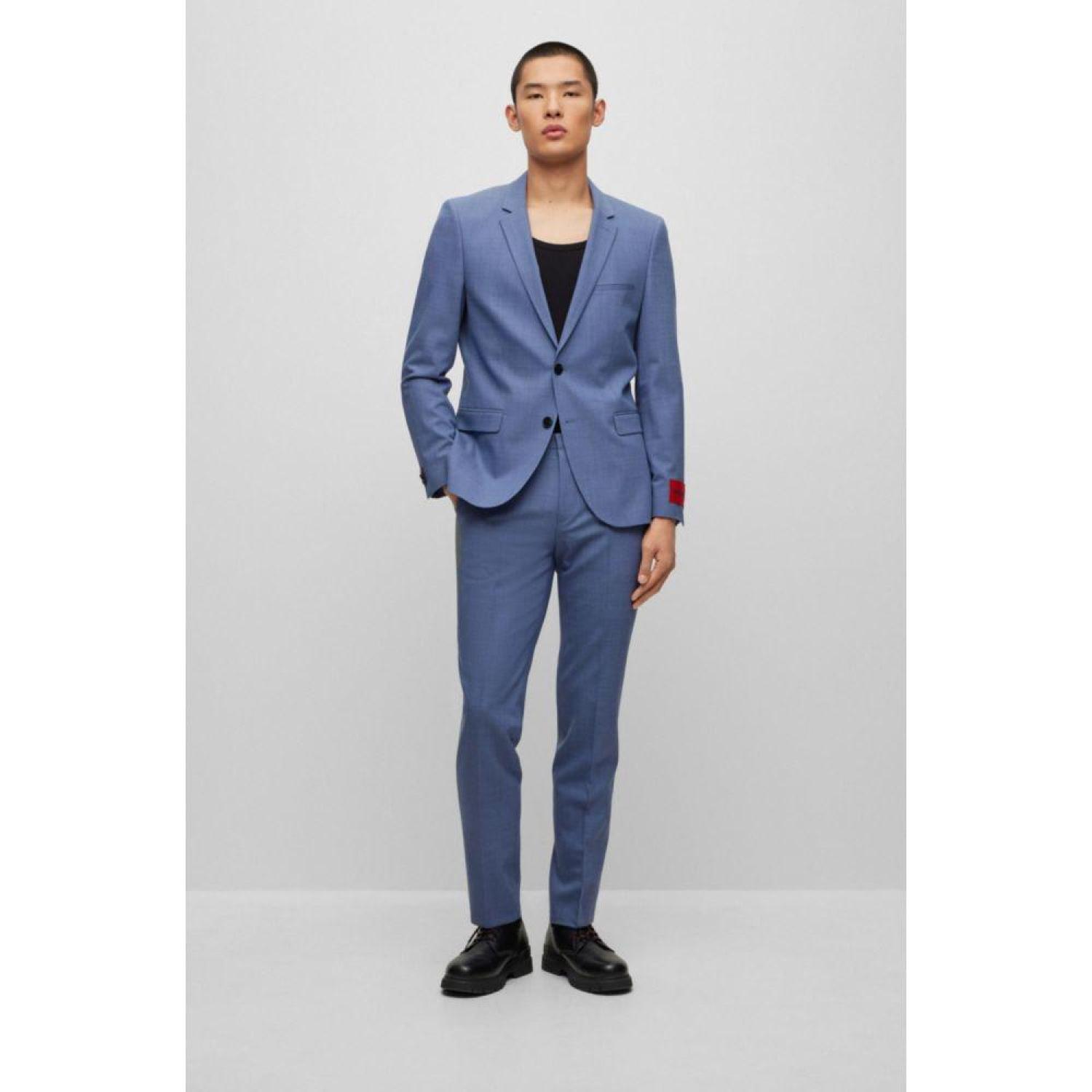 An extra-slim-fitting suit in performance-stretch cloth that's rich in wool and woven with a subtle pattern by HUGO Menswear.