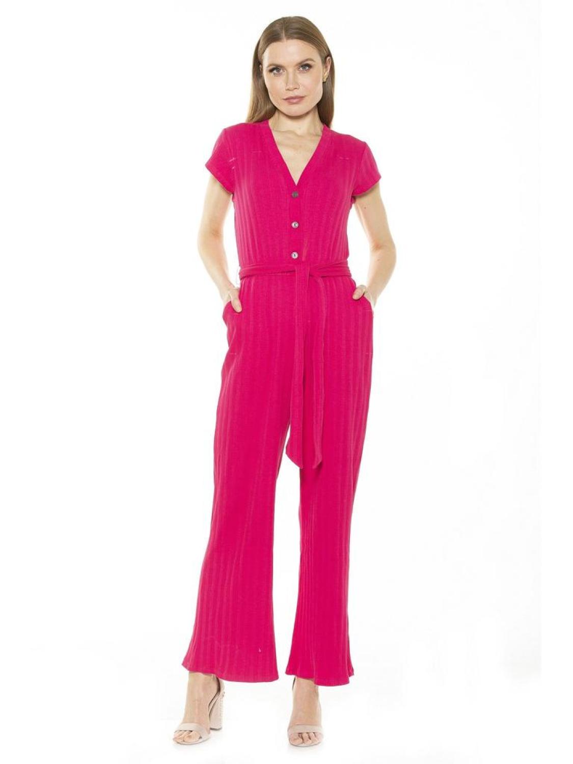 PRODUCT FEATURES V neck Short sleeves Button-down Waist elastic detail with waist tie Approx. 29" inseam 97% Cotton, 3% Spandex Hand wash Imported Style D3819