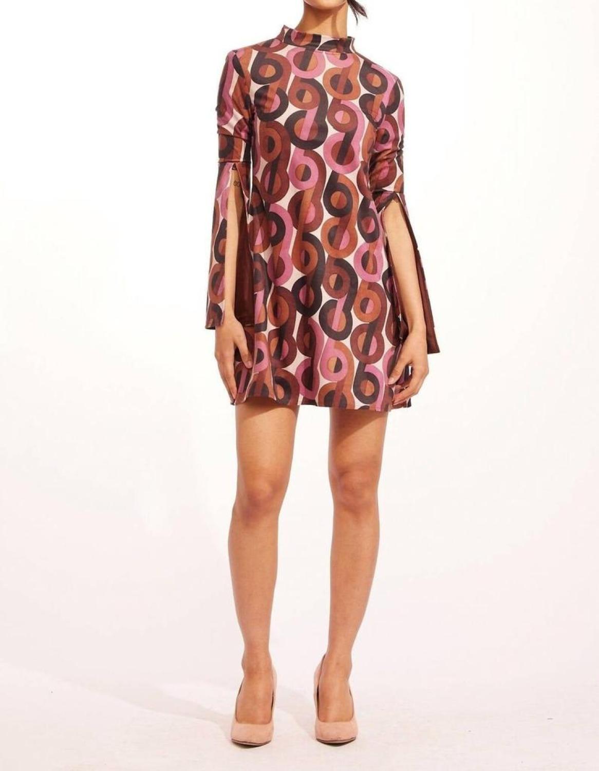 The pefect long sleeve dress for those cooler months.Features a unique mini silhouette, long split sleeves, and cotton corduroy fabric. Zip up the high-neck back. 100% Cotton; 100% Polyester lining. Made in USA.