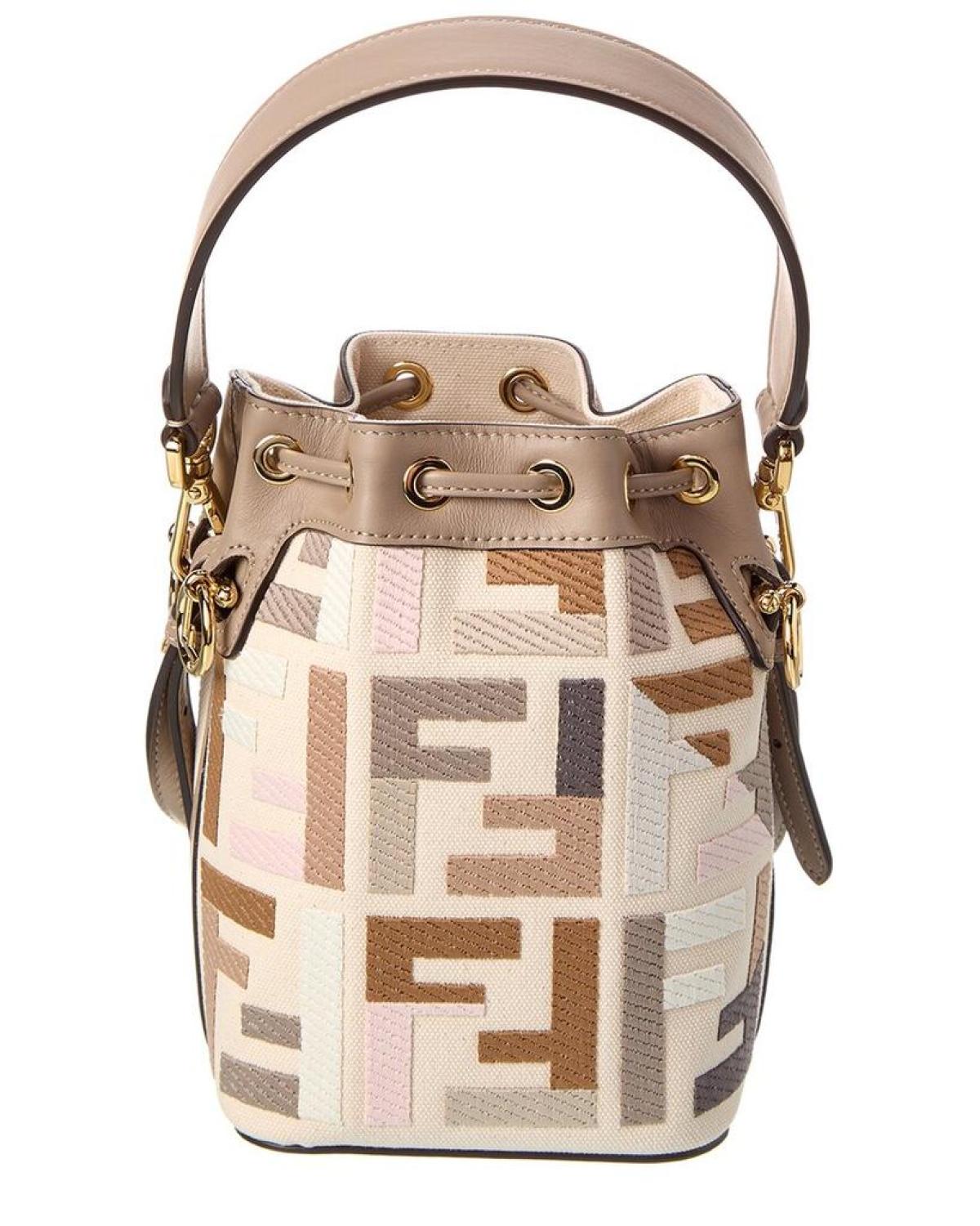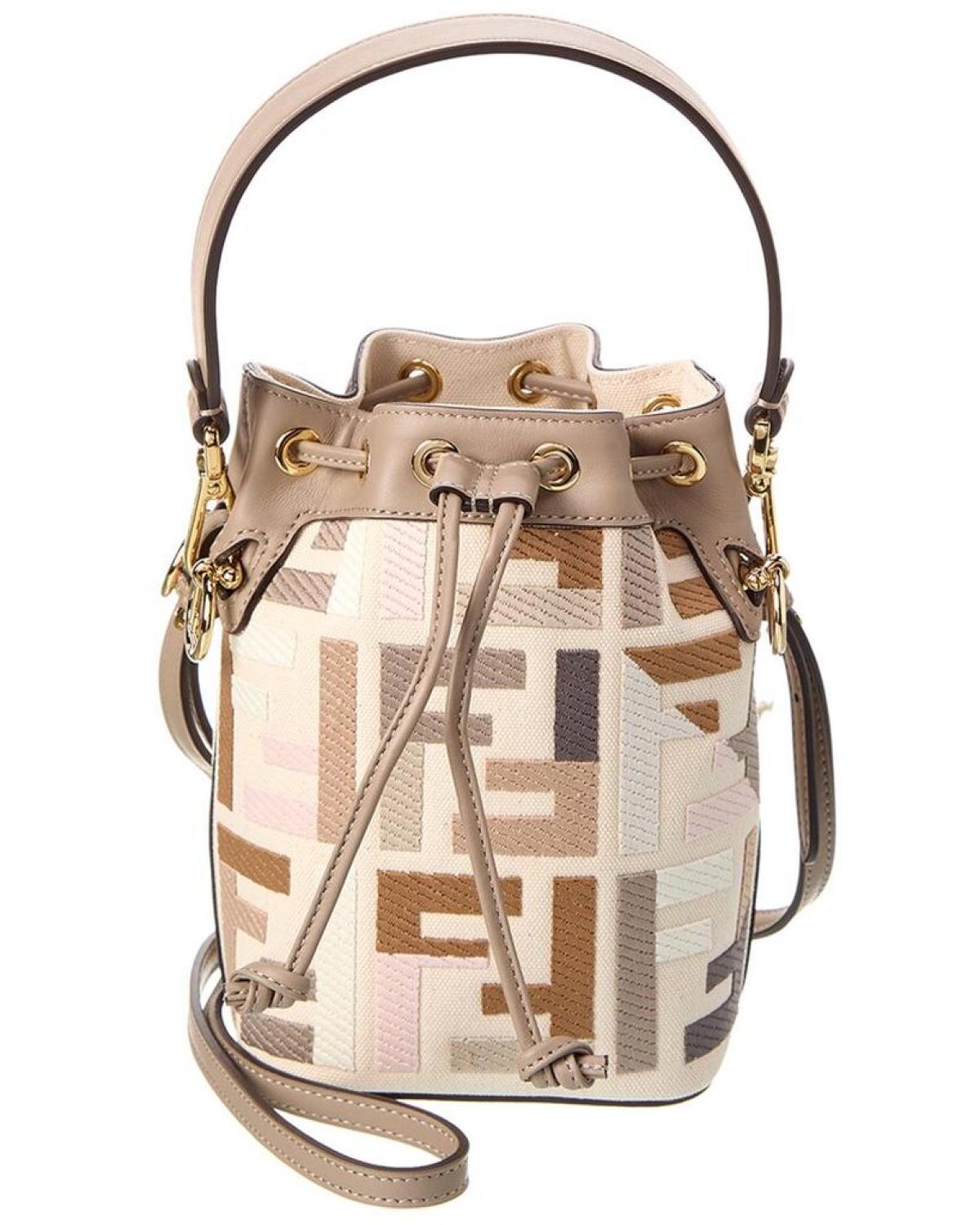 Introducing the FENDI Mon Tresor Mini FF Canvas & Leather Bucket Bag, a stunning addition to your collection of handbags. Crafted with the utmost precision and attention to detail, this bag perfectly embodies FENDI's innovative and elegant Italian luxury.Made in Italy, this exquisite bucket bag showcases a beautiful combination of beige multicolor FF embroidered canvas and leather, complemented by gold-tone hardware and a logo charm detailing. The interior is adorned with a fabric lining, providing a luxurious touch to this compact bag.With dimensions of 5 inches wide, 7 inches high, and 4 inches deep, this mini bucket bag offers enough space to carry your essential items. It features a convenient top handle with a 7-inch drop, allowing for effortless carrying. Additionally, the bag comes with an adjustable and removable shoulder strap, providing versatility in styling, with a drop length of 25 inches.The drawstring closure adds a touch of sophistication, keeping your belongings secure and organized. Please note that all measurements were taken by hand and are approximate; slight variations may occur, showcasing the uniqueness of each individual bag.At , we take pride in offering only 100% genuine products. In some cases, we may source merchandise from trusted independent suppliers rather than directly from the brand owner. However, we assure you that in all cases, we stand by the authenticity of every product sold on our site.Elevate your style with the FENDI Mon Tresor Mini FF Canvas & Leather Bucket Bag – a perfect balance of luxury, functionality, and contemporary design. Shop now and experience true Italian craftsmanship at its finest.