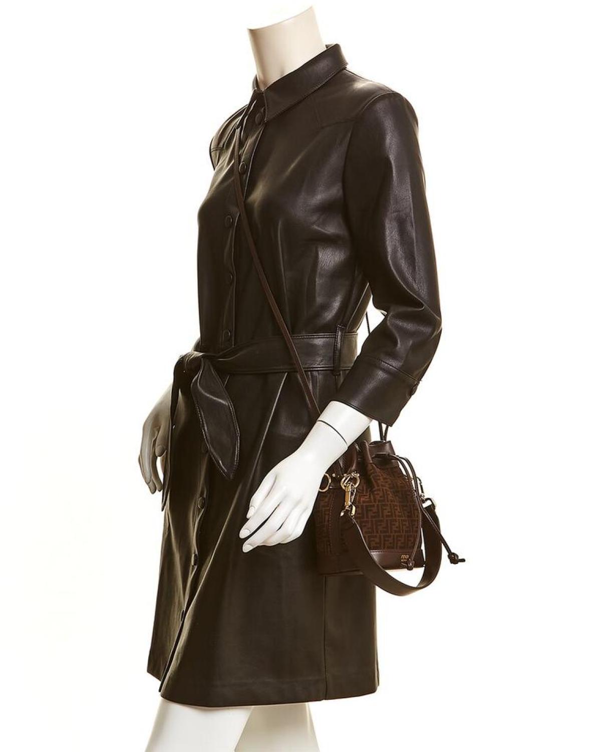 Introducing the FENDI Mon Tresor Mini Suede & Leather Bucket Bag, a true embodiment of innovative and elegant Italian luxury. Made in Italy with unparalleled craftsmanship, this exquisite bag showcases the iconic FENDI brand.Crafted from brown leather and FF suede, this bucket bag exudes sophistication. The gold-tone hardware and logo charm detailing add a touch of glamour, making it a perfect accessory for any occasion.Inside, you'll find a luxurious suede lining that not only enhances the bag's elegance but also protects your belongings. With dimensions of 5 inches wide, 7 inches high, and 4.5 inches deep, it offers ample space to carry your essentials.The top handle has a drop length of 7 inches, allowing for comfortable carrying, while the removable shoulder strap offers versatility with a drop length of 24 inches. Whether you prefer handheld or crossbody wear, this bag can adapt to your needs effortlessly.The drawstring closure ensures the security of your belongings while adding a stylish touch. Please note that all measurements were taken by hand, and slight variations may occur, adding a unique element to each bag.Rest assured that our products are 100% genuine. While we source merchandise from trusted independent suppliers, we guarantee the authenticity of every product sold on our site. Embrace the allure of FENDI with the Mon Tresor Mini Suede & Leather Bucket Bag - a true statement piece for every fashion-forward woman.
