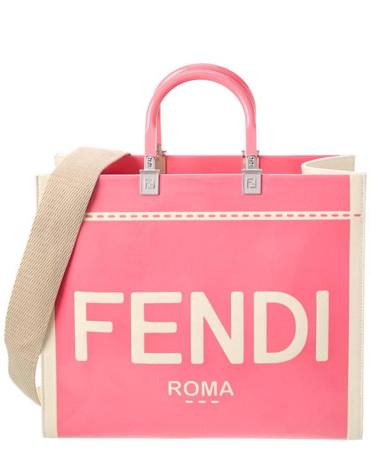 Introducing the FENDI Sunshine Medium Patent Tote - the perfect addition to any stylish woman's wardrobe. Made in Italy, this tote boasts FENDI's signature innovative and elegant Italian luxury. The pink and white patent leather with silver-tone hardware and plexiglass top handles make for a chic and statement-making design. Inside, a microfiber lining provides a luxurious touch. Measuring at 16 inches wide by 14 inches high by 8.5 inches deep, this tote is spacious enough to carry all your essentials. The top handles have a drop of 5 inches, but if you prefer to wear it over your shoulder, a removable shoulder strap drops 17.5 inches. The open top makes for easy access to your belongings. Please note that all measurements were taken by hand and are approximate, so slight variations may occur. Rest assured that all our products, including this FENDI Sunshine Medium Patent Tote, are 100% genuine. While some were purchased from trusted independent suppliers, we stand by the authenticity of every product sold on our site. Treat yourself to the ultimate luxury with the FENDI Sunshine Medium Patent Tote.