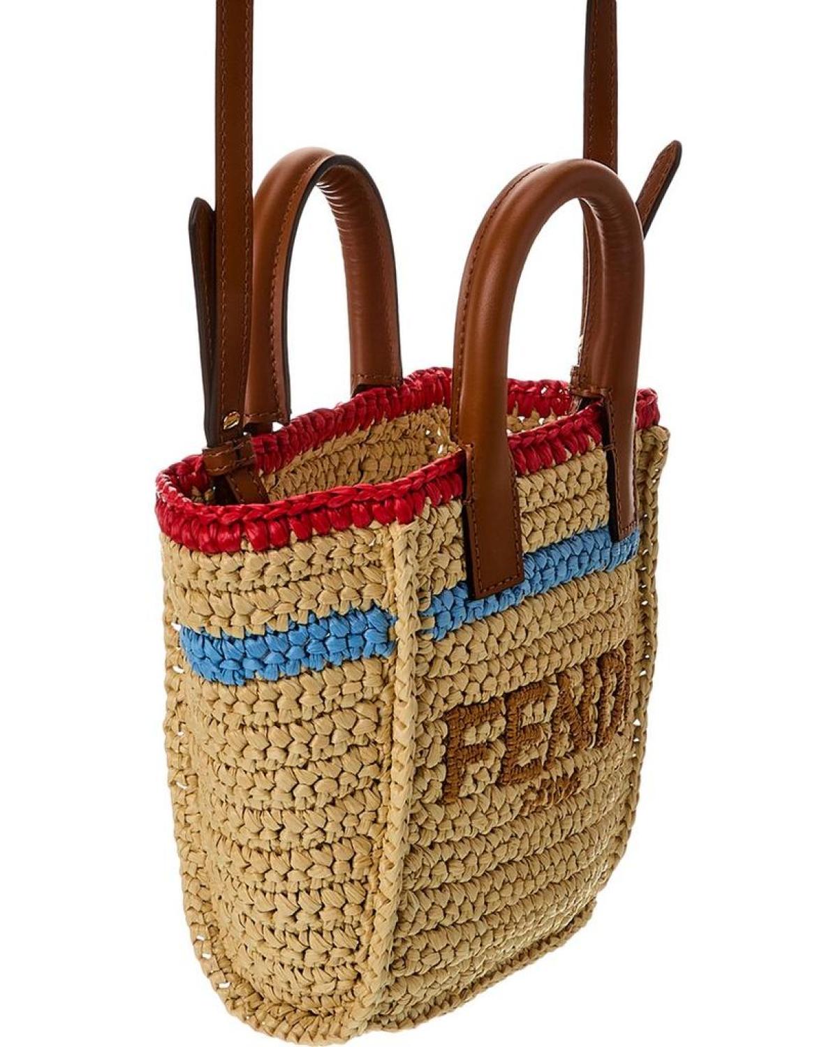 Introducing the FENDI Sunshine Mini Raffia & Leather Tote, a true embodiment of innovative and elegant Italian luxury. This exquisite handbag is crafted with the utmost precision and attention to detail, proudly bearing the renowned FENDI brand.Made in Italy with a meticulous blend of natural, blue, and red raffia and brown leather, this tote exemplifies the perfect union of rustic charm and refined sophistication. The luxurious gold-tone hardware adds a touch of opulence, elevating the bag's overall aesthetic.The interior of this tote is thoughtfully designed with an unlined finish, allowing the craftsmanship and materials to shine through. With a width of 9 inches, a height of 6.5 inches, and a depth of 3 inches, it offers ample space without compromising its compact nature.Featuring top handles with a 3-inch drop and an adjustable, removable shoulder strap that drops 25 inches, this tote provides multiple carrying options to suit your personal style and comfort. The open top design ensures easy access to your belongings, making it convenient for your daily essentials.Please note that all measurements were taken by hand and are approximate; slight variations may occur, adding a unique touch to each individual piece. Rest assured, our products are 100% genuine. While in some cases we source merchandise from trusted independent suppliers rather than directly from the brand owner, we guarantee the authenticity of every product sold on our site.Indulge in the ultimate expression of Italian luxury with the FENDI Sunshine Mini Raffia & Leather Tote. Add this stunning accessory to your collection and experience the perfect blend of style, craftsmanship, and authenticity that only FENDI can offer.