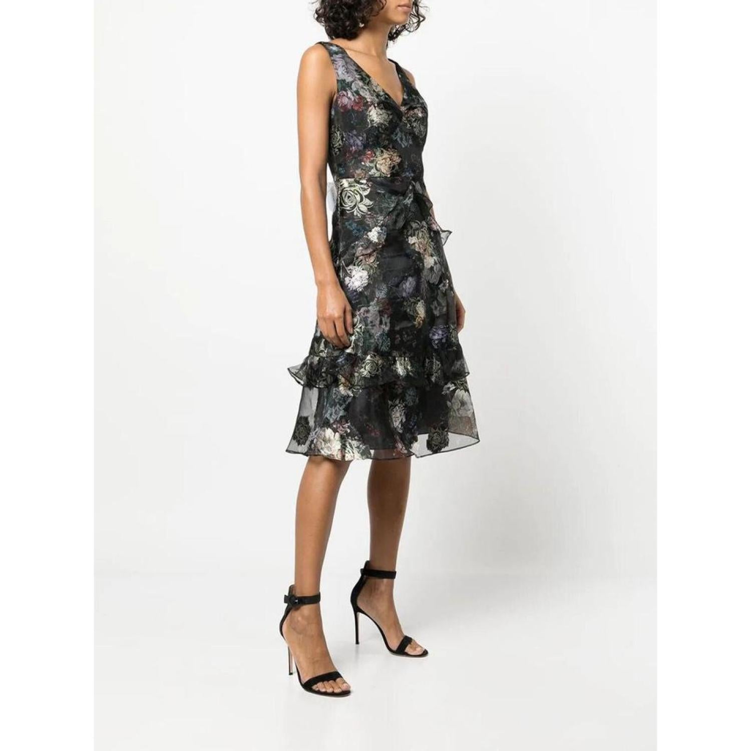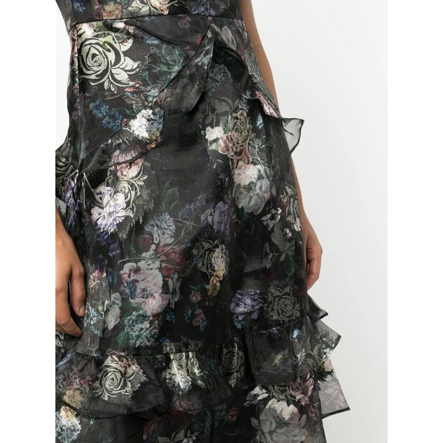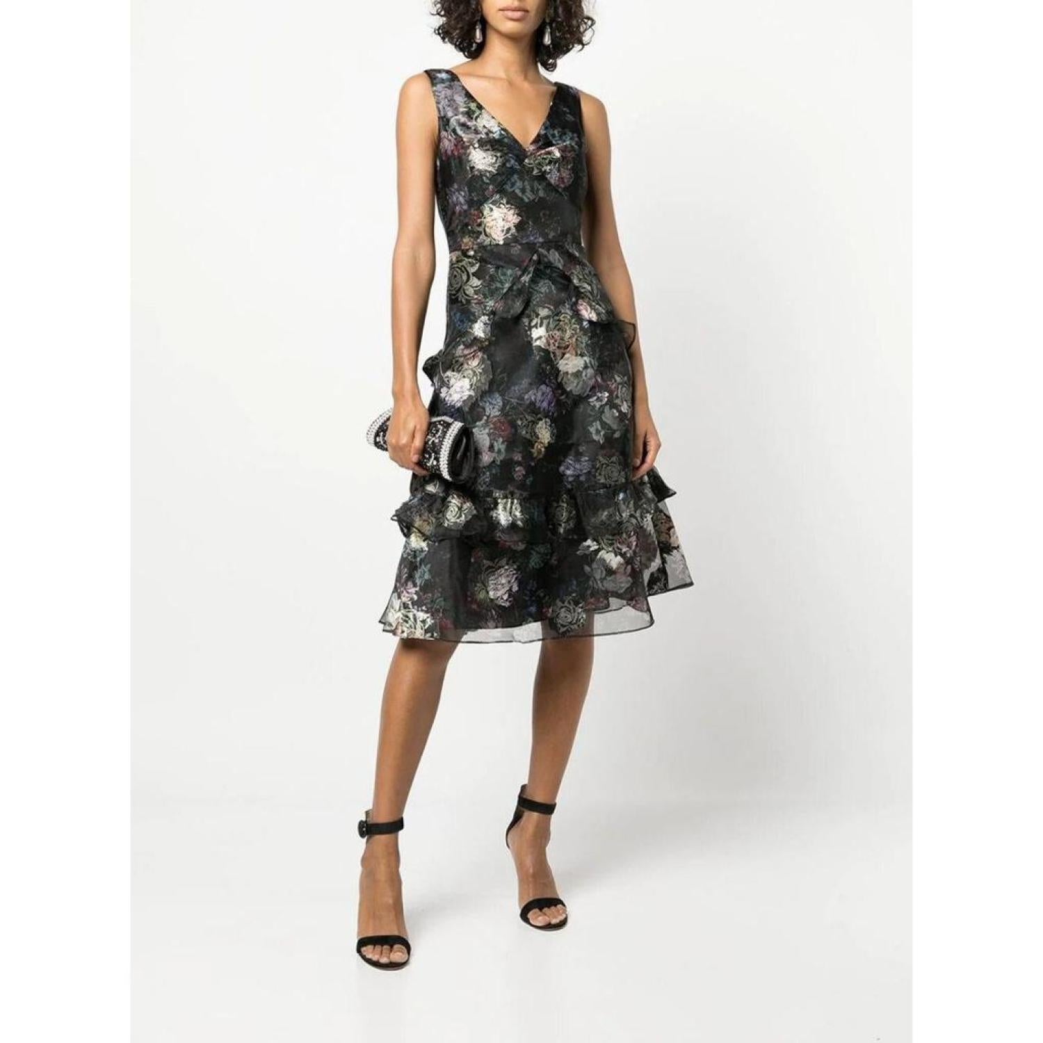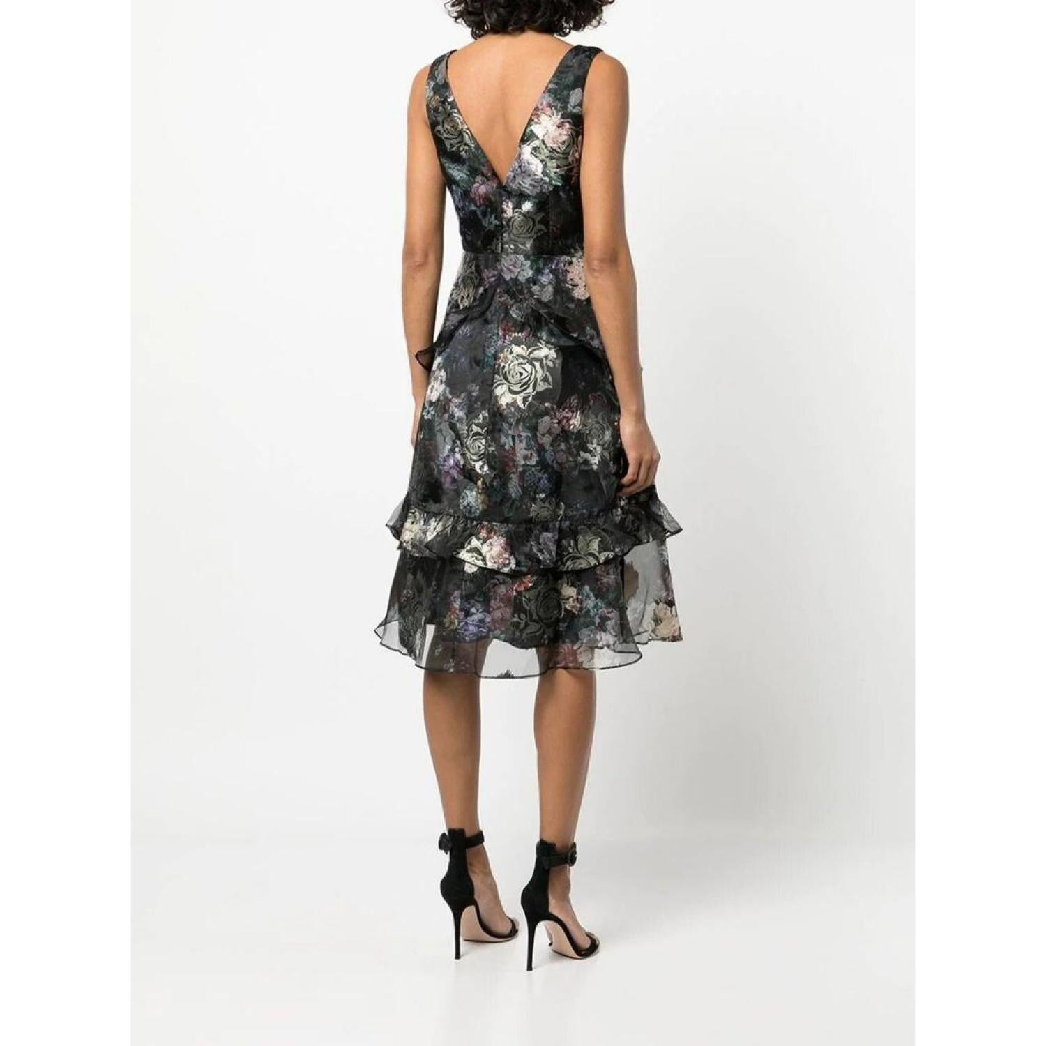 • Sleeveless floral print fil coupe midi dress with ruffles.