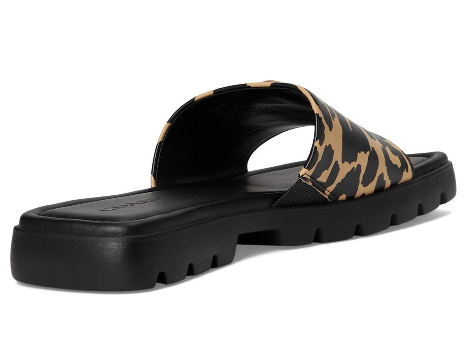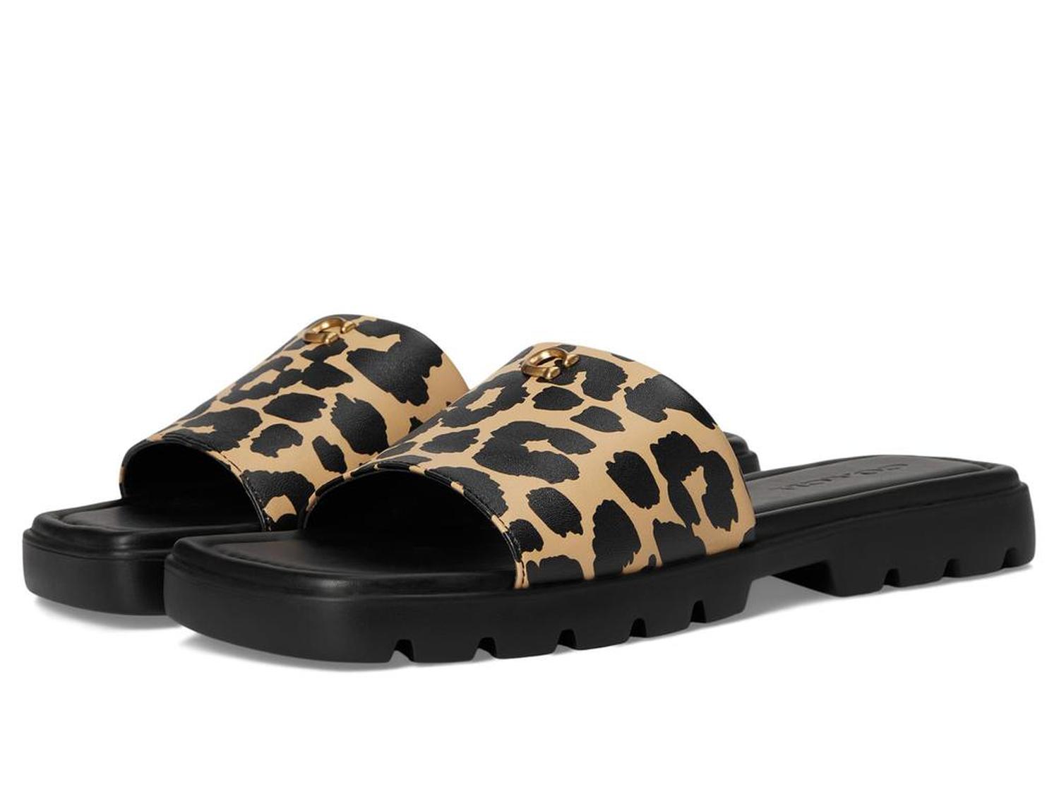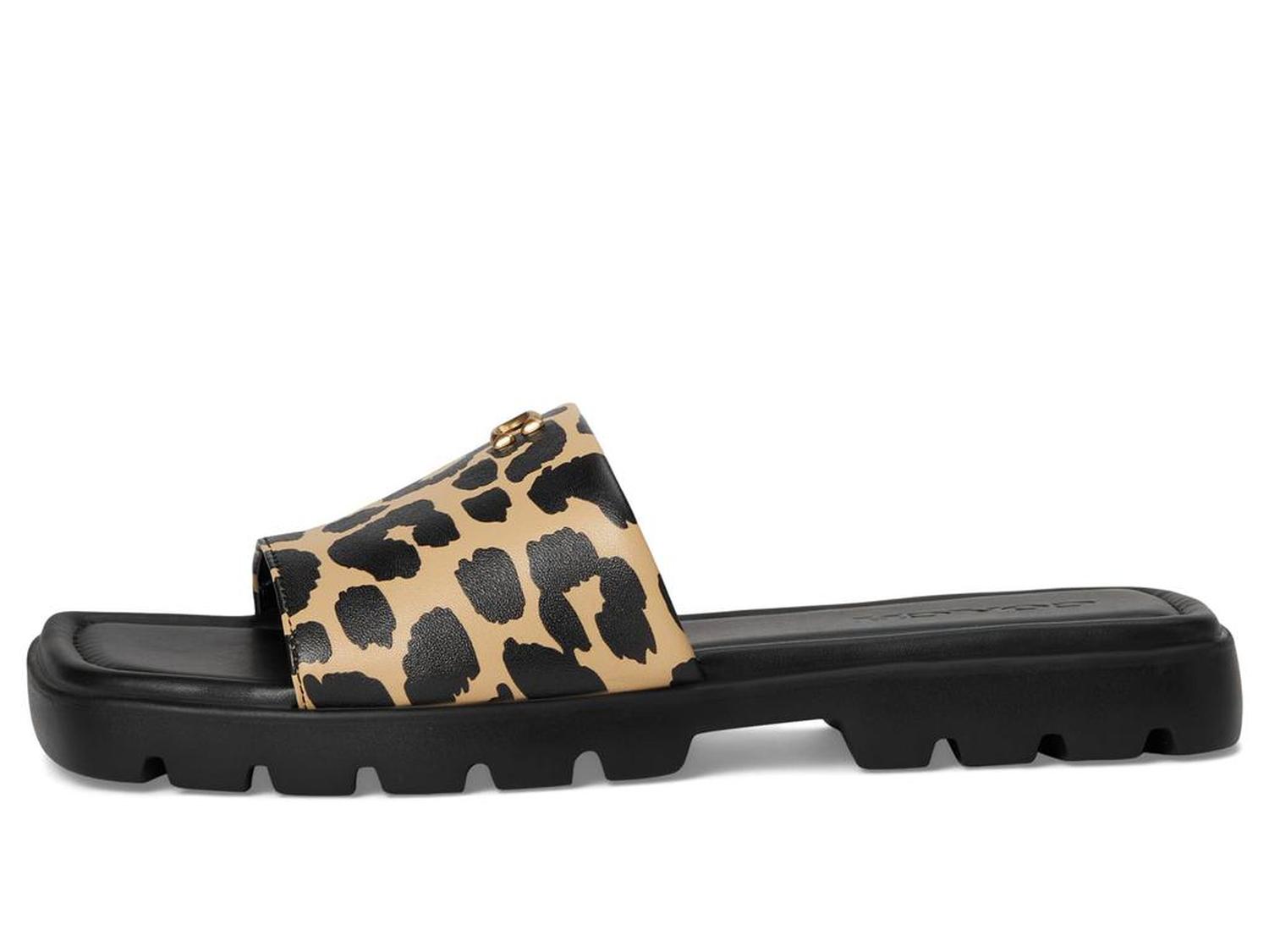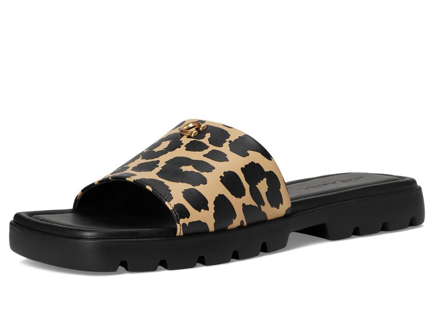 Please Note: COACH™ items cannot be shipped to military addresses (APO or FPO) and addresses in Hawaii, the Virgin Islands, Guam or any other locations outside of the continental US. Let your feet roar with confidence wearing COACH® Florence Sandal, featuring a bold leopard print on a sleek leather upper that exudes fierce sophistication. The faux leather lining and footbed pamper your feet with luxurious softness, while the lightweight EVA insole and outsole deliver cushioned support for all-day ease. Designed for effortless wear, this slip-on silhouette ensures you stride in style and comfort, whether you're lounging poolside or exploring city streets. Imported. Product measurements were taken using size 9, width M. Please note that measurements may vary by size. Measurements: Heel Height: 1/4 in Weight: 9 oz-