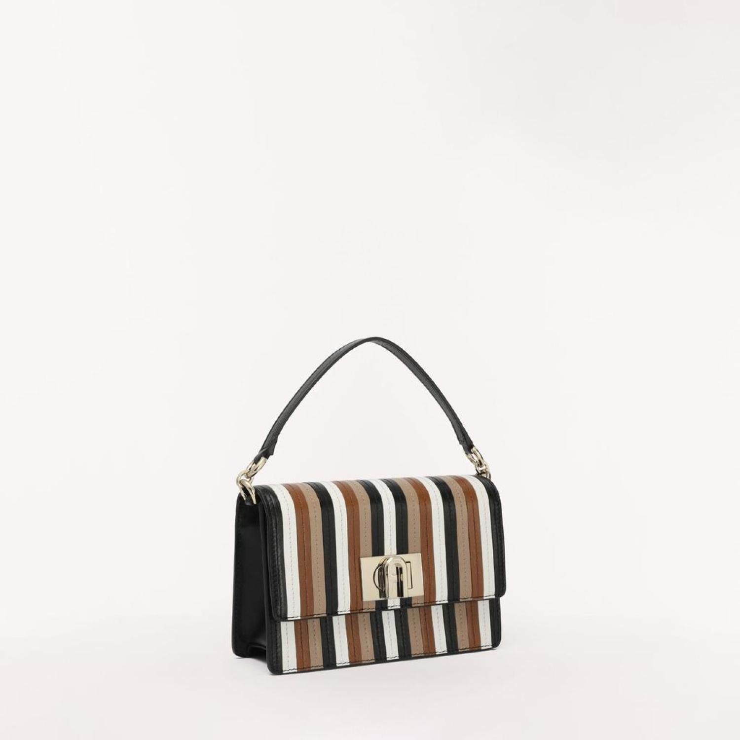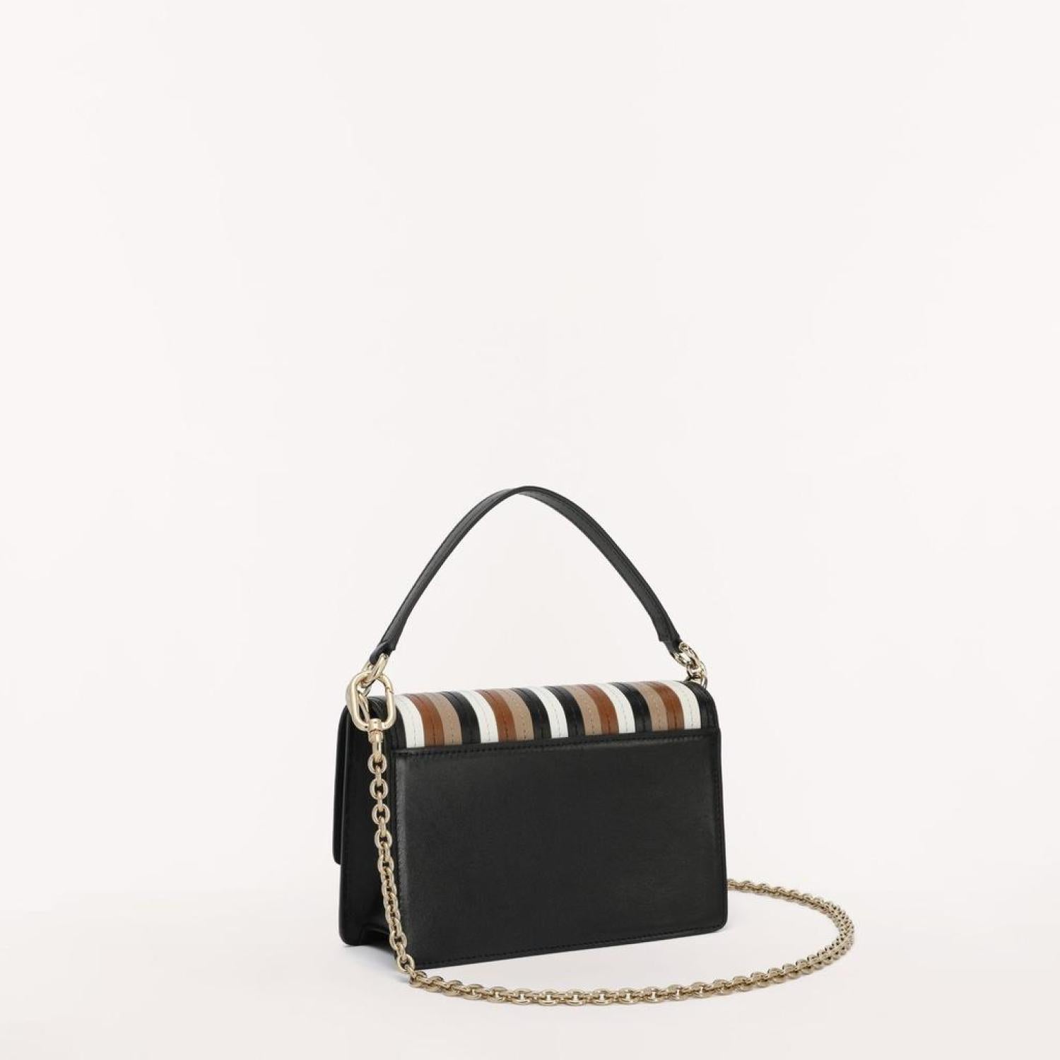 • Furla 1927 is a mini crossbody bag made from Sorrento calfskin, with a striped insert. With its matching leather and metal chain shoulder strap, it can be worn on the shoulder too. The practical and functional twist closure with Furla logo on the front makes the accessory stand out. - Small inner pocket- Outer pocket on the back- Top handle- Removable shoulder strap- Galvanised light gold finishes Dimensions 7.87 x 5.32 x 2.76 (w x h x d)