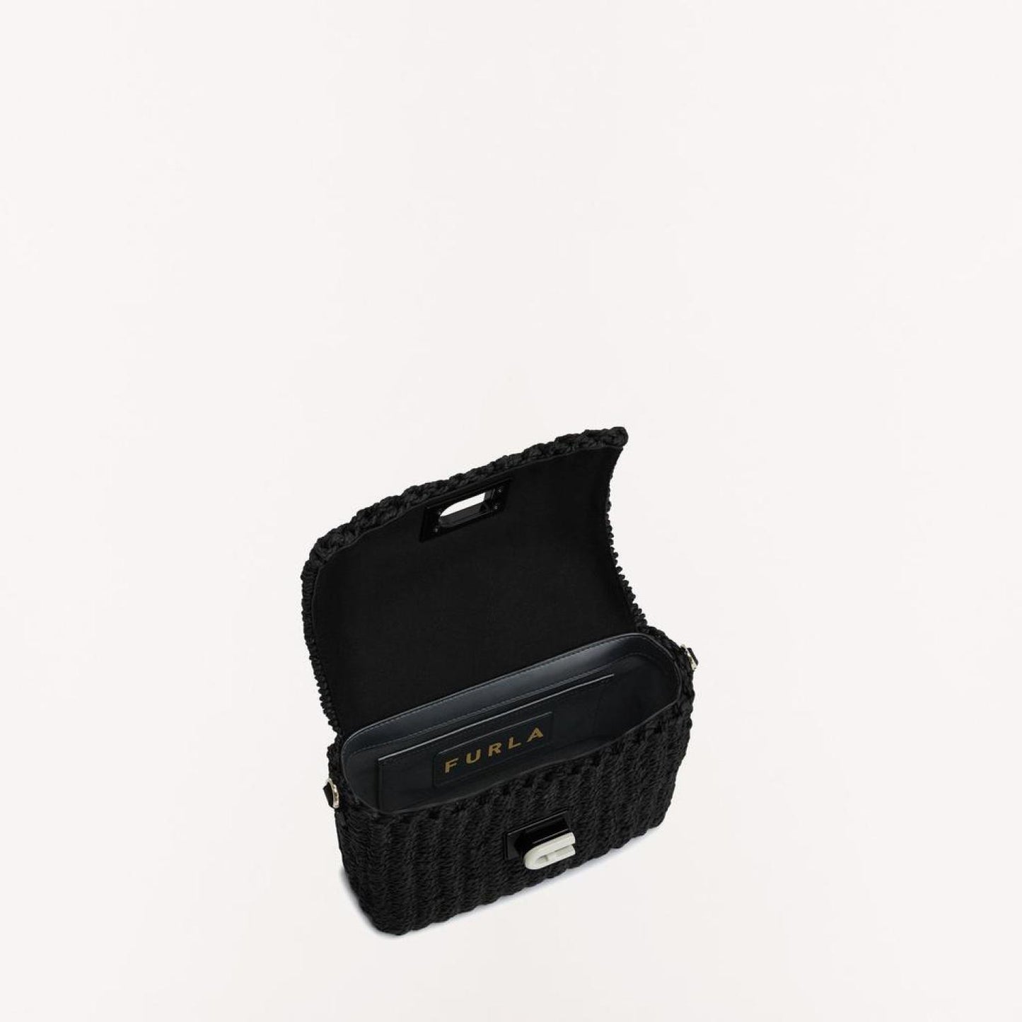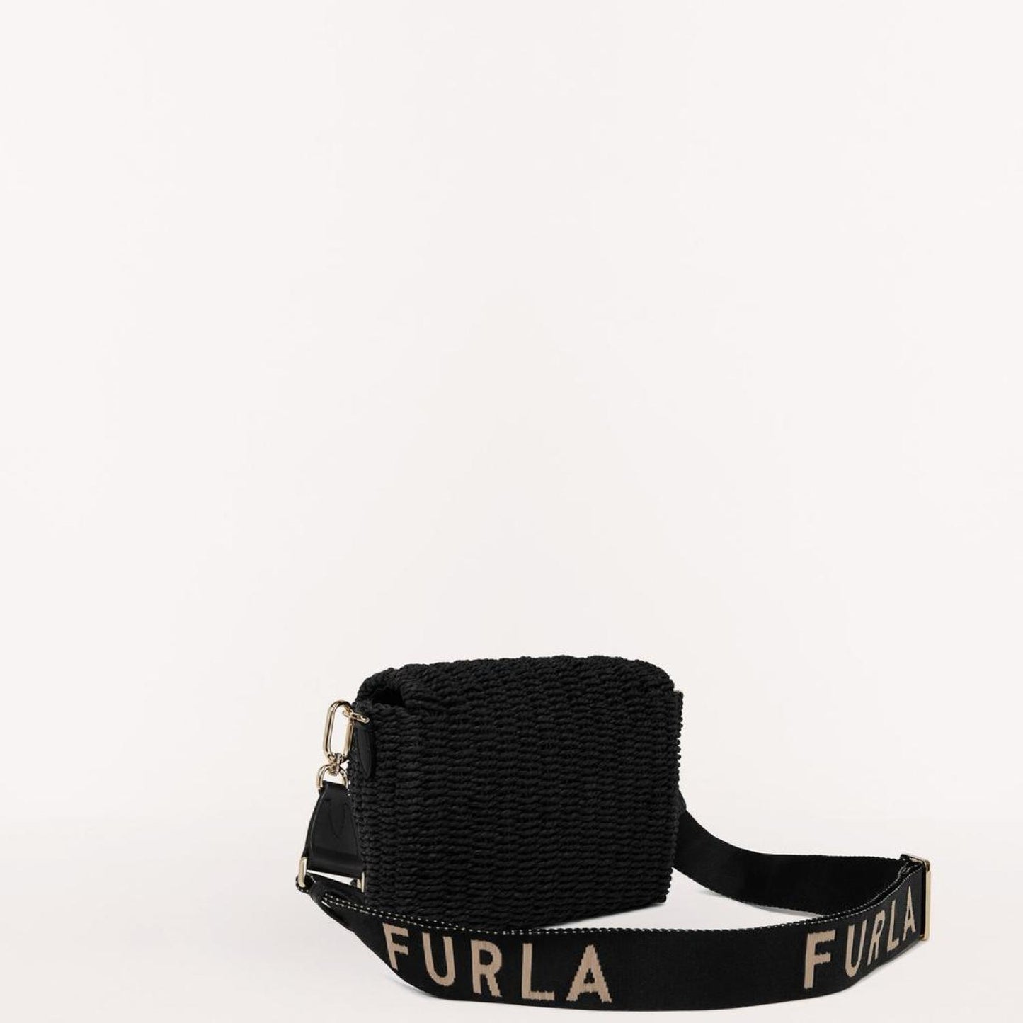 Furla 1927 Soft is a mini crossbody bag made of paper straw. The accessory features a removable grosgrain strap with leather details and a contrasting Furla logo, so it also can be worn on the shoulder. The twist closure in resin with the Furla logo engraved on the front adds a unique touch to the bag. - Open lined inside pocket- Galvanised gold and resin finishes Dimensions 7.87 x 5.32 x 2.76 (w x h x d)