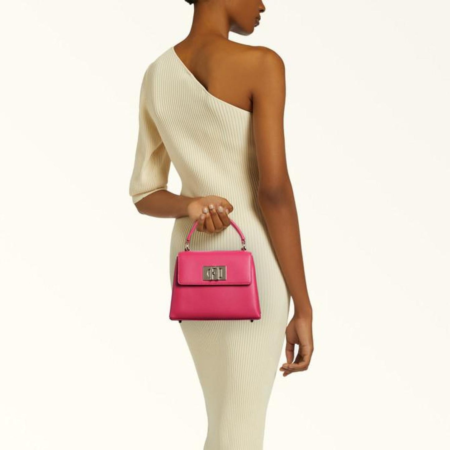 • Furla 1927 is a mini handbag made of textured leather. The bag can also be worn across the body thanks to the removable strap. The twist closure with the Arch logo on the front completes the bag.