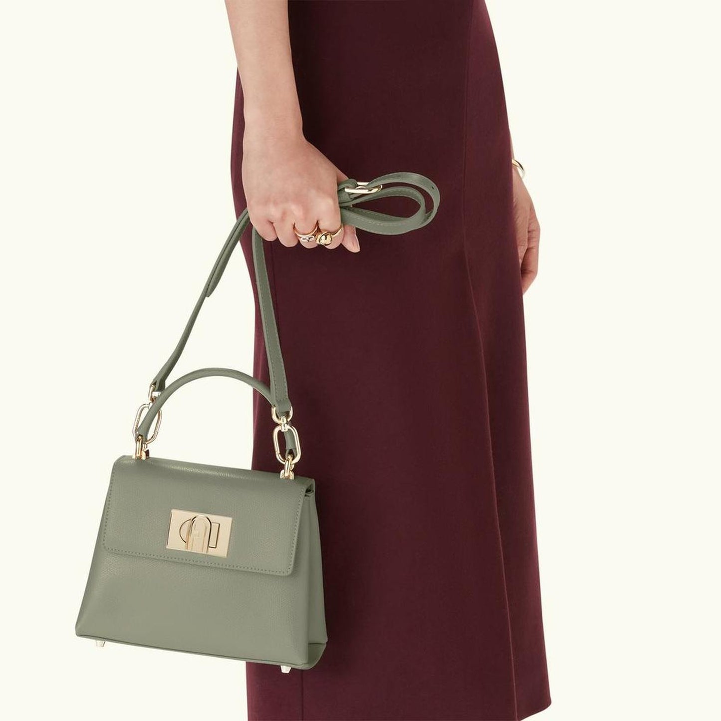 • The perfect size for holding all your small belongings, this Furla 1927 is a mini top-handle bag crafted from elegant leather with a light textured finish. The distinctive twist closure with the tab and iconic Furla Arch logo will capture attention whether you carry it by hand or use the strap to wear it on the shoulder or crossbody.