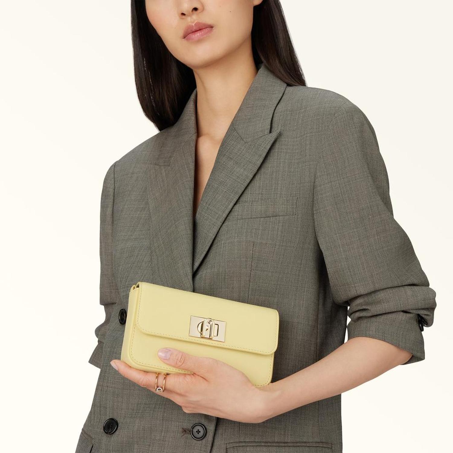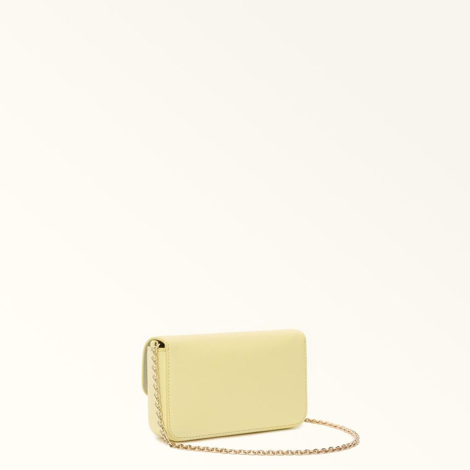 • This sweet Furla 1927 style is super compact. Made of precious leather with a printed grain texture, it features a thin chain strap for added versatility – transforming the bag into a shoulder or crossbody bag.