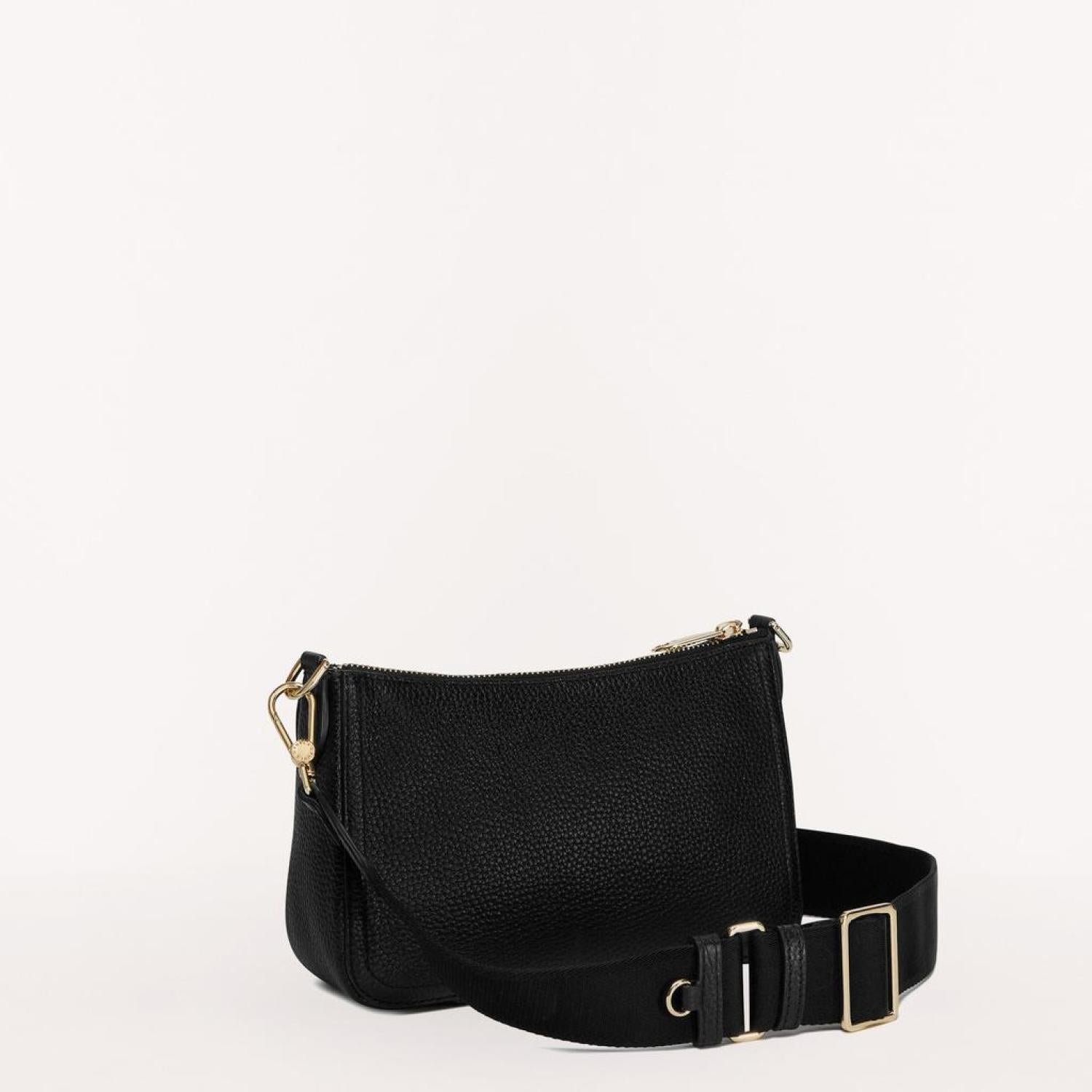 • Furla Atena is a small crossbody bag made from grained Keria calfskin. This piece, complete with a ribbon shoulder strap that is adjustable and removable via the clasps at the sides, features the Arch logo with embossed gold-finish Furla lettering punched on the front. The perfect accessory for a sporty, casual look. - Zipped top closure- Open inside pocket- Galvanised light gold finishes Dimensions 8.66 x 5.51 x 2.56 (w x h x d)