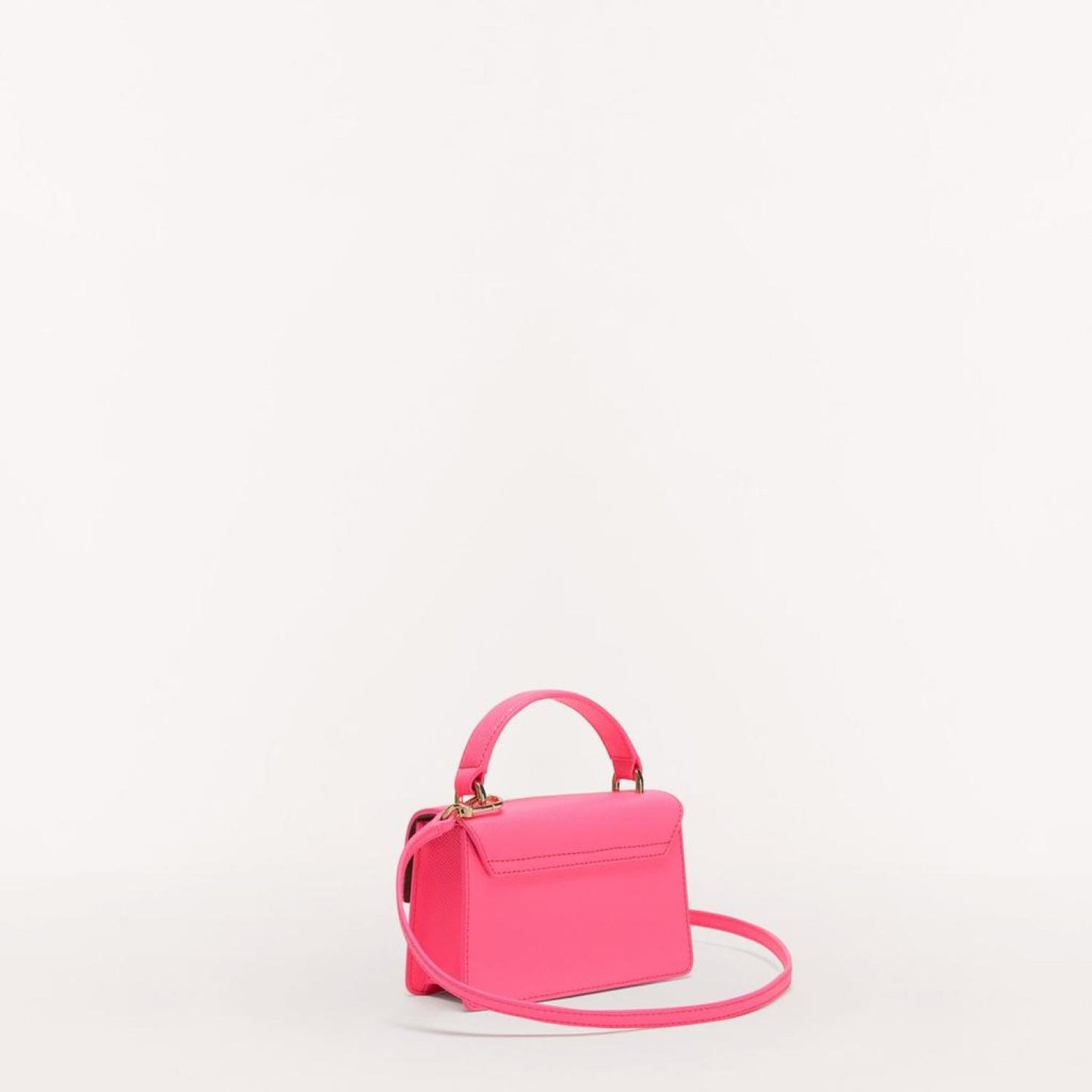 Furla Bella is a mini handbag made of fluorescent Andromeda calfskin. The model features a practical open outer pocket on the back to easily access your personal belongings. The gusseted inner compartment with a zipped pocket allows you to neatly and carefully organise your ID cards and small items. - Closure with galvanised padlock- Removable leather top handle and strap- Galvanised light gold finishes- Dimensions: 6.3 x 4.13 x 1.57
