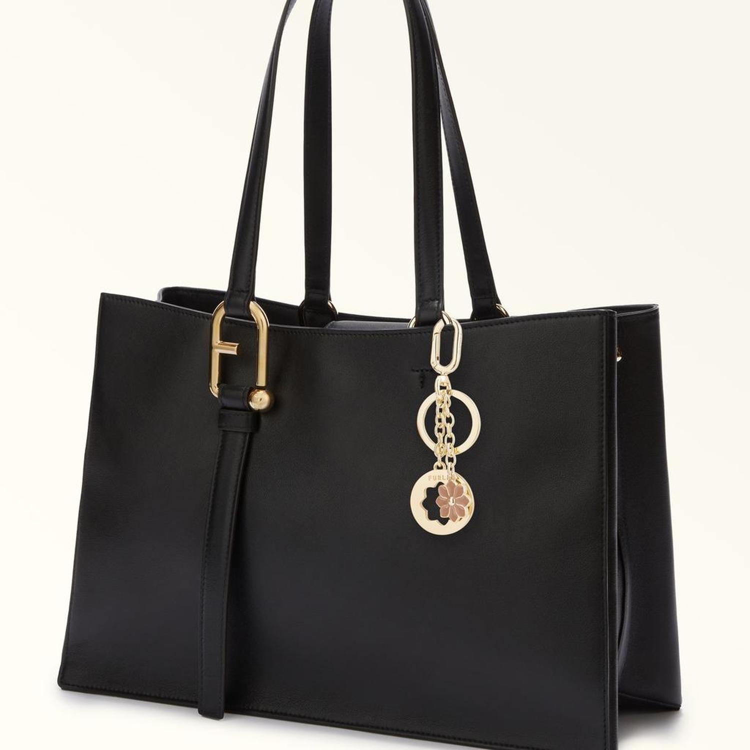 • Make your look blossom with this Furla Crystal keyring, by attaching it to your bag, or using it to keep your keys organised. It is crafted from an overlapping perforated metal loop and a small enamelled camellia flower on the front, to add a sparkling touch.