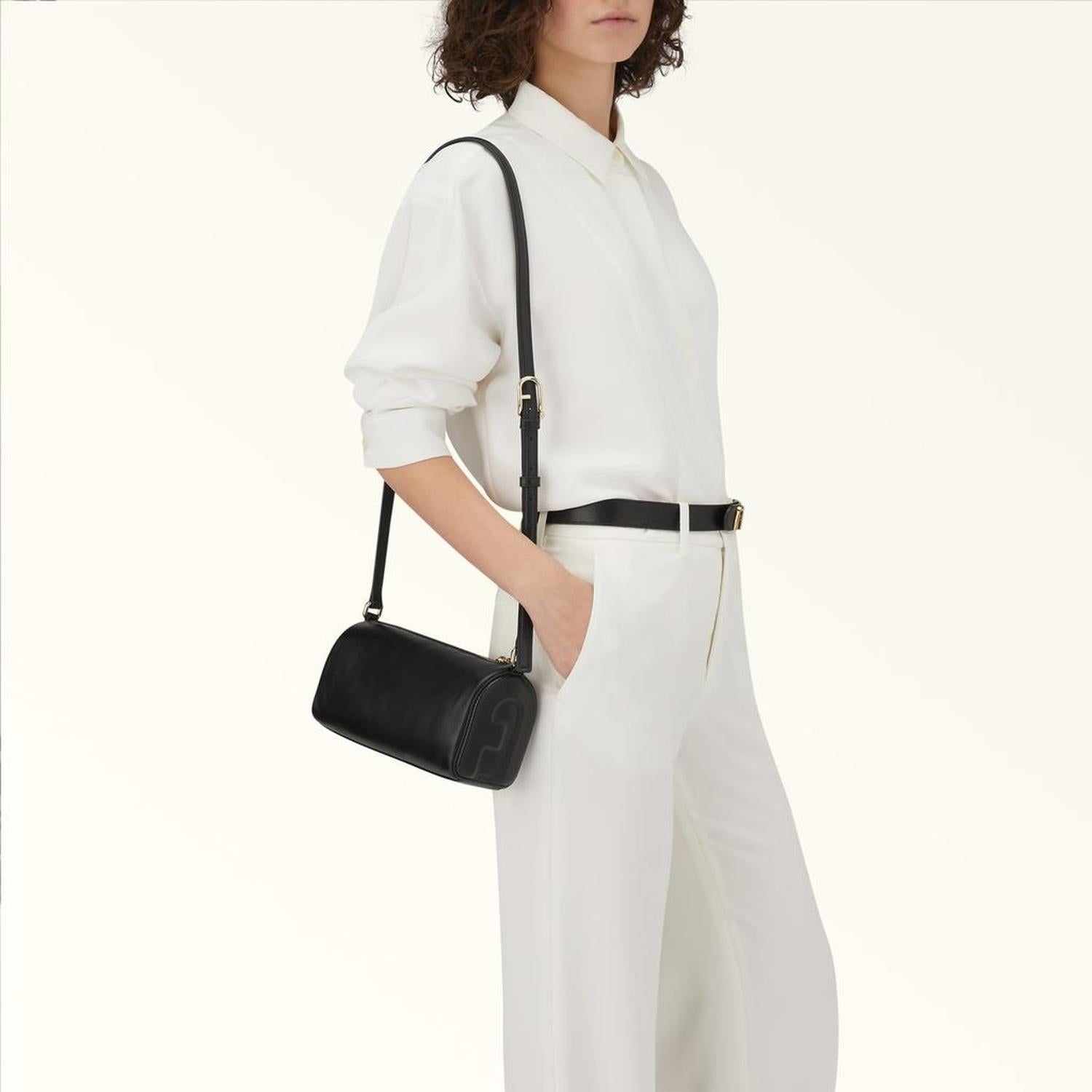 • Styled in soft padded nappa leather with a smooth and silky feel, this Furla Dalia crossbody features an architectural style in a rectangular block shape with rounded corners at the sides. Distinctive with the iconic Arch logo embossed on the sides for a striking and super-puffy effect, this is perfect as a travel bag or a shoulder bag for any globetrotter, thanks to its generous dimensions.