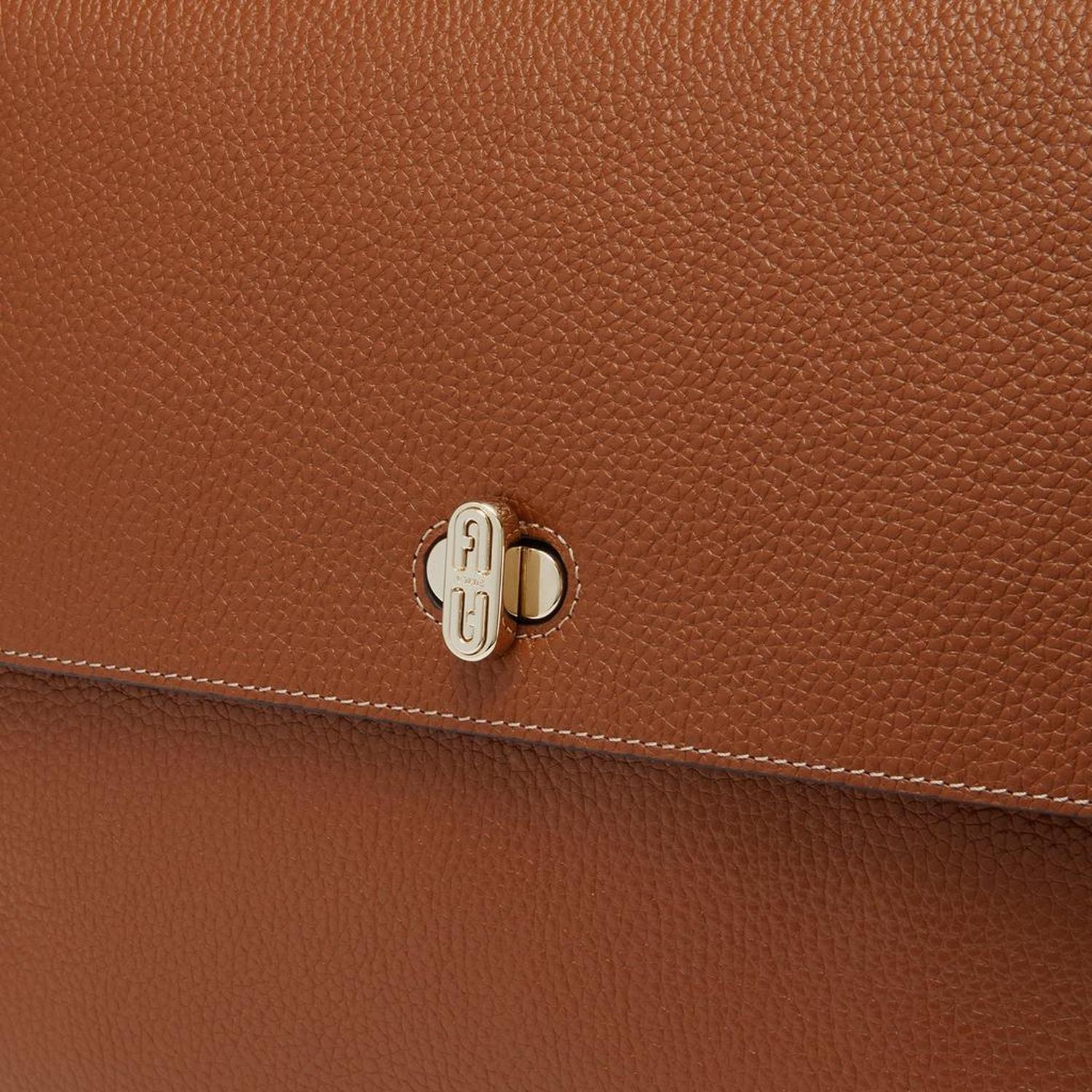 Furla Danae is a crossbody bag made from soft, lightweight grained Keria calfskin. This compact piece features a handy twist closure with flap that recreates an elegant graphic detail, completed by the Furla logo engraved on the front. The open outer pocket on the back provides easy access to your personal belongings. - One open inside pocket- One zipped inner pocket- Galvanised light gold finishes- Dimensions - 11.02 x 8.27 x 4.72