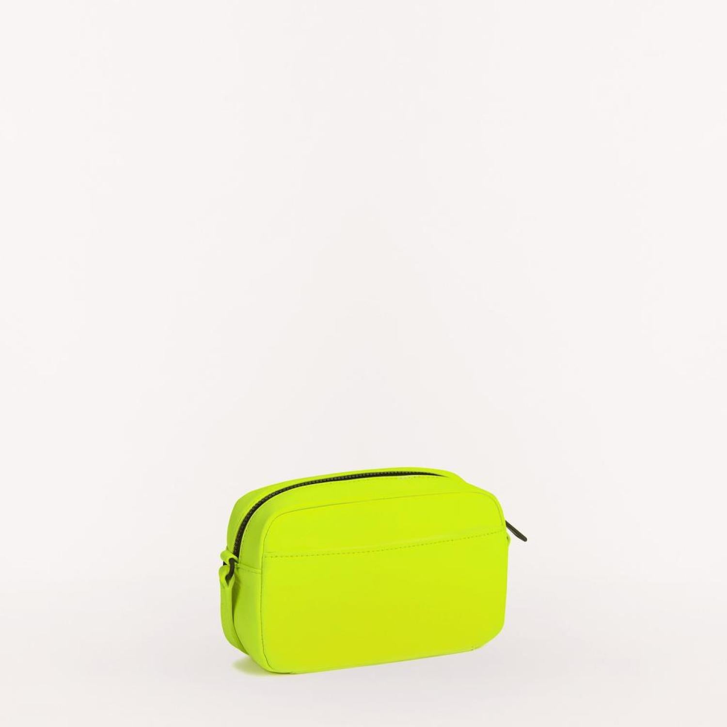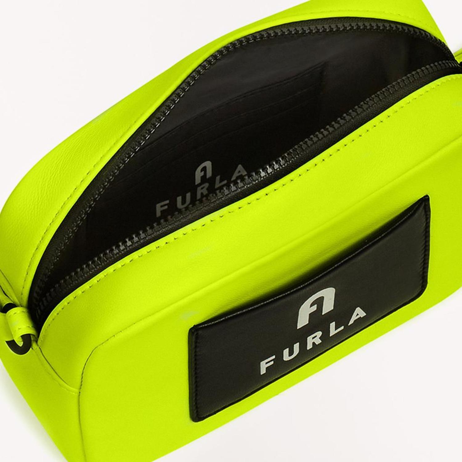 • Furla Iris is a mini crossbody bag made from a combination of padded and neon burnished nappa leather. It features three lined compartments for neatly storing your credit cards and documents. The Furla logo printed on the front is the accessory’s finishing touch. - Zipped closure- One open outer back pocket- One open front pocket for credit cards and documents- Removable and adjustable leather strap- Matte black galvanised finishes Dimensions 7.09 x 4.33 x 2.56 (w x h x d)