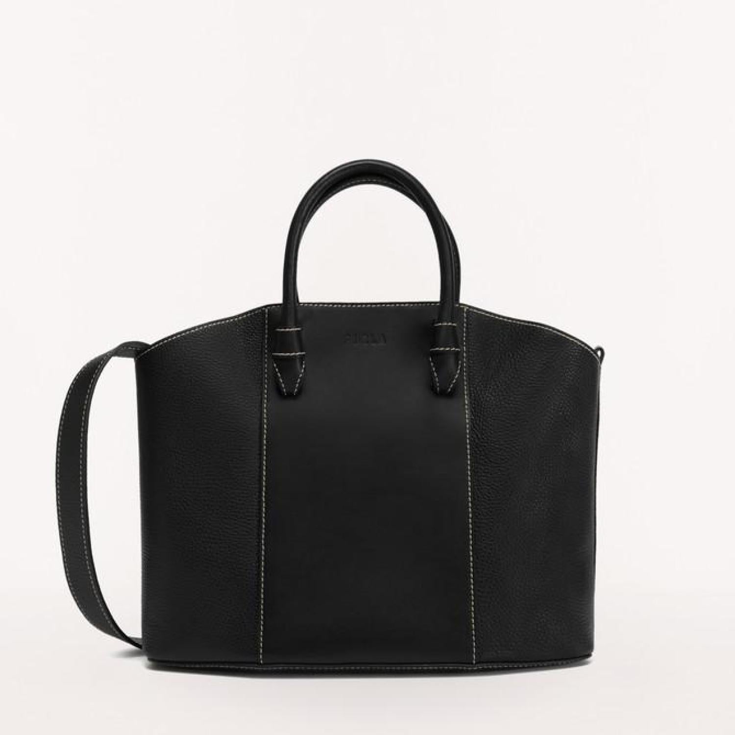 Furla Miastella is a large shopping bag made of grained calfskin featuring two handles. This versatile accessory with a modern touch is ideal to complete your daily look. Thanks to the adjustable and removable leather shoulder strap, it can be worn on the shoulder or across the body. - Triple internal compartment with a central zipped pocket and two open pockets - Two open lined inner pockets - Furla logo engraved on the front - Inner tag with Furla Arch logo - Galvanised gold finishes Dimensions 13.39 x 11.02 x 7.87 (w x h x d) material Soft Calf Leather,Grained Calf Leather composition 100% Leather Plating Gold Height 11.02 in product code WB00333_BX0053_1007_O6000