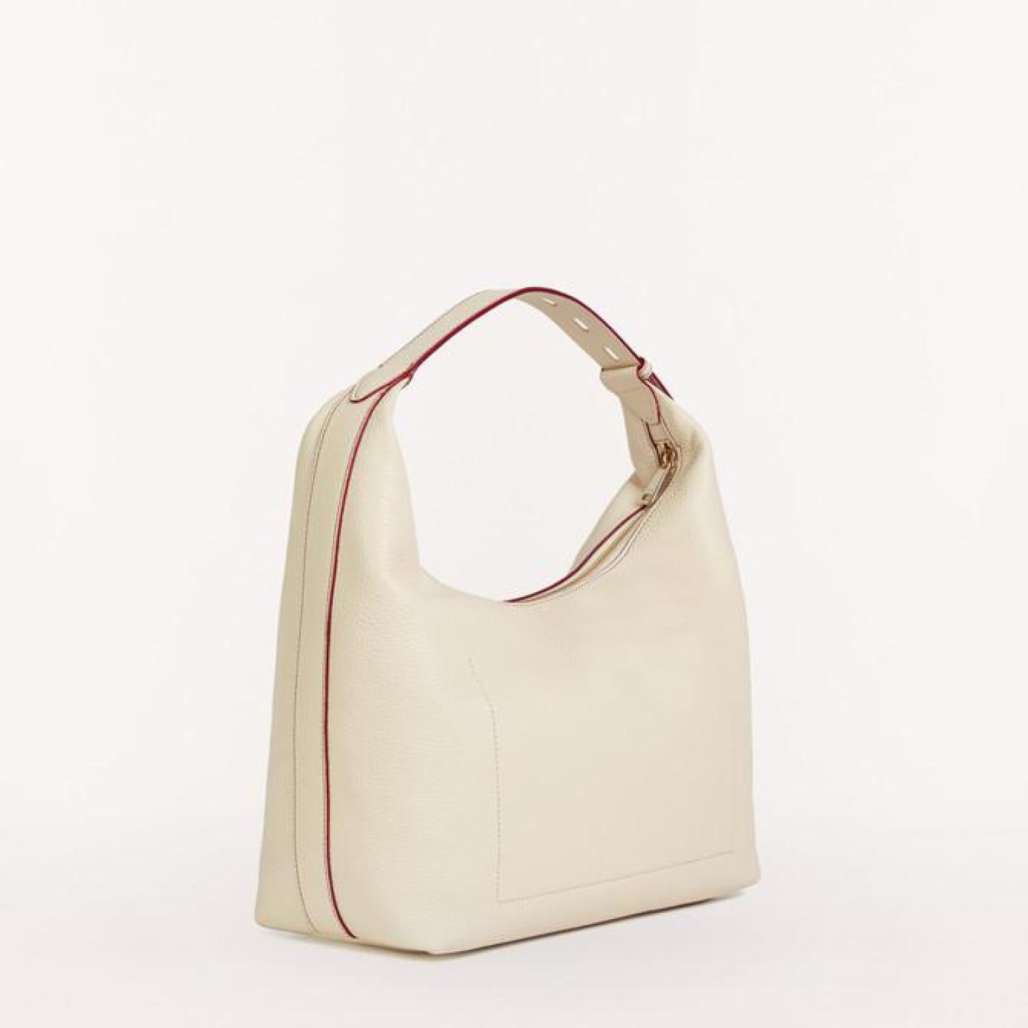 Furla Net is a soft hobo bag made of grained calfskin. The model is made unique by the adjustable strap with metal buckle, incorporating the oval hole detailing of Furla's same line of belts. The galvanised Furla logo embossed on the side adds a unique finishing touch to the accessory. - Zip closure - Inner pockets including one zip pocket - Stitching matching the body of the bag Dimensions 12.6 x 9.06 x 5.71 (w x h x d) material Grained Leather composition 100% Leather Plating Light Gold+Contrasting Finishes Height 9.06 in product code WB00229_HSF000_9013_0251S