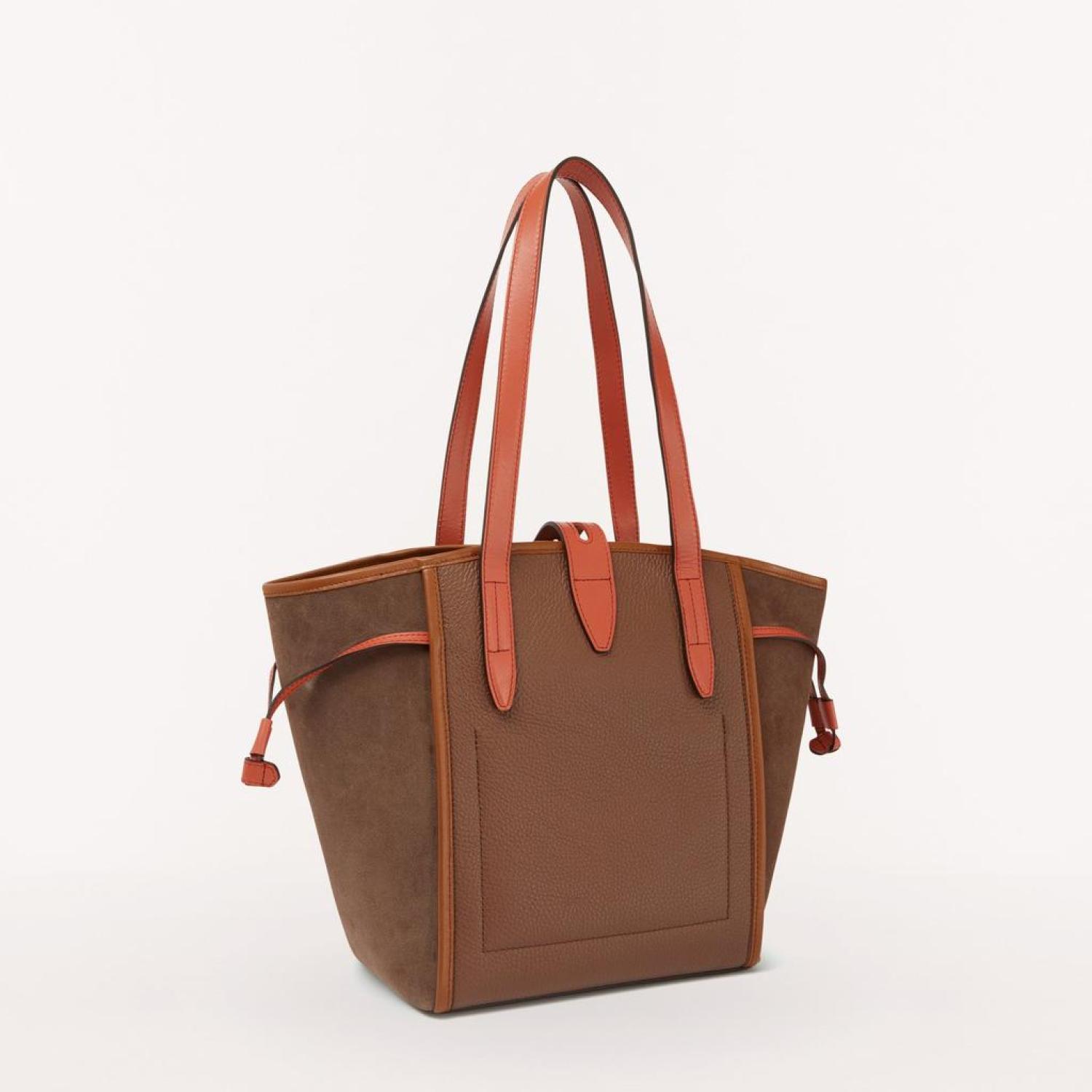 Furla Net is a shopping bag made in a combination of grained calfskin, suede and colour-block Sorrento calfskin. The model features handles which allows it to be comfortably worn on the shoulder, and its distinctive metal twist closure makes it a unique accessory. The size of the bag can easily be adjusted using the drawstring ties on the side, allowing you to neatly store your personal belongings. The Furla logo punched on the front completes the accessory. - Inside pockets- Galvanised light gold finishes Dimensions 8.66 x 11.22 x 6.3 (w x h x d)