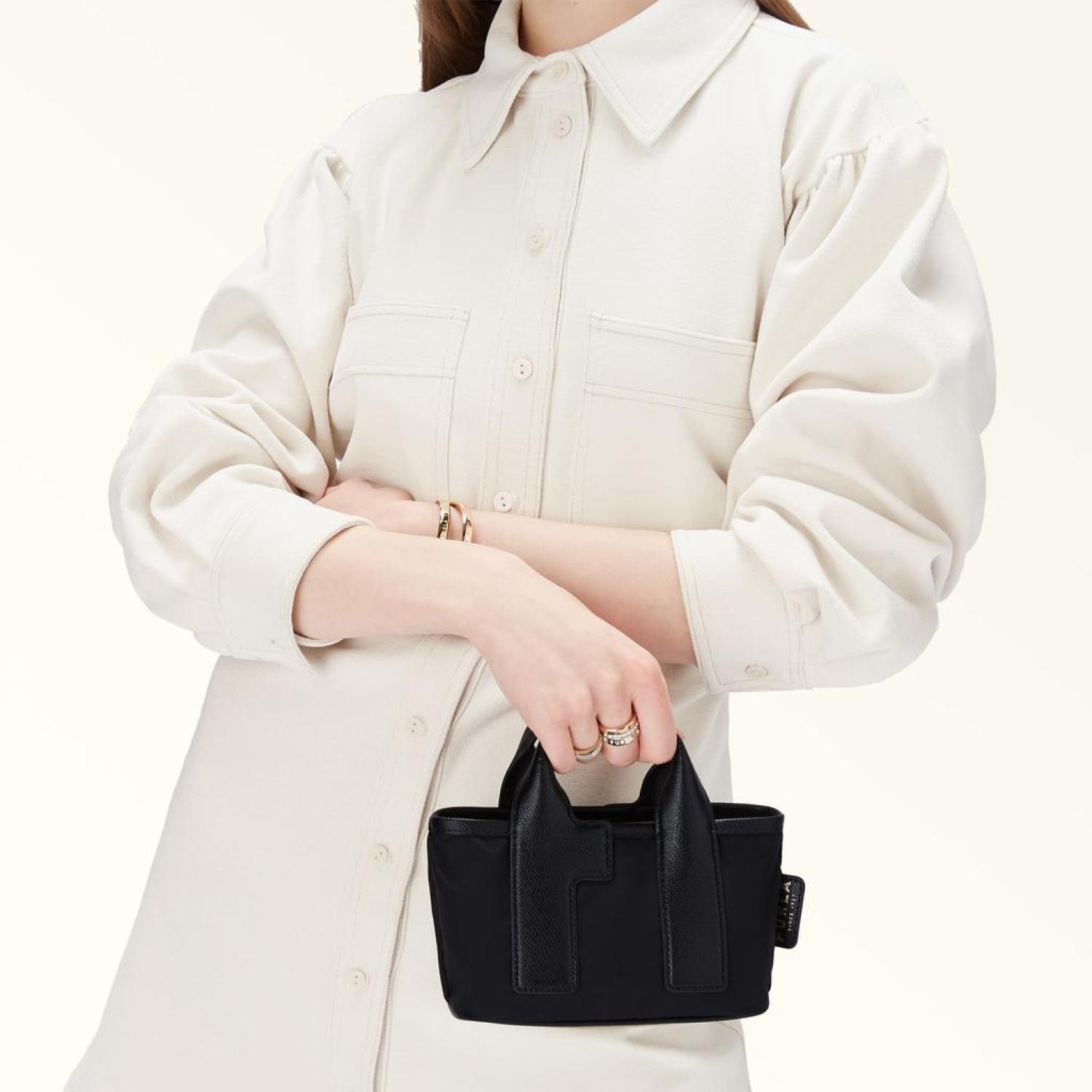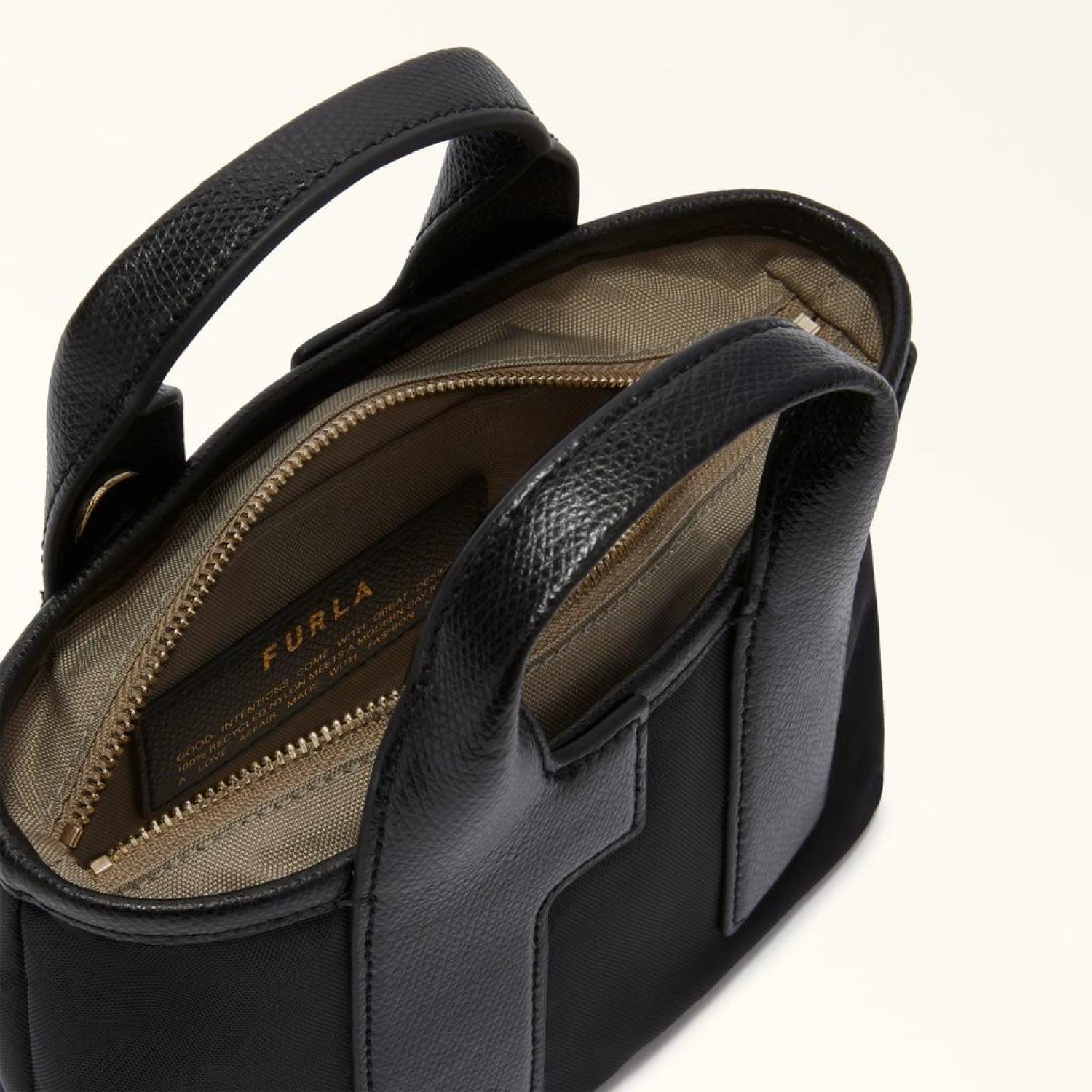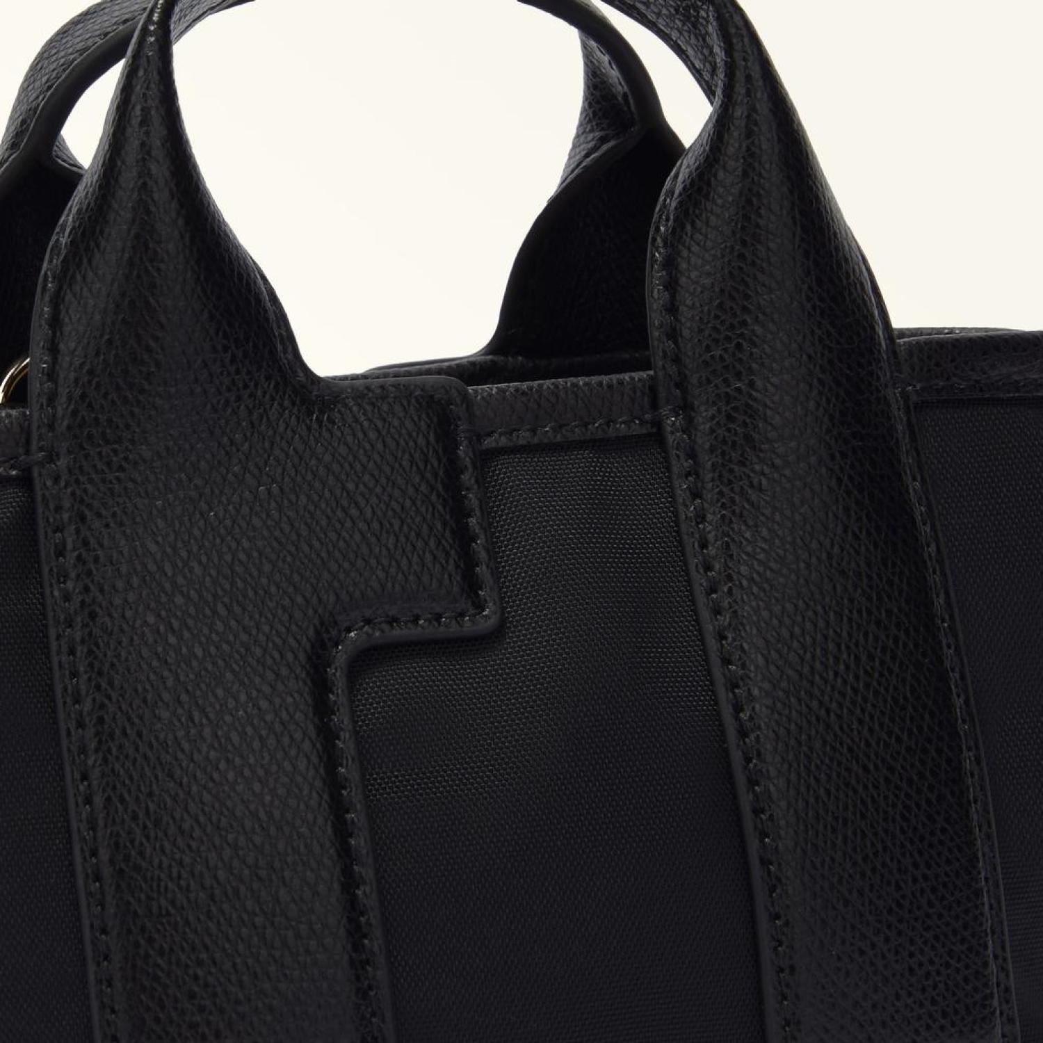 • Made of lightweight recycled nylon with a colour-block design, the small Furla Piuma crossbody is ready for anything. Featuring two printed leather handles that recreate the Furla brand's distinctive logo, it also comes with a matching slim detachable strap for comfortable wear on the shoulder. A distinctly elegant way of keeping your essentials to hand.