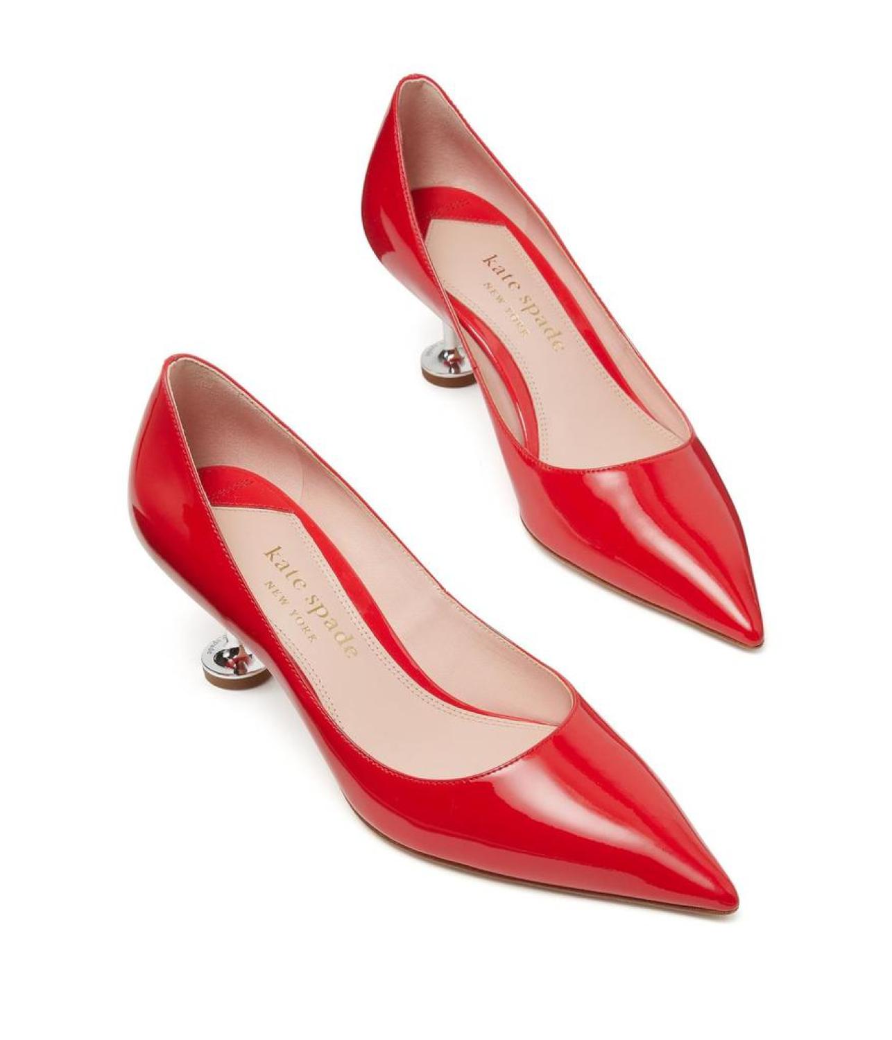 • Add a fabulous charm to your outfit by donning the classi stunner of Kate Spade New York® Garnish spool heels designed with point toe and easy-going slip-on style.