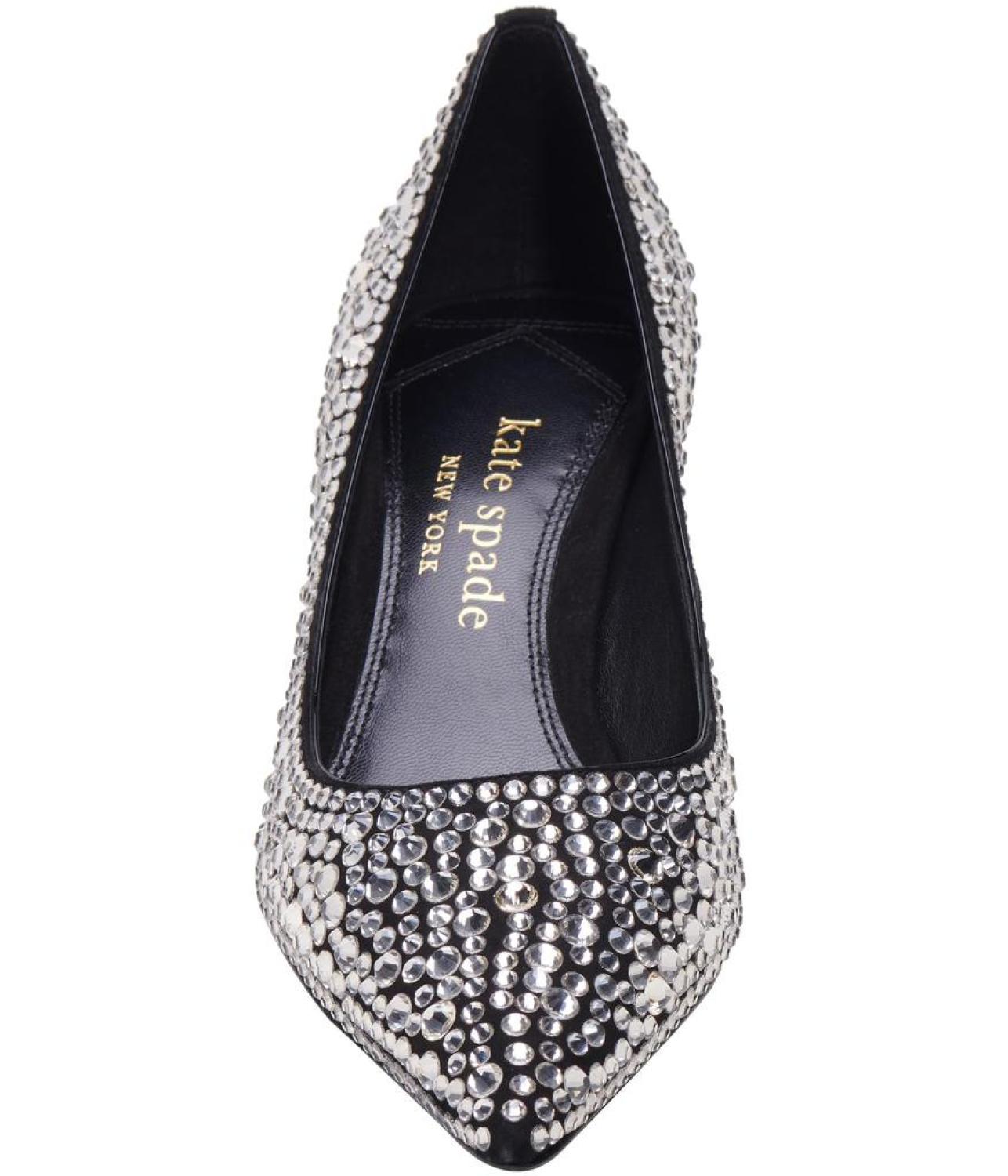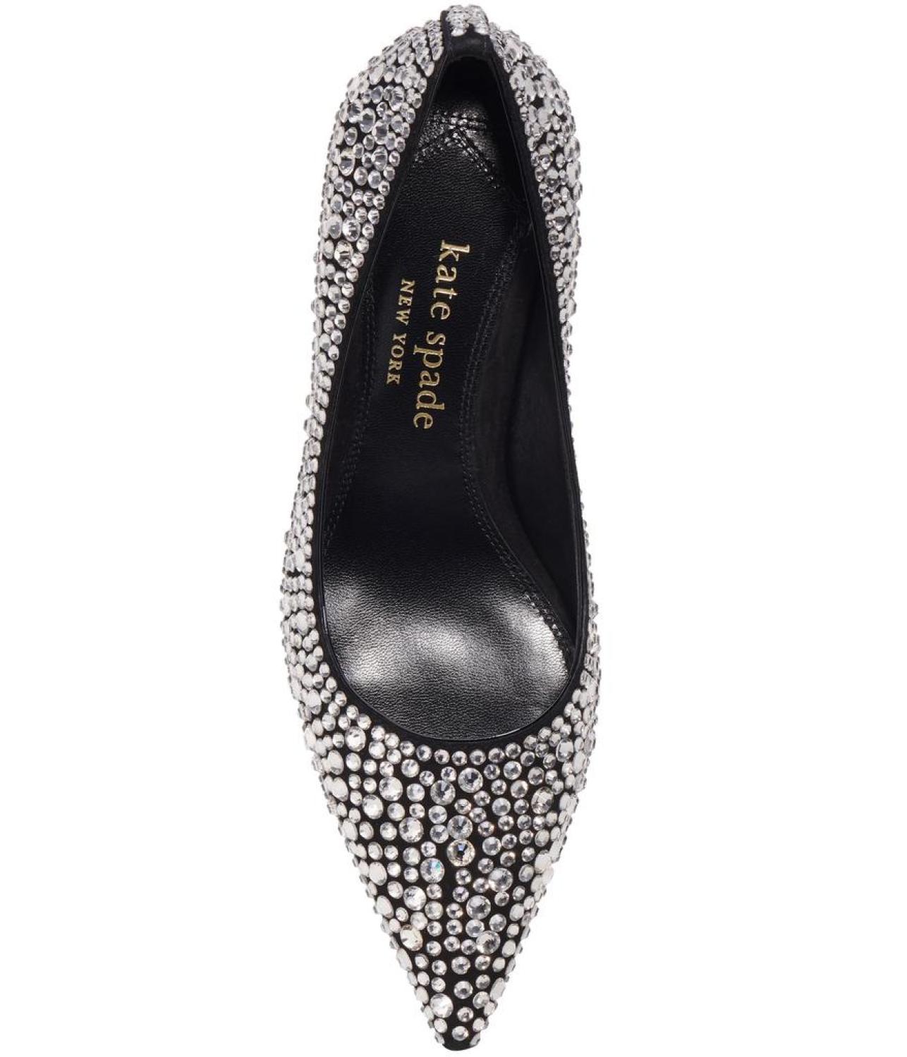 • Rule the festive season or party days in a gorgeous and glamorous style, wearing the Kate Spade New York® Garnish Crystal Heels. The shoes have a leather upper, lining, and insole and are beautifully designed with a pointed toe, a cone heel, and glistening crystal stone embellishments throughout.