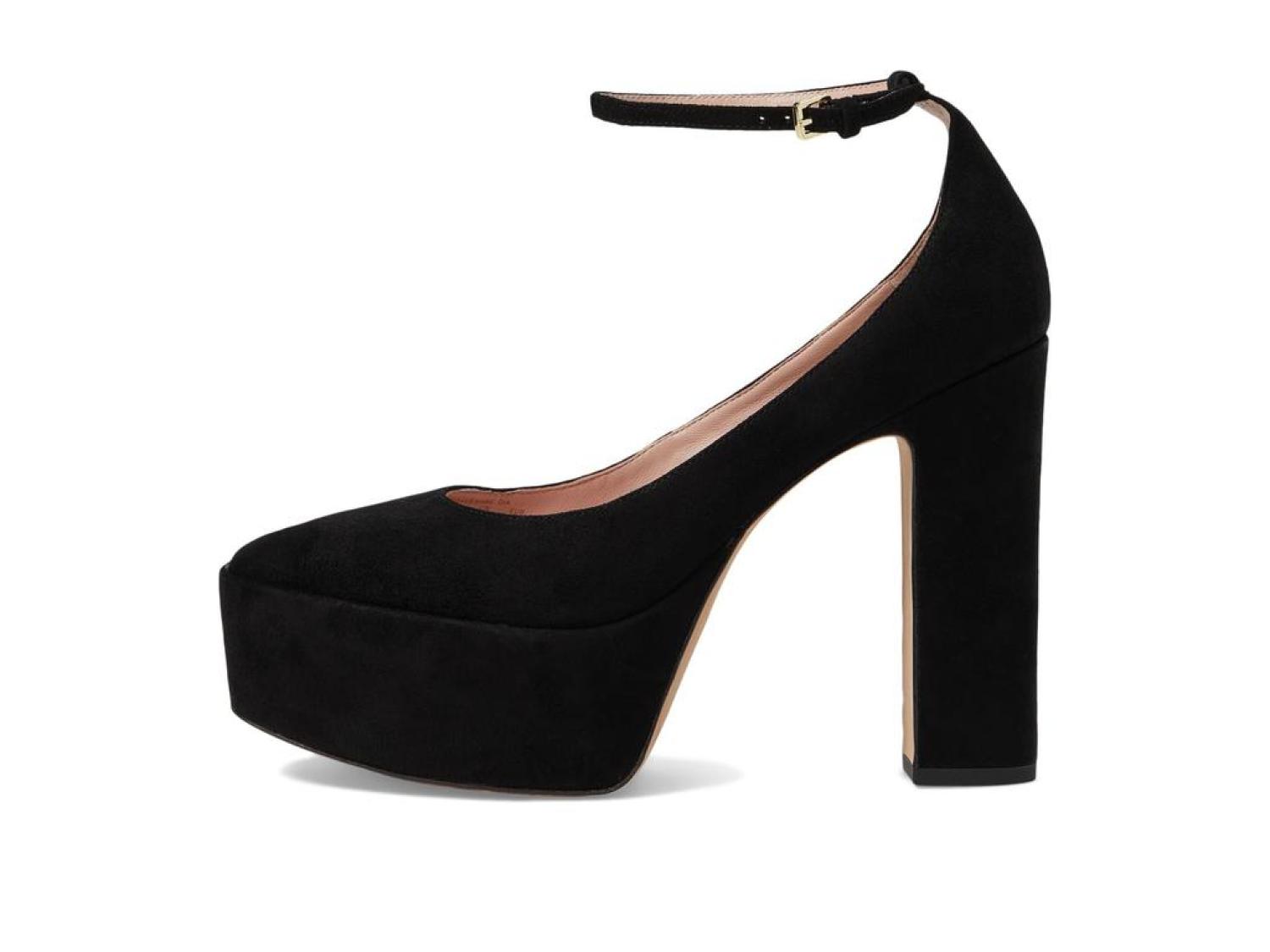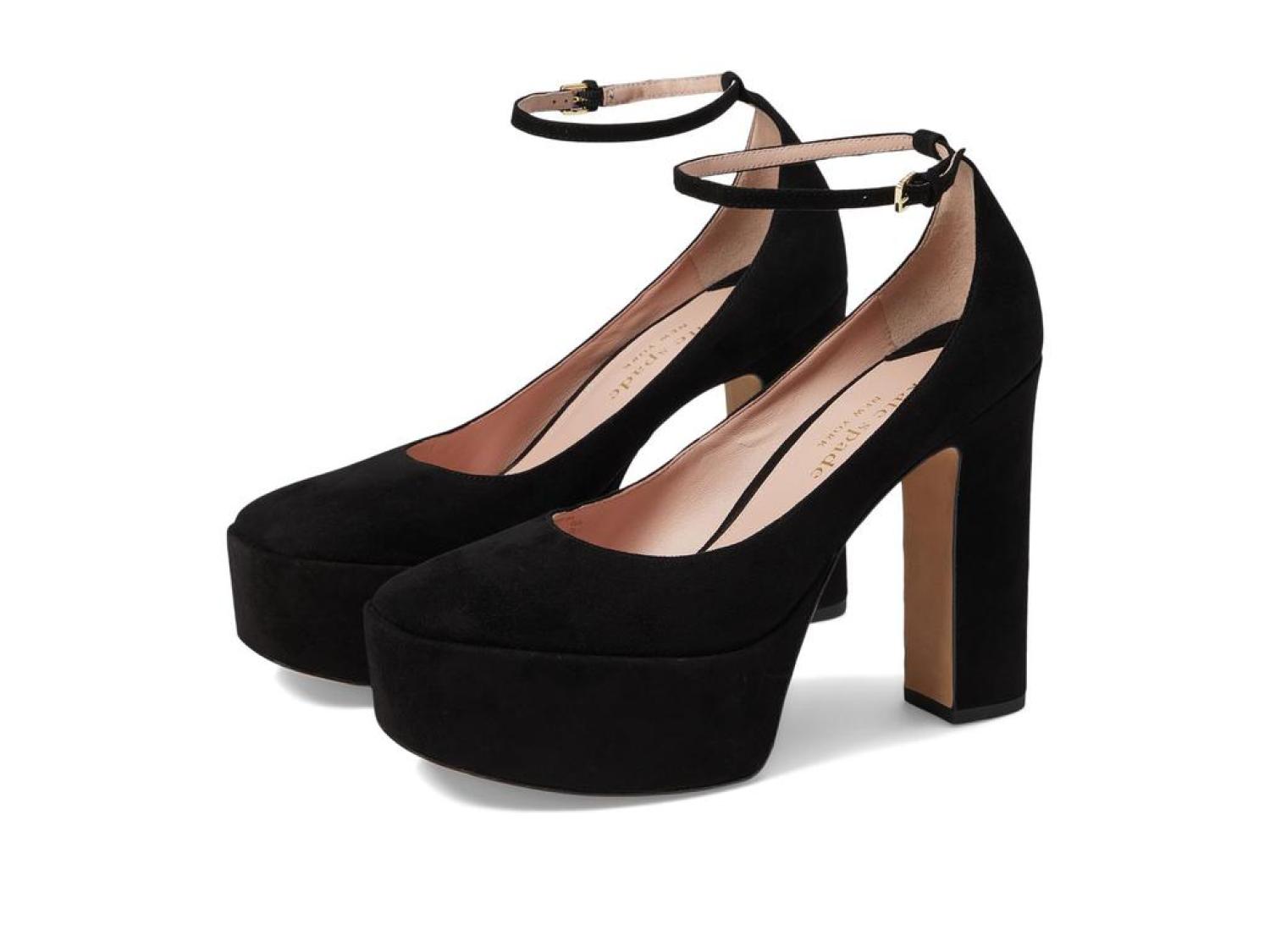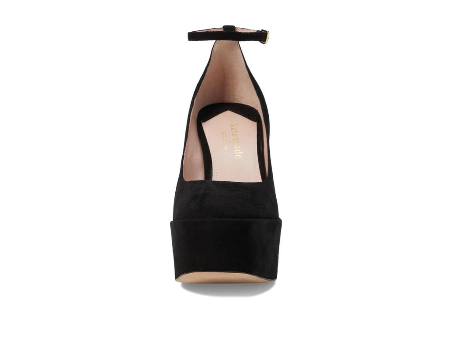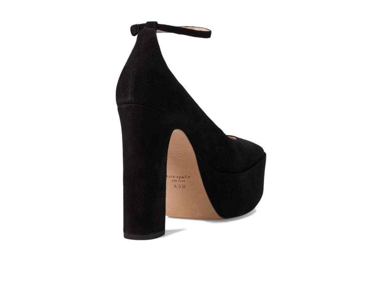 Step anywhere and everywhere with graceful charm wearing the classic pair of Kate Spade New York® Gia Pumps. The footwear features suede upper construction with cushioning leather insole and round toe silhouette. Leather lining. Ankle buckled strap closure. Block heels. Leather and rubber outsole. Imported. Product measurements were taken using size 8.5, width M. Please note that measurements may vary by size. Measurements: Heel Height: 4 1/2 in Weight: 14 oz Platform Height: 1 3/4 in-