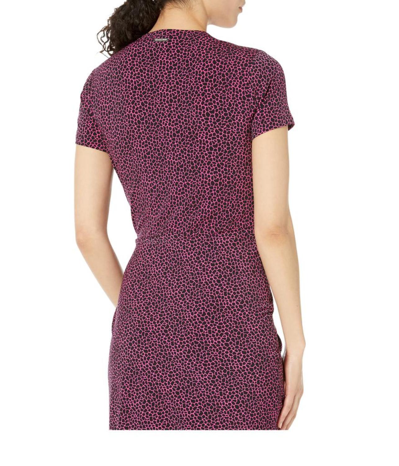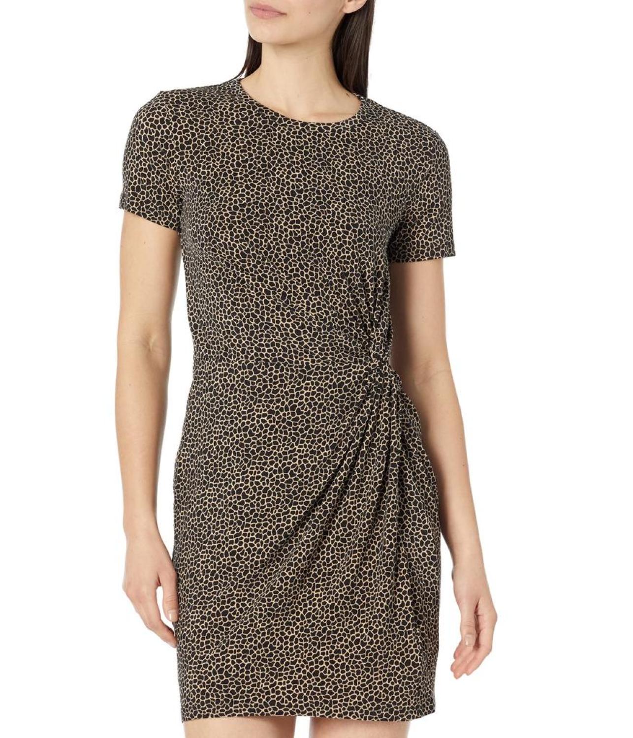 Look effortlessly chic and elegant in the MICHAEL Michael Kors® Giraffe Twist Short Sleeve Mini Dress. Crew neckline and short sleeves. Short-length silhouette. Allover printed design. Shirring on the sides. Intended to hit at the thighs. 95% polyester, 5% elastane. Machine wash, line dry. Imported. Product measurements were taken using size SM. Please note that measurements may vary by size. Measurements: Length: 36 in