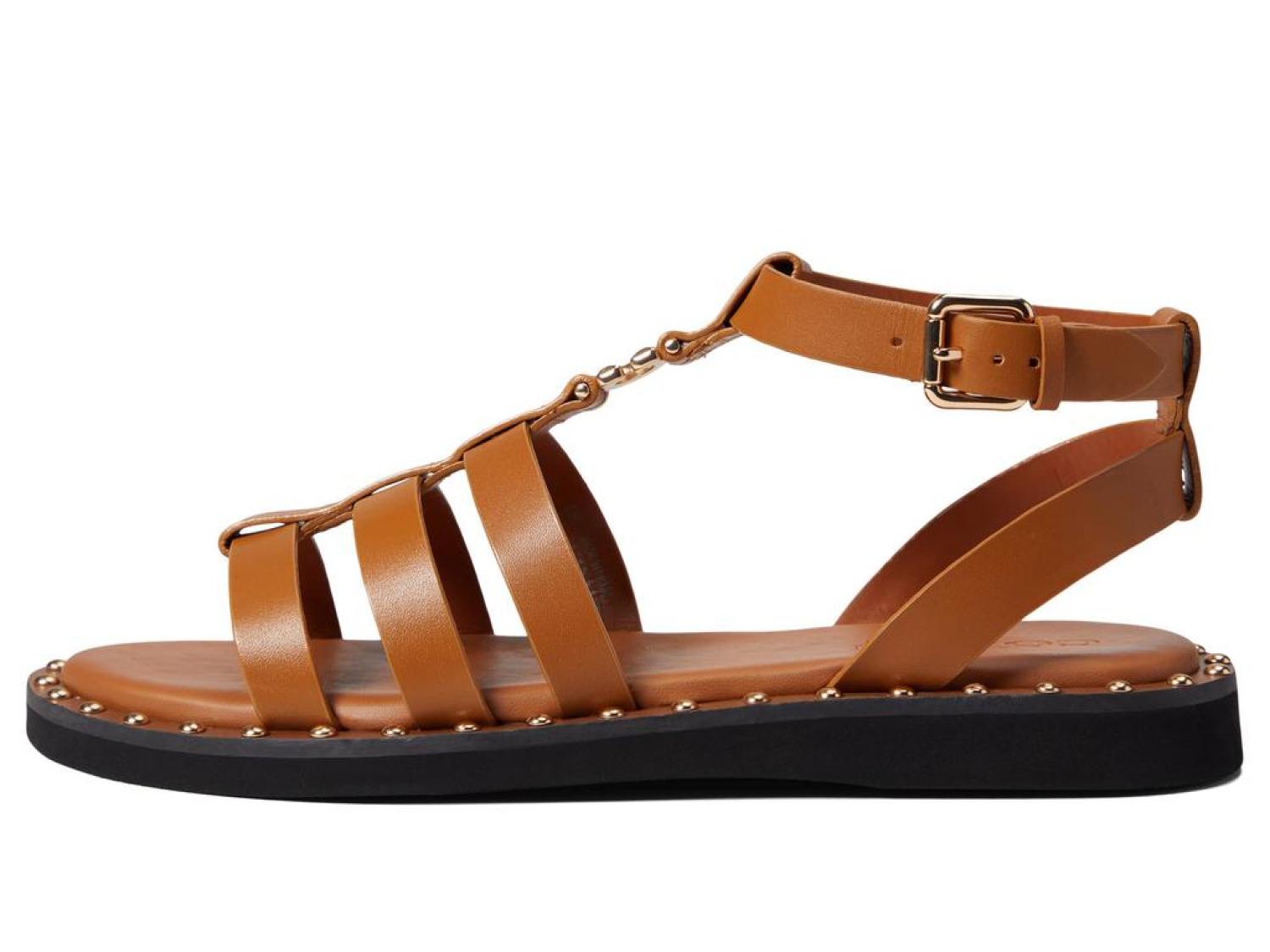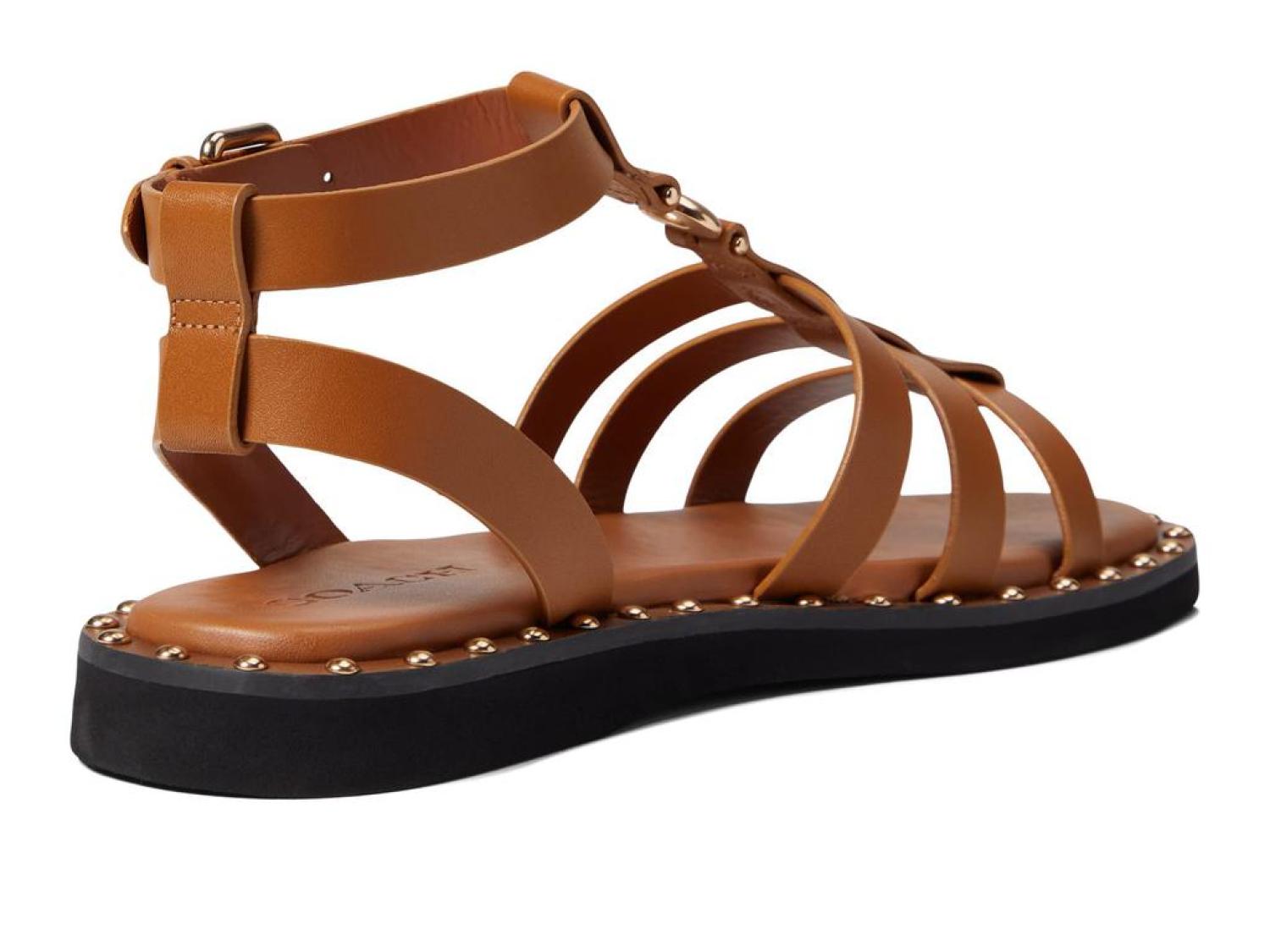 Please Note: COACH™ items cannot be shipped to military addresses (APO or FPO) and addresses in Hawaii, the Virgin Islands, Guam or any other locations outside of the continental US. Elevate the style quotient by wearing the COACH™ Giselle Leather Sandal. Leather upper, lining, and insole. Soft cushiony footbed for all-day comfort. Slip-on style. Open toe. Flat silhouette. Gladiator-inspired style. Adjustable ankle strap with buckle closure. Synthetic outsole with added traction and durability. Made in Brazil. Product measurements were taken using size 9, width B - Medium. Please note that measurements may vary by size. Measurements: Heel Height: 3/4 in Weight: 8 oz Platform Height: 1/2 in-