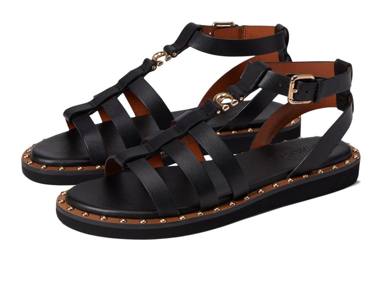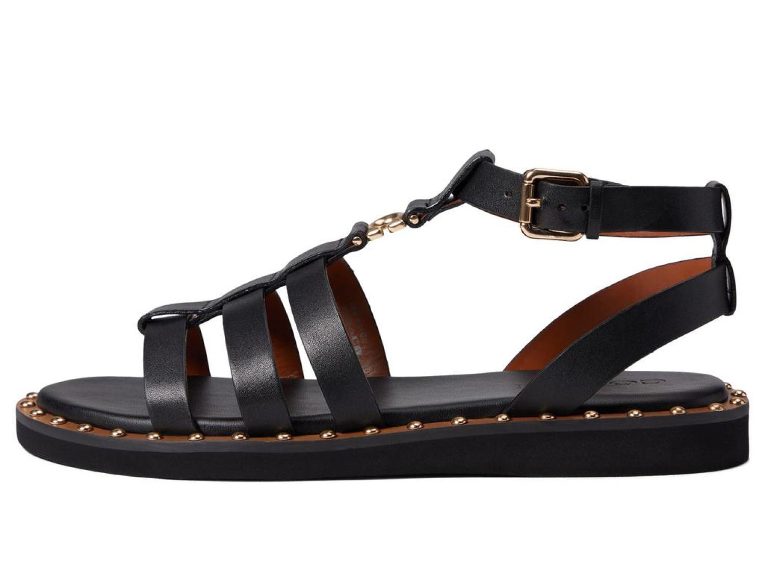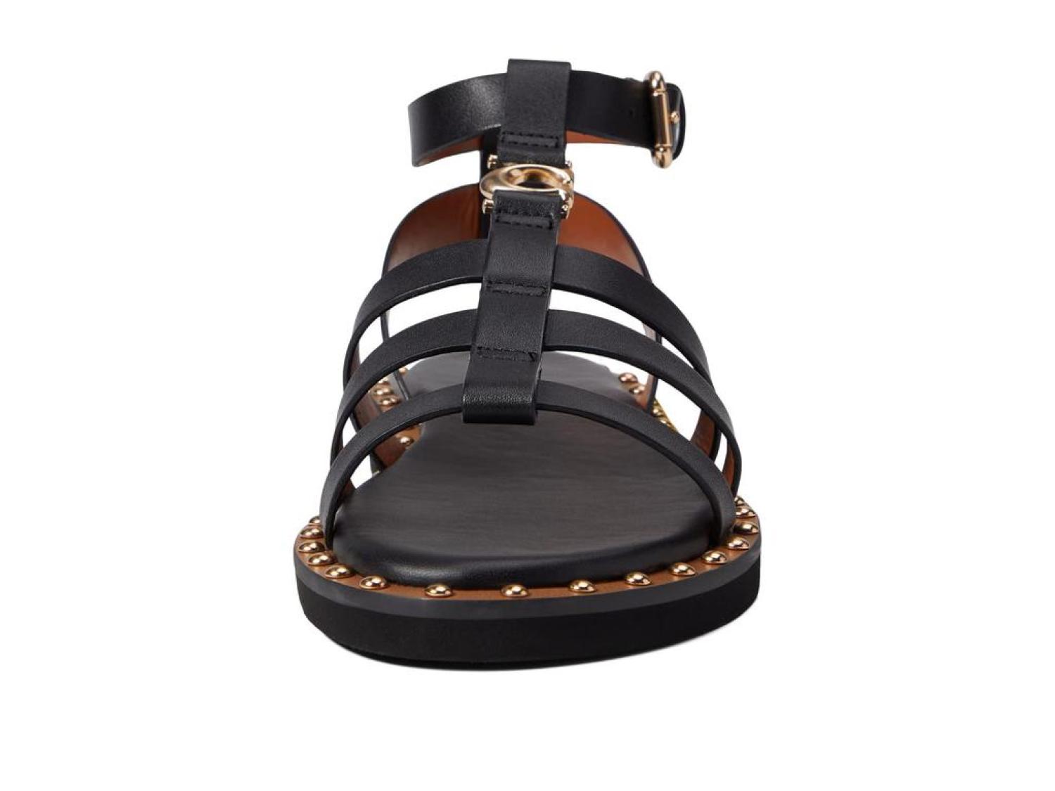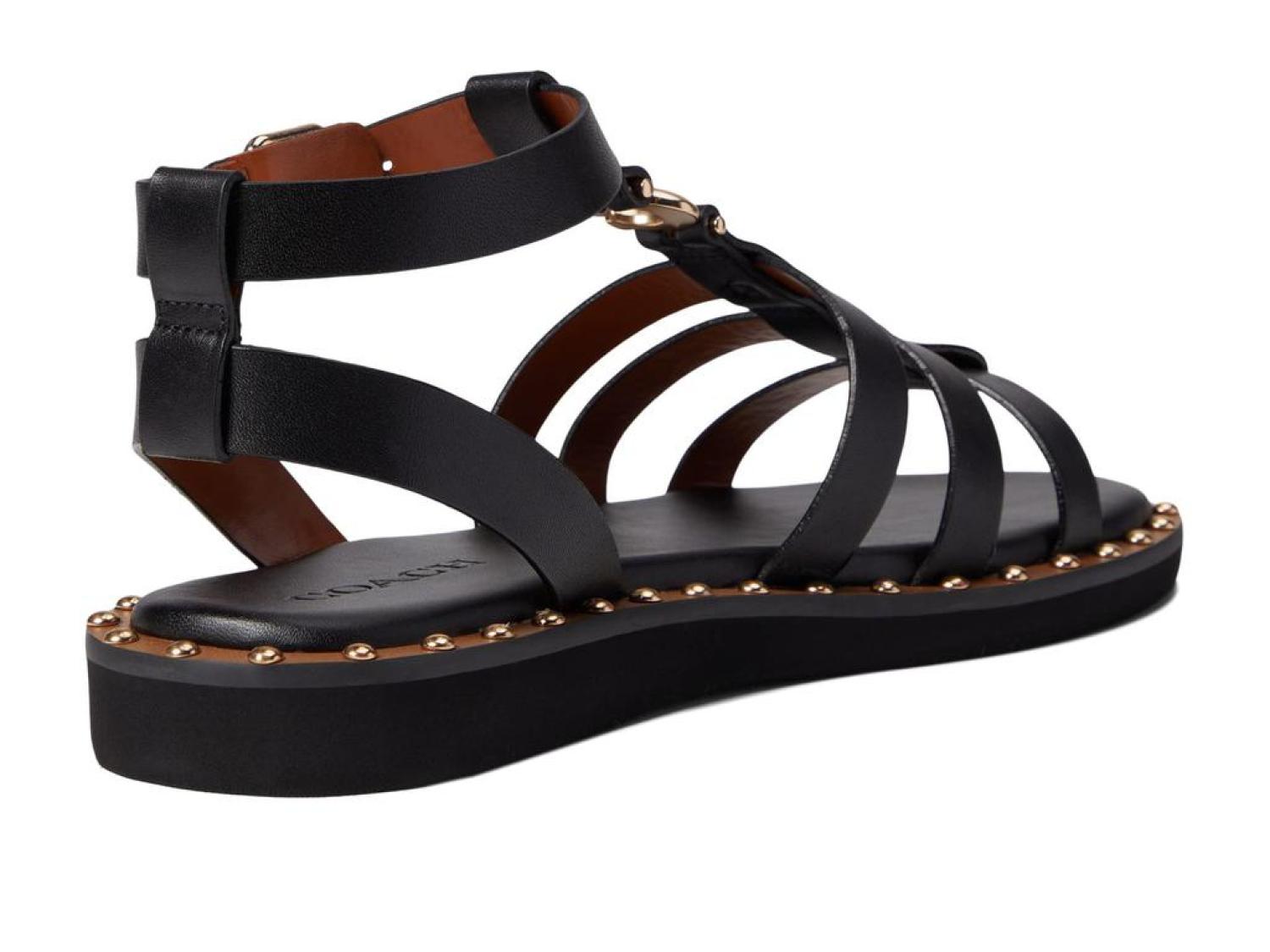 Please Note: COACH™ items cannot be shipped to military addresses (APO or FPO) and addresses in Hawaii, the Virgin Islands, Guam or any other locations outside of the continental US. Elevate the style quotient by wearing the COACH™ Giselle Leather Sandal. Leather upper, lining, and insole. Soft cushiony footbed for all-day comfort. Slip-on style. Open toe. Flat silhouette. Gladiator-inspired style. Adjustable ankle strap with buckle closure. Synthetic outsole with added traction and durability. Made in Brazil.