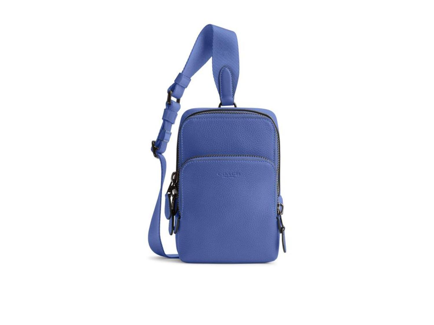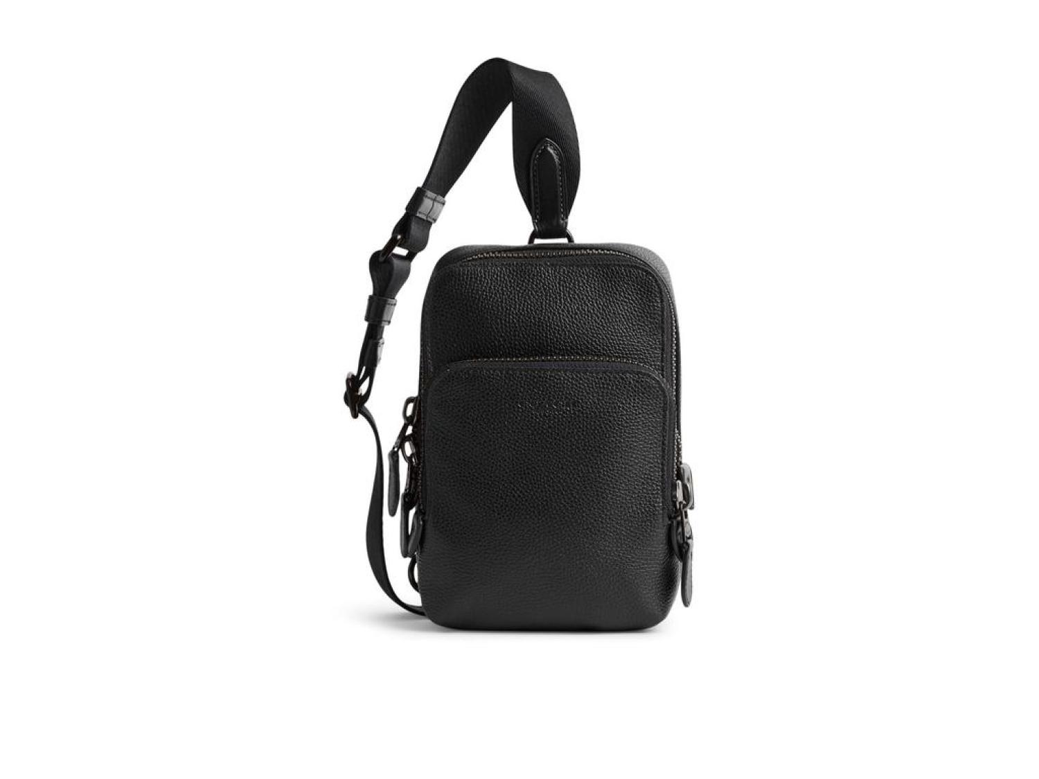 Get travel ready with the trend-setting and sleek design of the COACH™ Gotham Sling Pack 13 crafted out of polished pebble leather and refined calf leather with a zippered pocket to the main compartment and multifunction pockets on the inside.