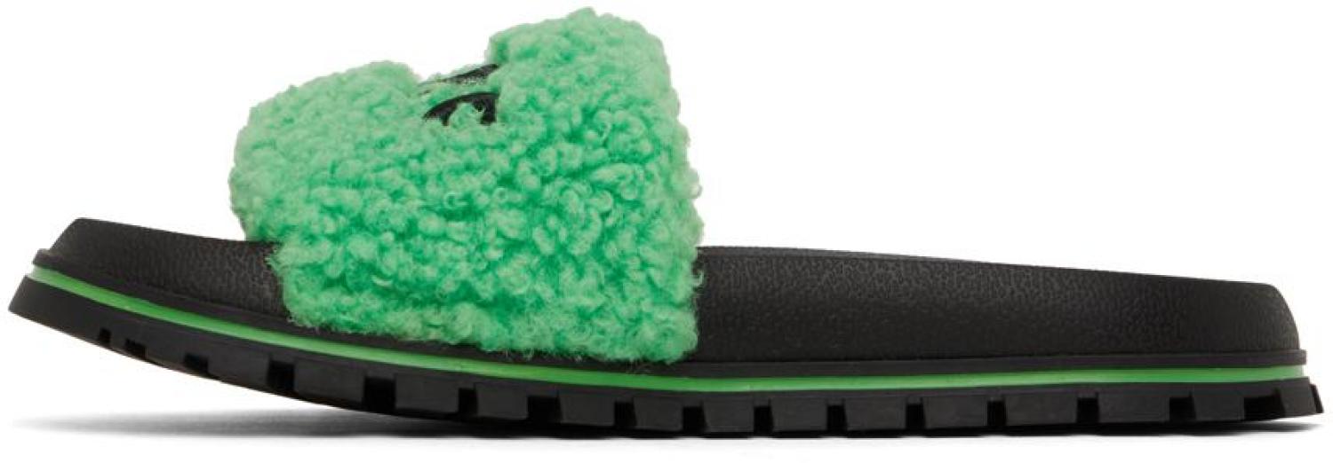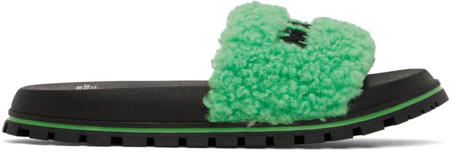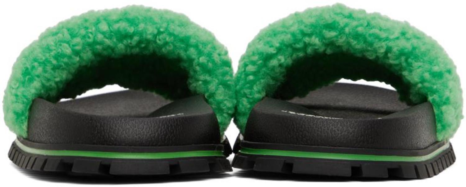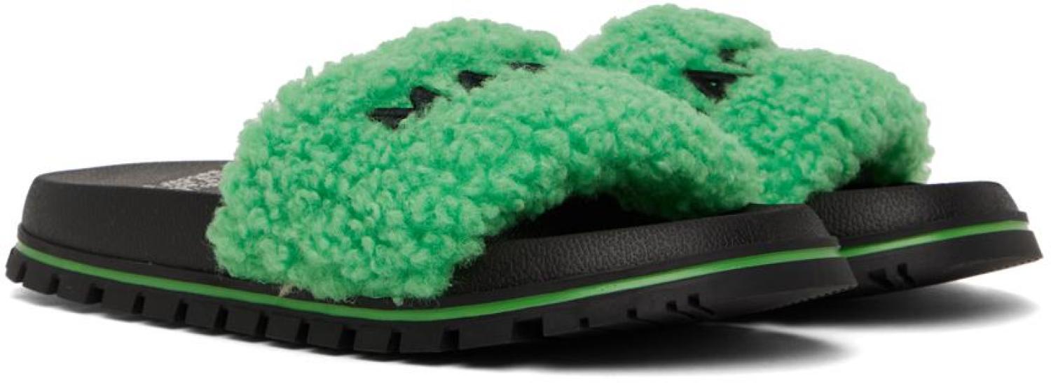 Marc Jacobs Green Bouclé Sandals Slip-on boulcé polyester sandals in green. · Open round toe · Strap with embroidered logo at vamp · Logo printed at molded rubber footbed · Treaded rubber outsole Supplier color: Fluffy green Upper: polyester. Sole: rubber. Made in Viet Nam. 222190F124006