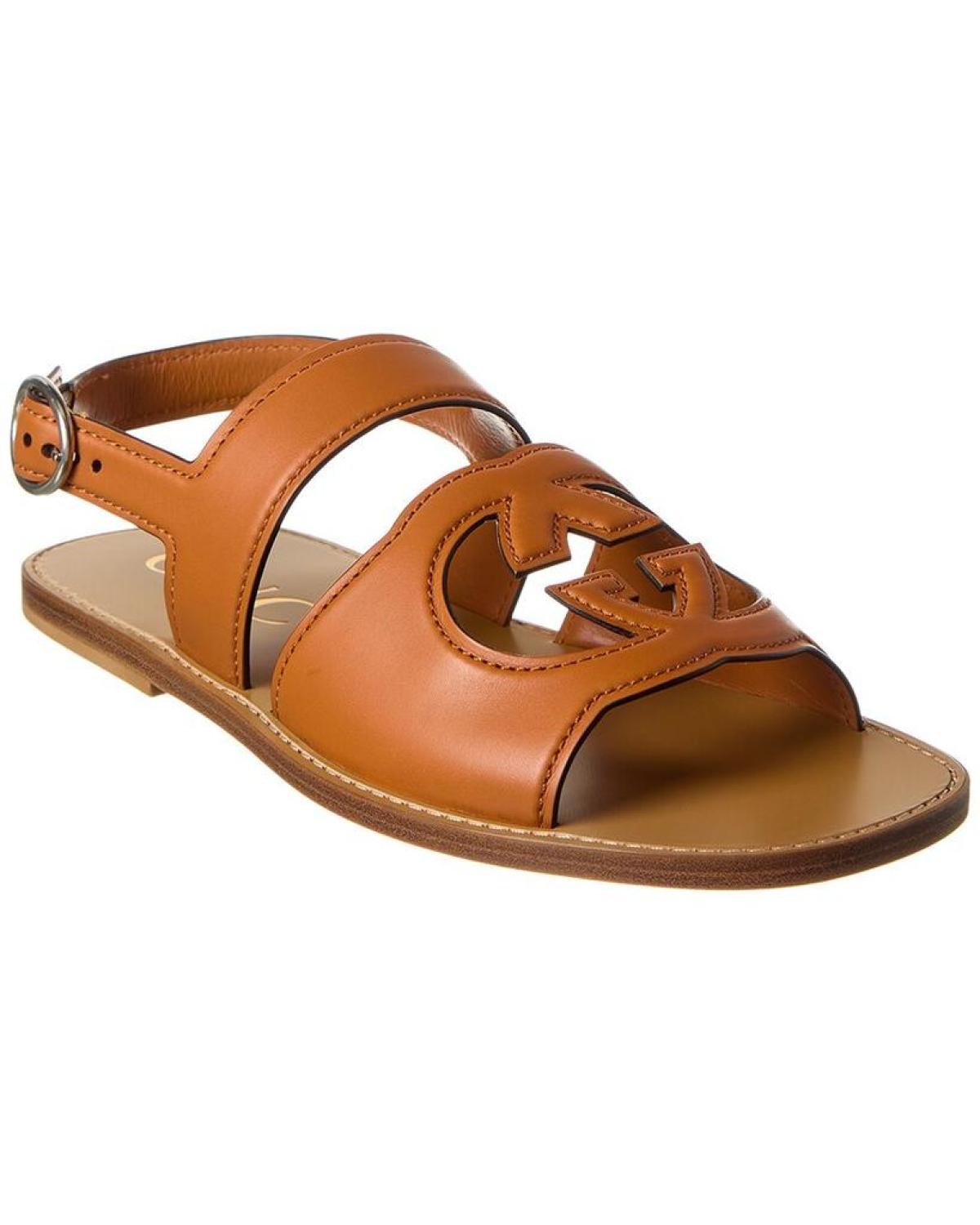 Introducing the Gucci Interlocking G Leather Sandal, a statement piece for men who appreciate luxurious footwear. Our products are 100% genuine, sourced only from trusted independent suppliers who ensure the authenticity of every item sold on our site. Made in Italy, these sandals feature Gucci's iconic interlocking G logo in cutout form, accented by dark silver hardware on a brown leather base. The adjustable ankle strap with buckle closure provides a secure and comfortable fit. The smooth leather insole and sole add to the overall comfort and durability. As a UK sizing product, please refer to the size chart for US conversions. With its eclectic and coveted style, Gucci is the epitome of Italian luxury redefined. Embrace the brand's aesthetic with the Gucci Interlocking G Leather Sandal.
